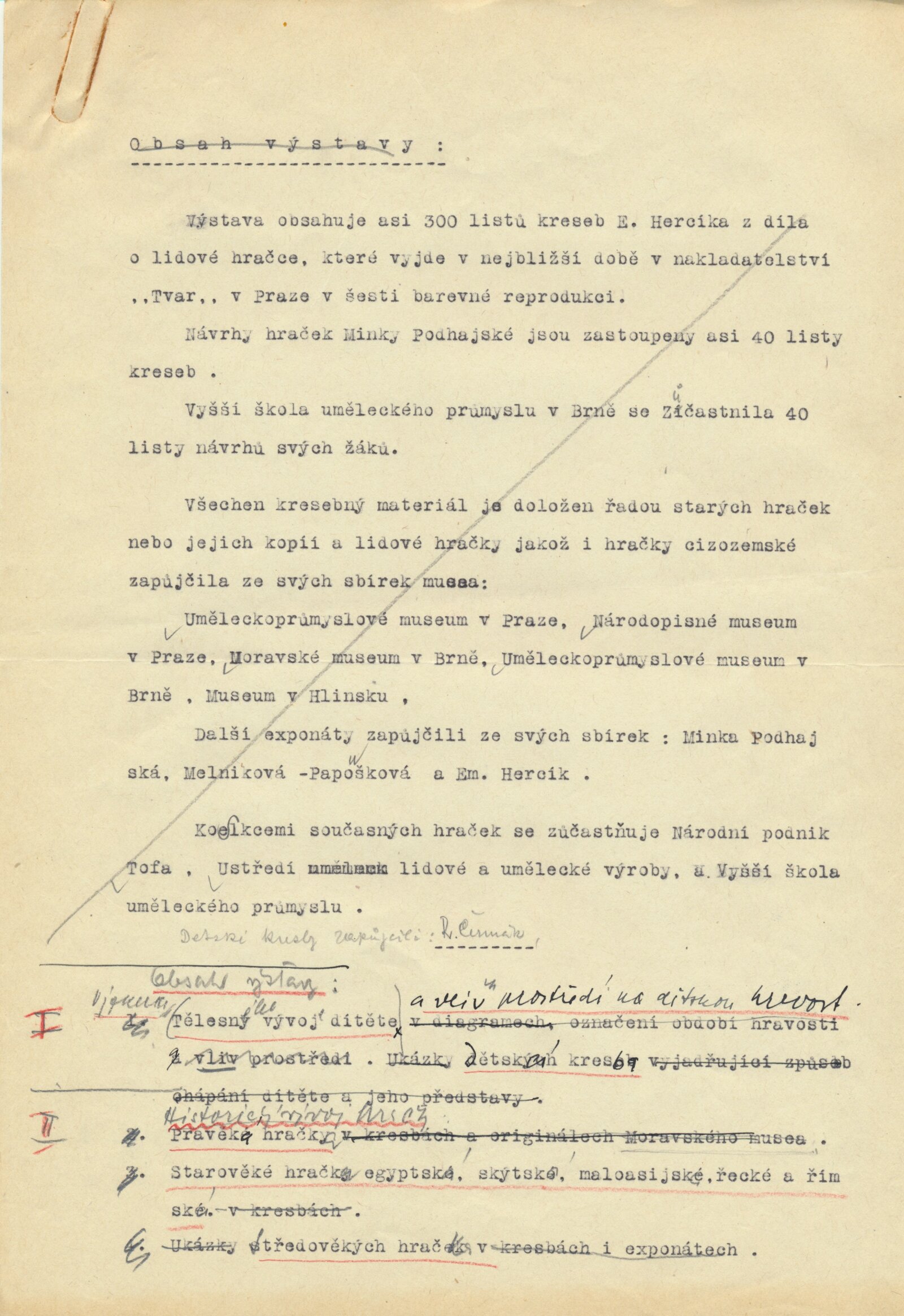pozvánka, leták, korespondence o zápůjčkách, provozní korespondence, rozpočet, texty Bohdana Laciny „O hračce“ a R. Čermáka „Dětská kresba a lidová hračka“ pro LN, recenze v tisku