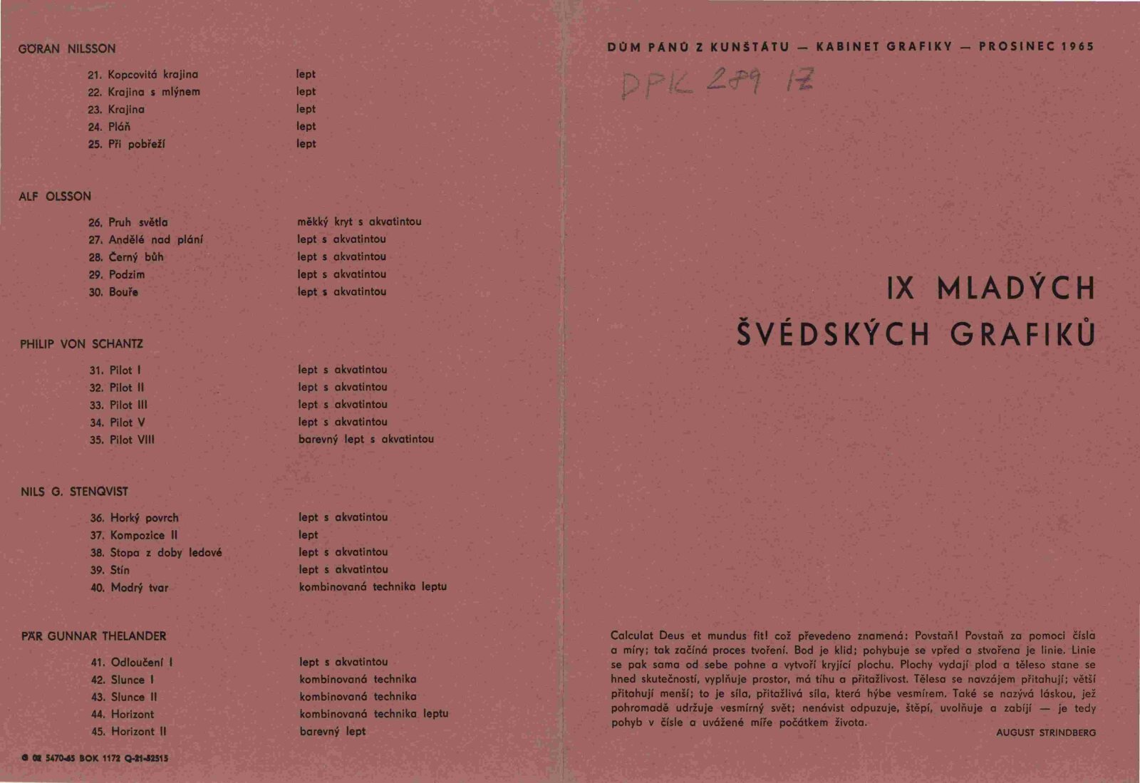 pozvánka, katalog, medailony grafiků, plakát k výstavě, strojopis textu do katalogu, seznam děl, fotografie z vernisáže, provozní korespondence, recenze v tisku, pozvánka (Hollar Praha)