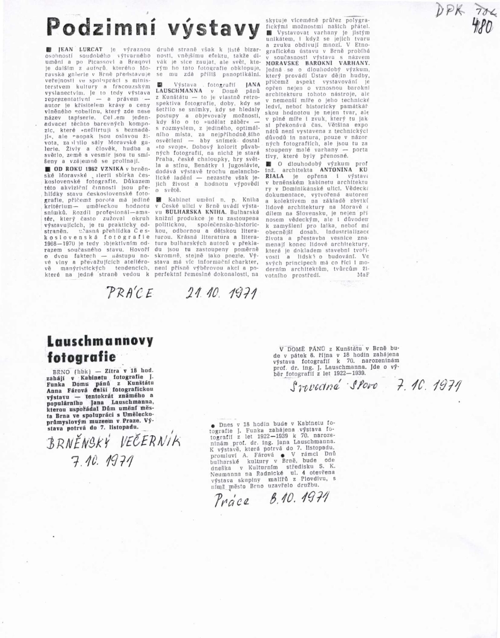 Na pozvánce je uvedena doba konání výstavy 7. 9. – 3. 10. 1971.