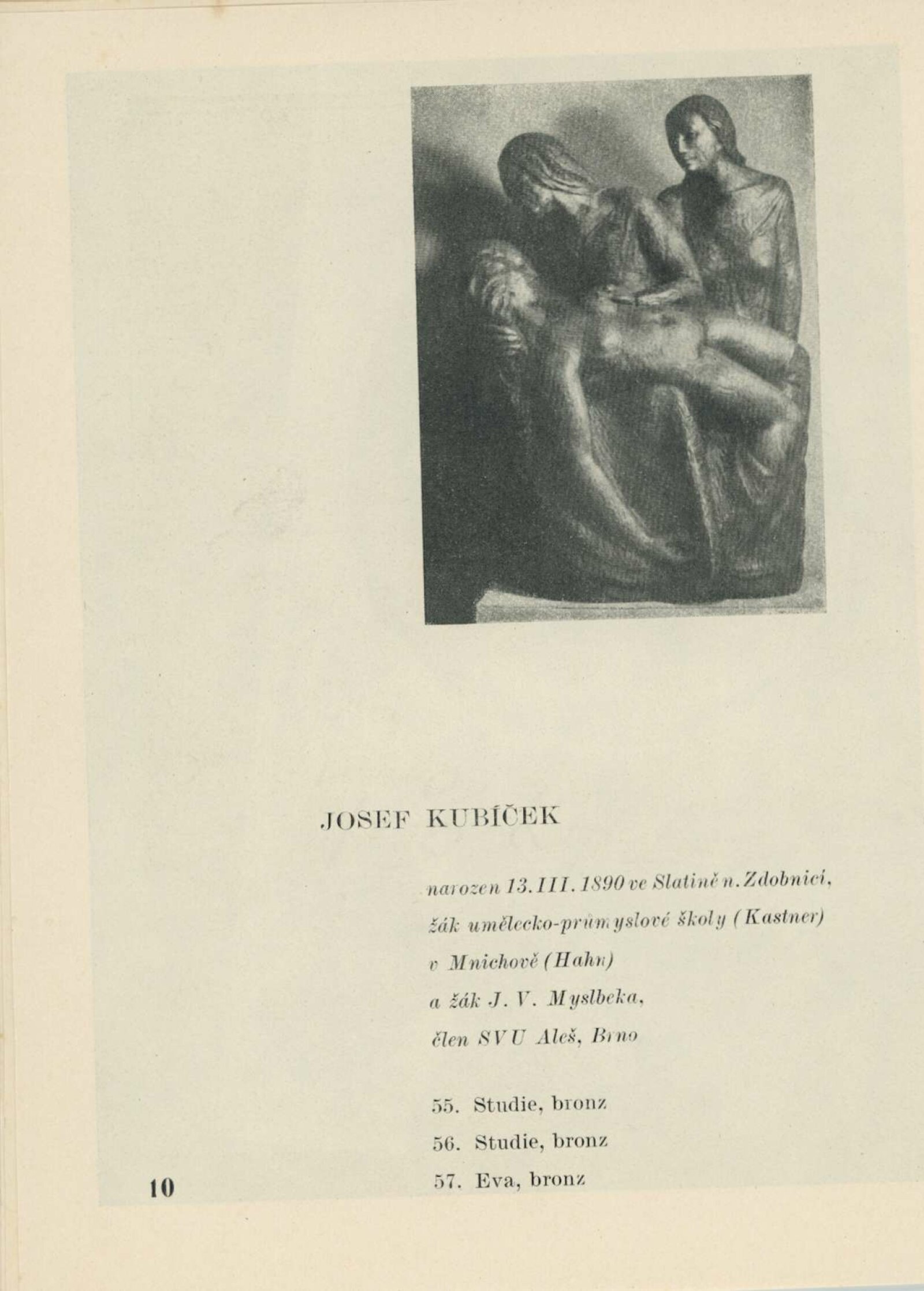 Katalog výstav v Domě umění, pořádaných mezi 15. 2. – 19. 3. 1947 / Obsahuje výstavy: Obrazy Vladimíra Sychry, Drobná plastika z majetku brněnských sběratelů. Od Gutfreunda po Wágnera. – Brno: DUmB, 1947. – 15 s., obr., DU 34–35. – Kubíček 7978; MG; MMB