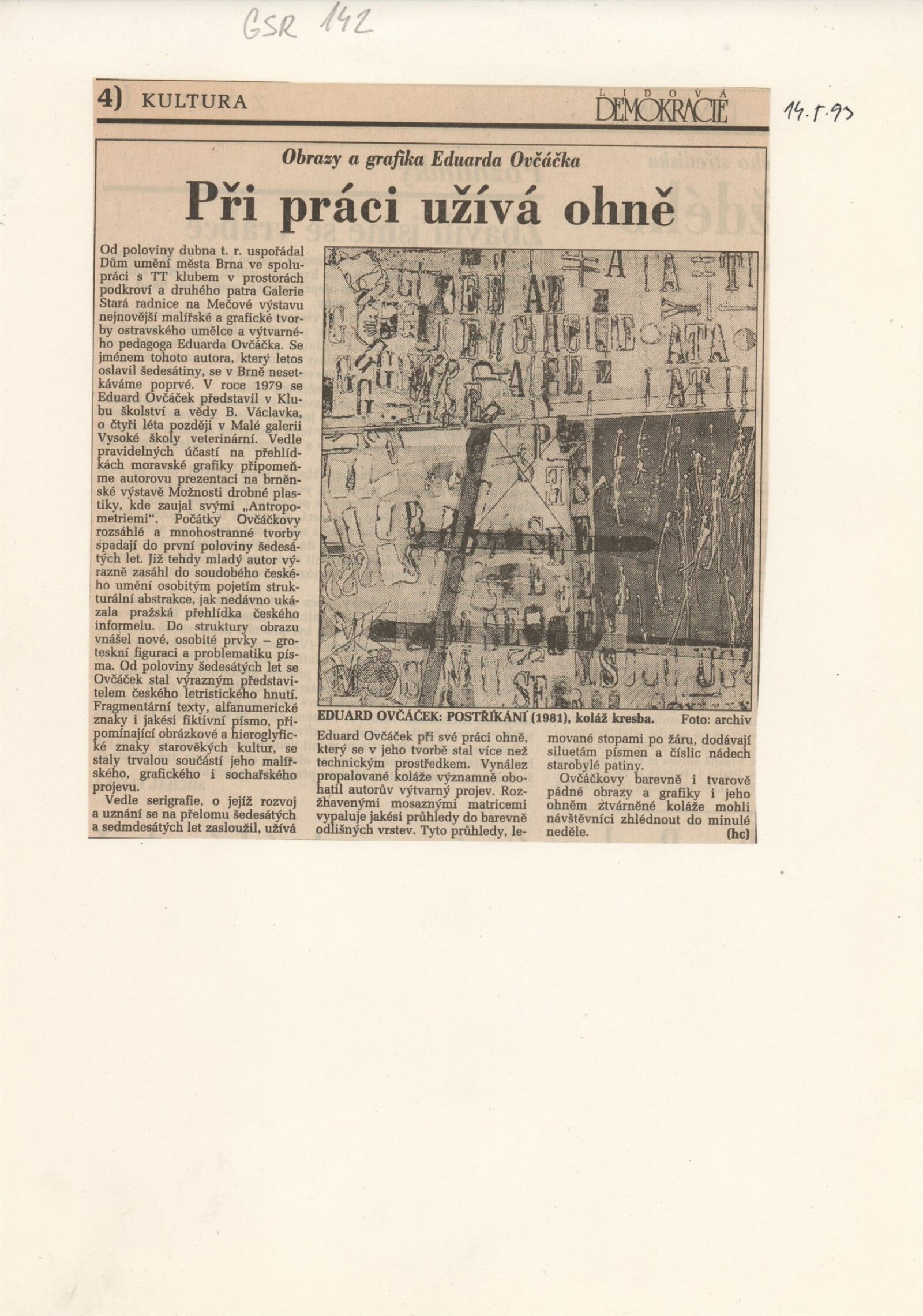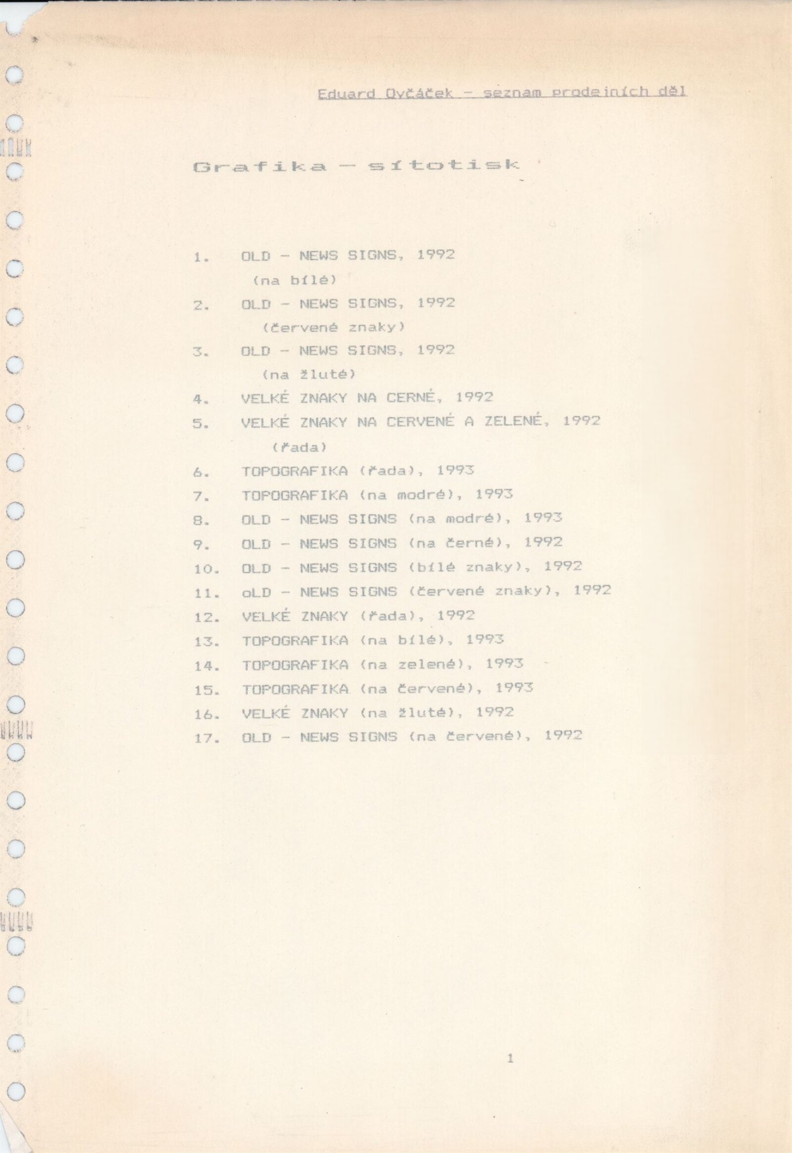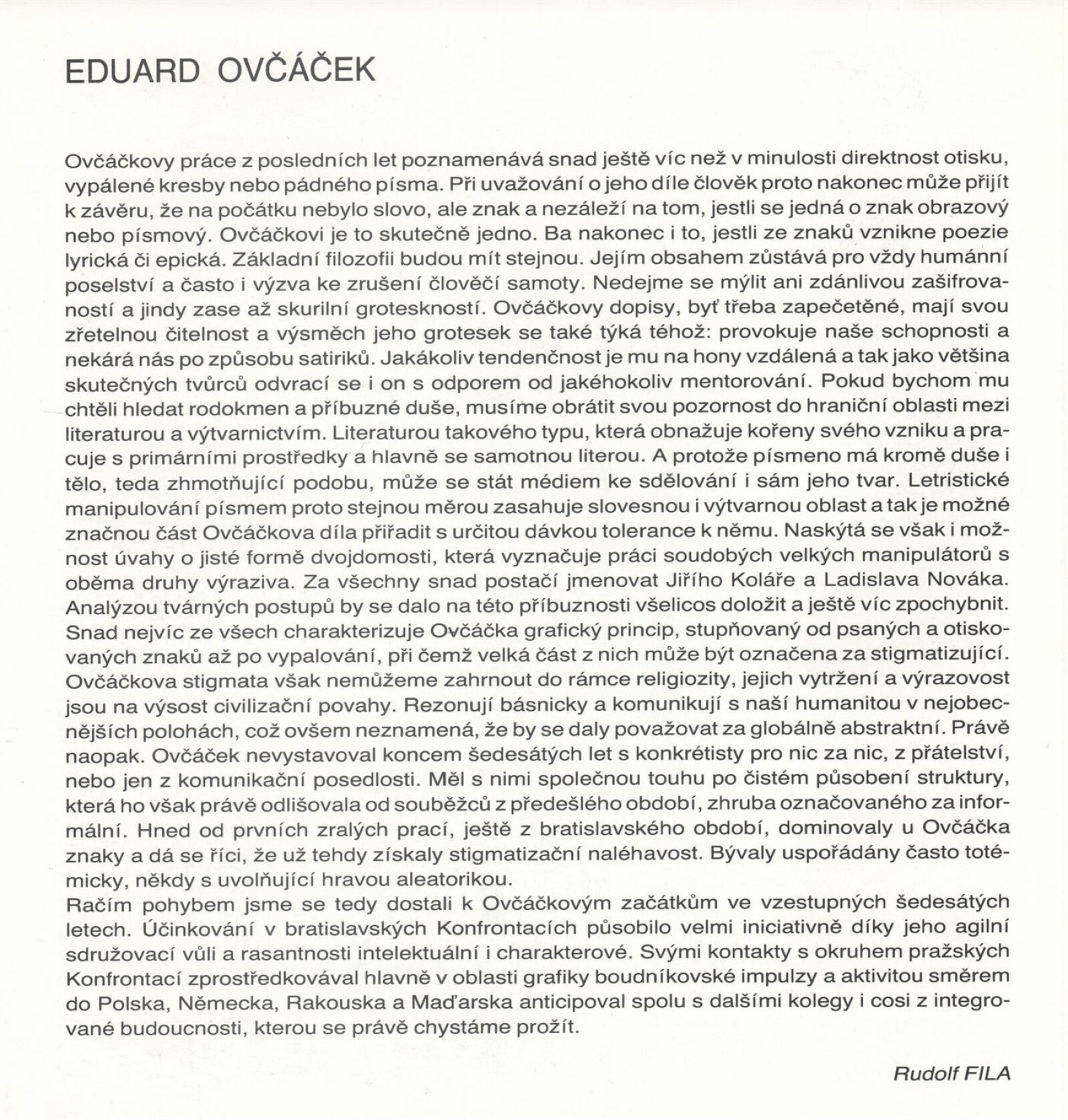 Eduard Ovčáček: Galerie Stará radnice 6. 4. – 9. 5. 1993 / Text Rudolf Fila. - Brno: DUmB, - 1 skládačka (6 s., obr.) Životní data, výstavy, díla ve sbírkách GSR 142; MG