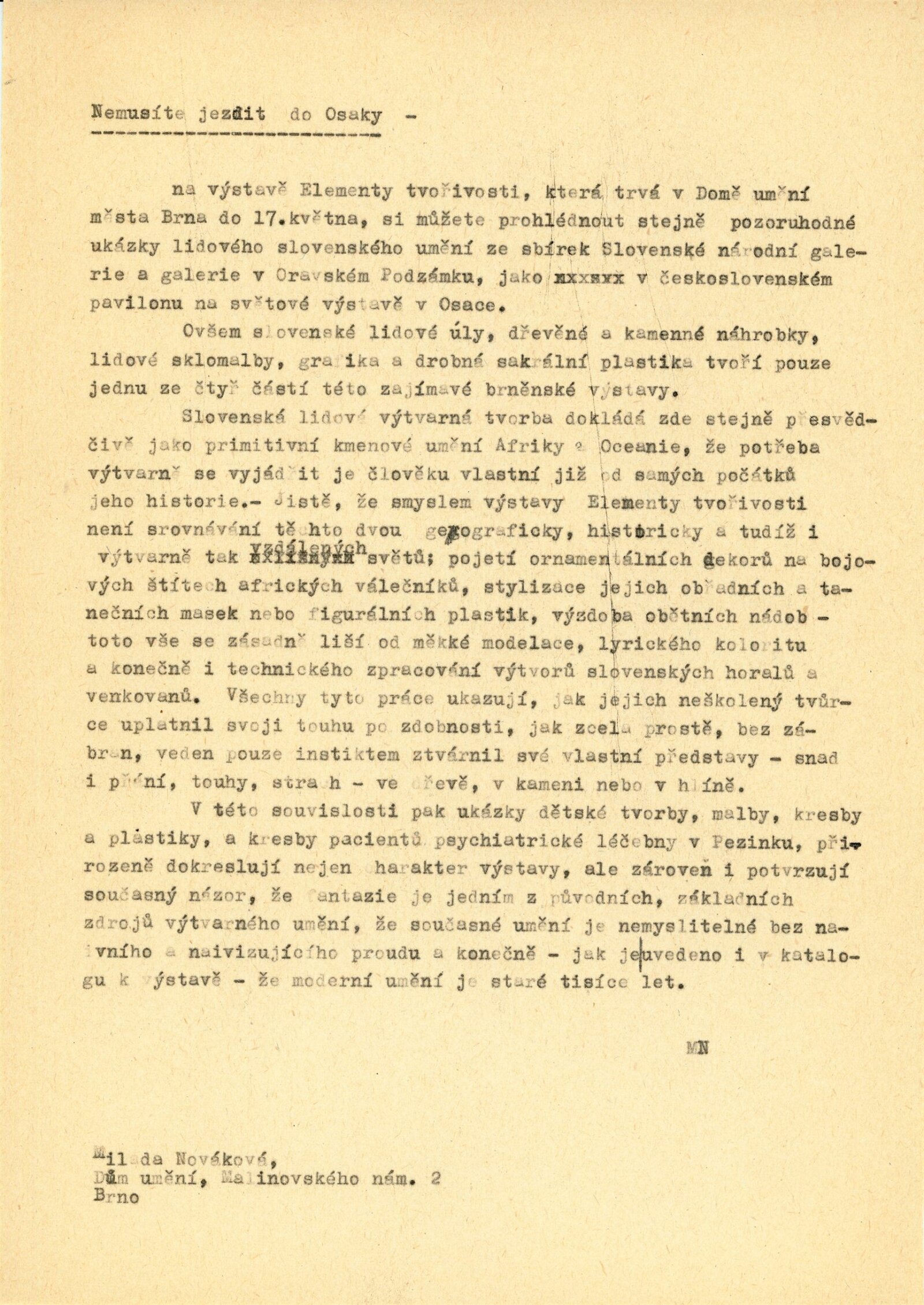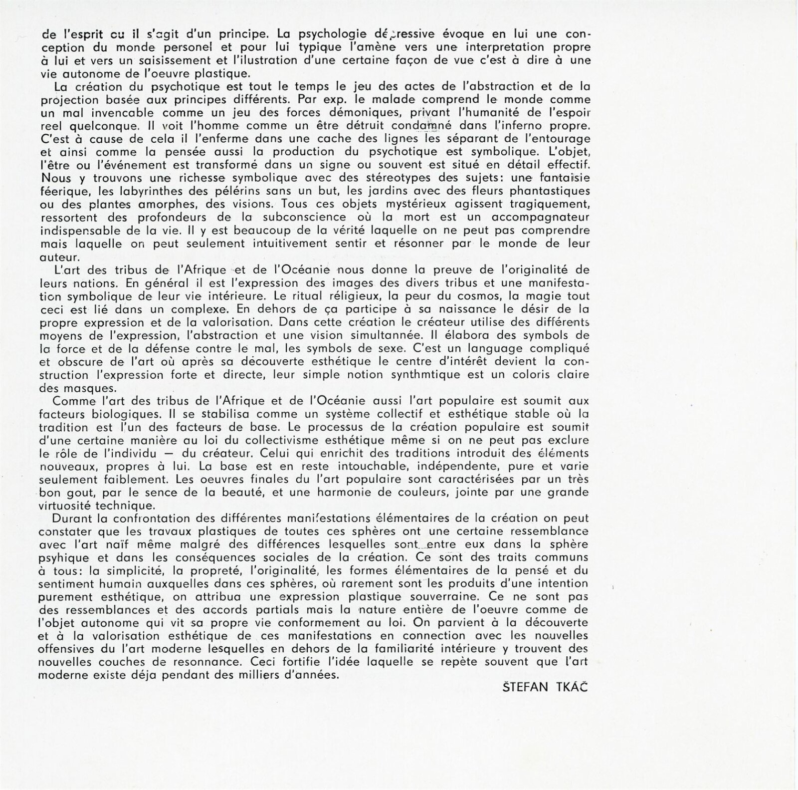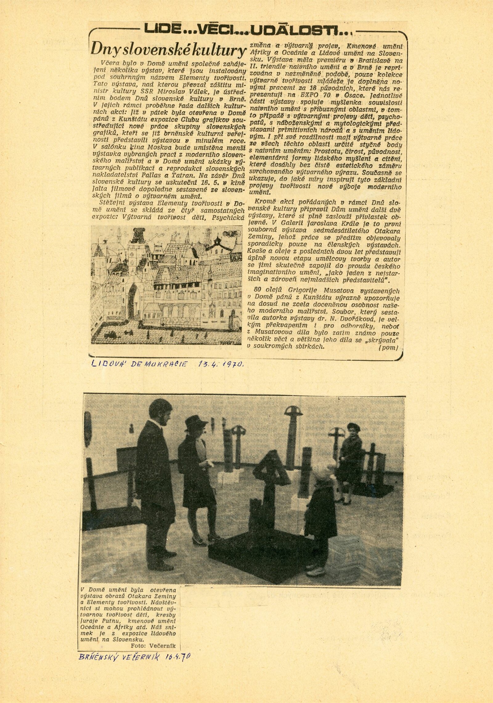 Elementy tvořivosti: Dům umění, 12. 4. – 17. 5. 1970 / Převzatý katalog. Elementy tvorivosti. Výtvarná tvorivosť detí. Kresby Juraja Putnu. Psychická zmena a výtvarný prejav. Kmeňové umenie Oceánie a Afriky. Ľudové výtvarné umenie na Slovesnku: Slovenská národní galerie, září–prosinec 1969 / Texty: Štefan Tkáč, Erich Herold. – Bratislava: Slovenská národná galéria, 1969. – 52 s., obr., DU 545. – MZK