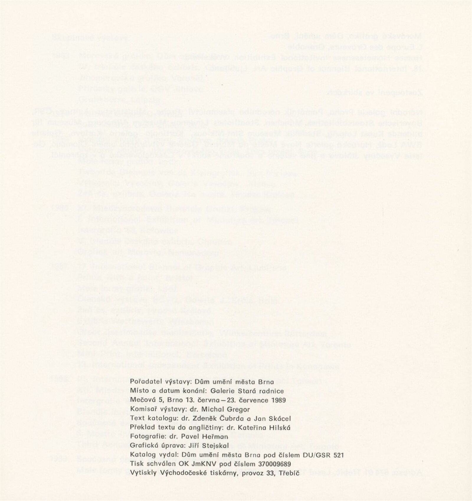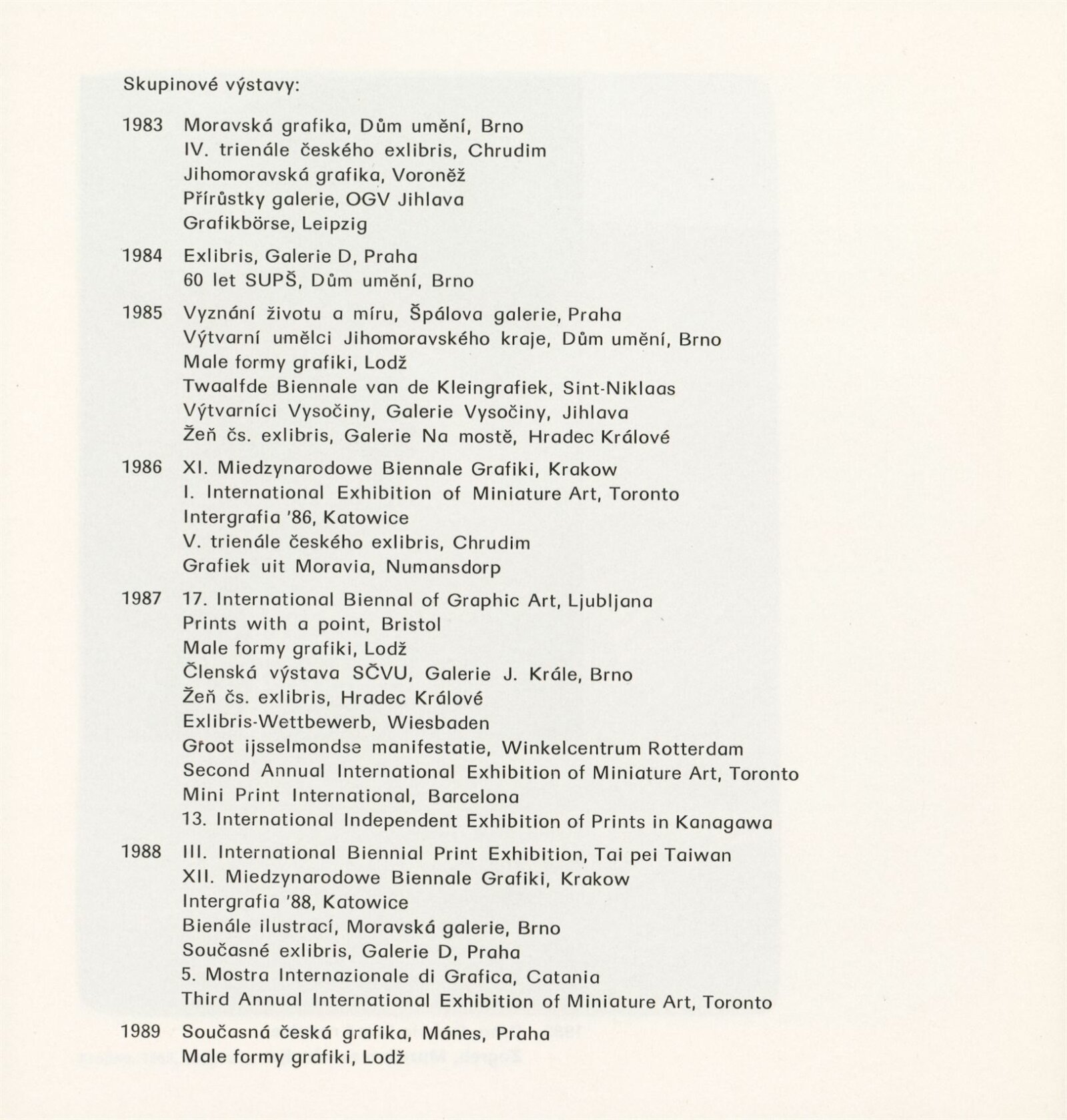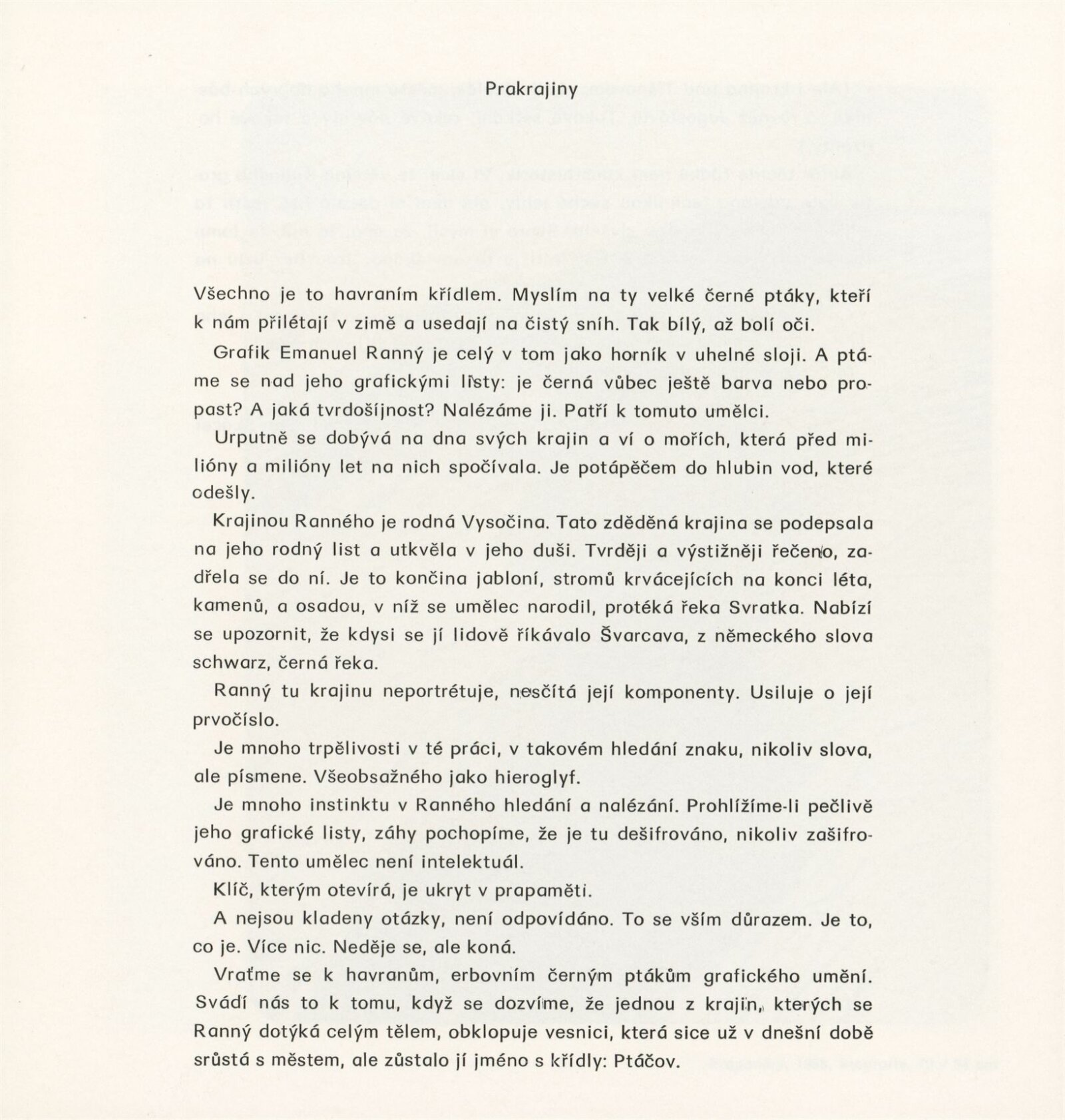 Emanuel Ranný [mladší. Grafika]: Galerie Stará radnice, přízemí, 13. 6. – 23. 7. 1989 / Texty: Zdeněk Čubrda, Jan Skácel. – Brno: DUmB, 1989. – [28] s., obr., seznam vystavených prací [2] s., portrét, životní data, výstavy, zastoupení ve sbírkách, GSR 49. – MZK; MG; MMB