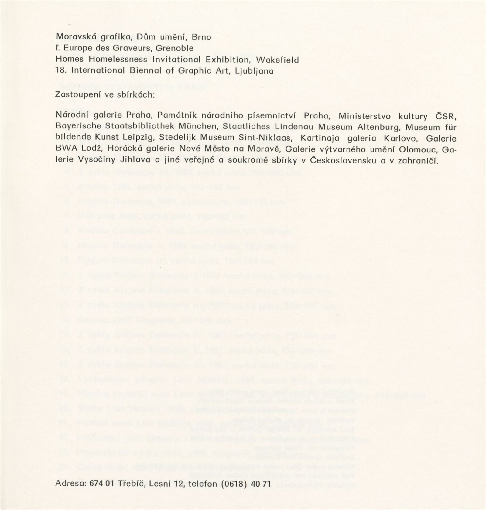 pozvánka, katalog, korespondence, žádost autora o výstavu, žádost a potvrzení o konání výstavy, recenze v tisku