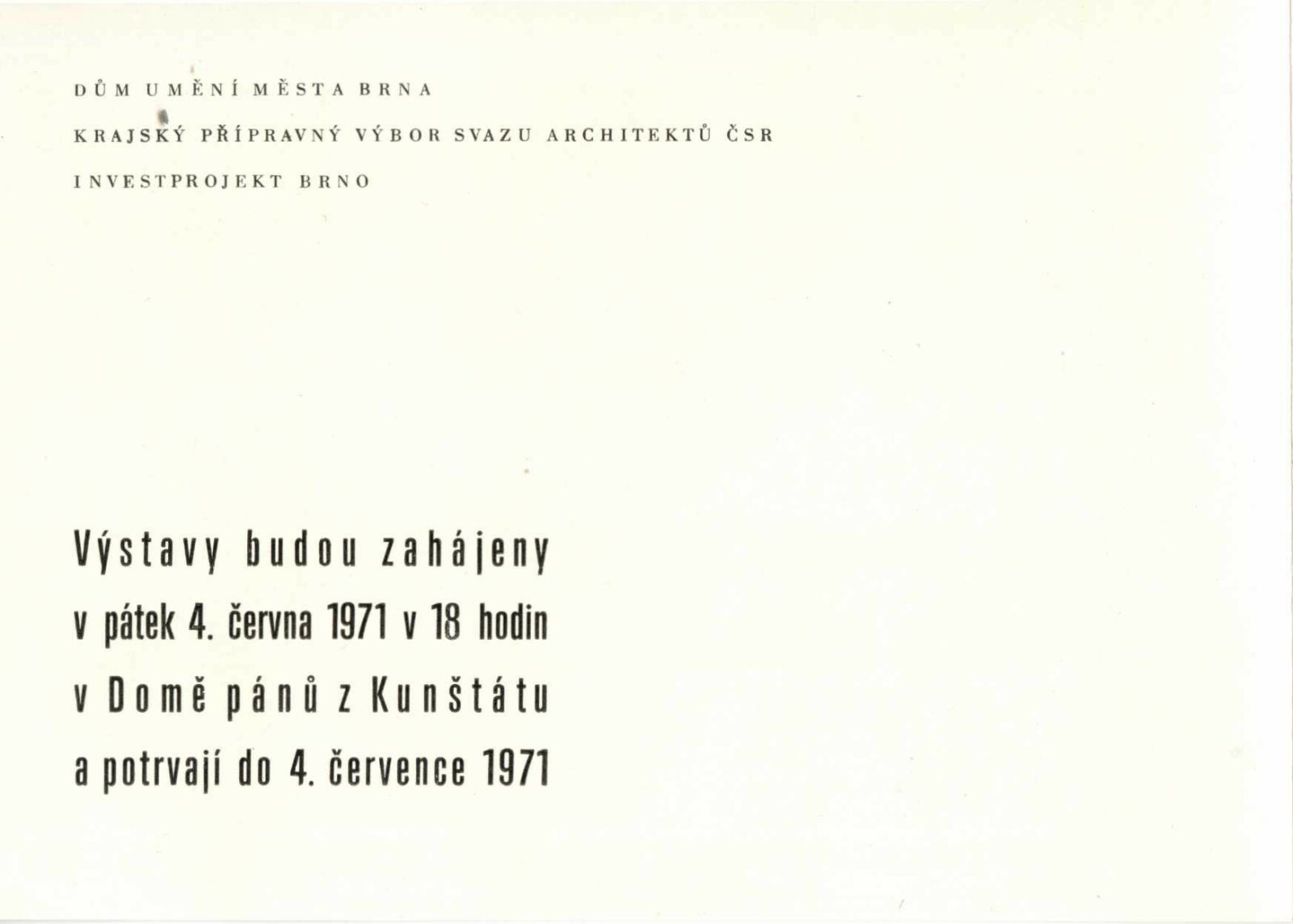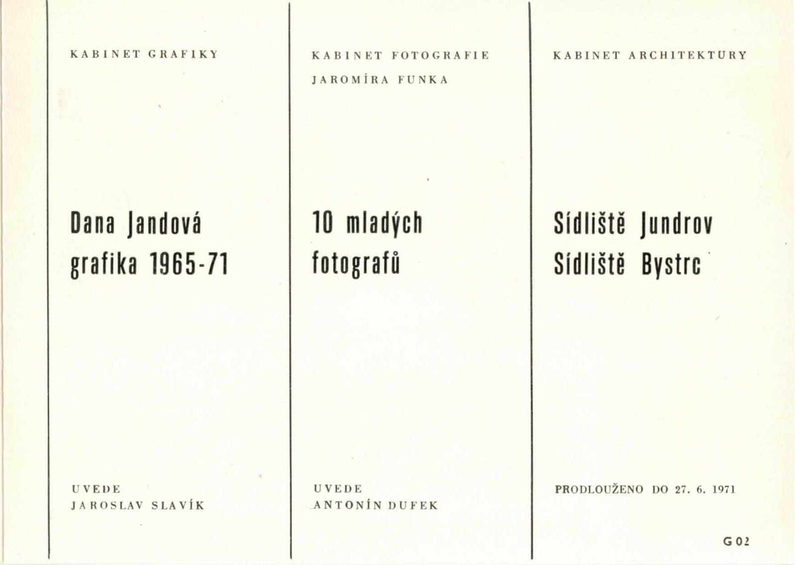 10 [mladých] fotografů. Fotografie: Dům umění města Brna / Dům pánů z Kunštátu, 113. výstava Kabinetu fotografie Jaromíra Funka, 4. 6. – 4. 7. 1971 / Text: Antonín Dufek. – Brno: DUmB, 1971. – 12 s., obr., 1 s. textu, DPK 475