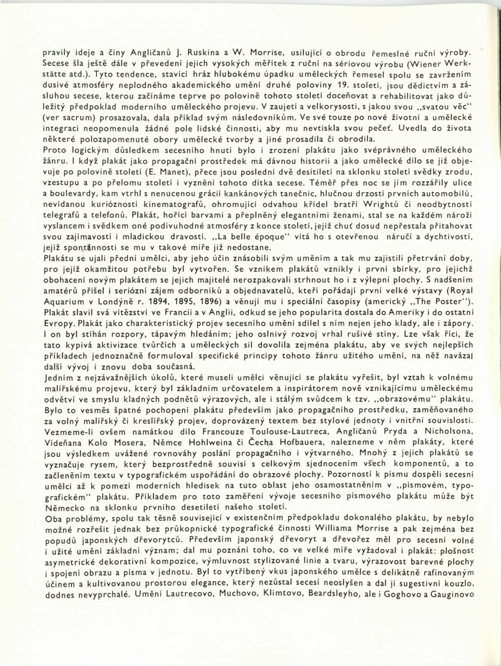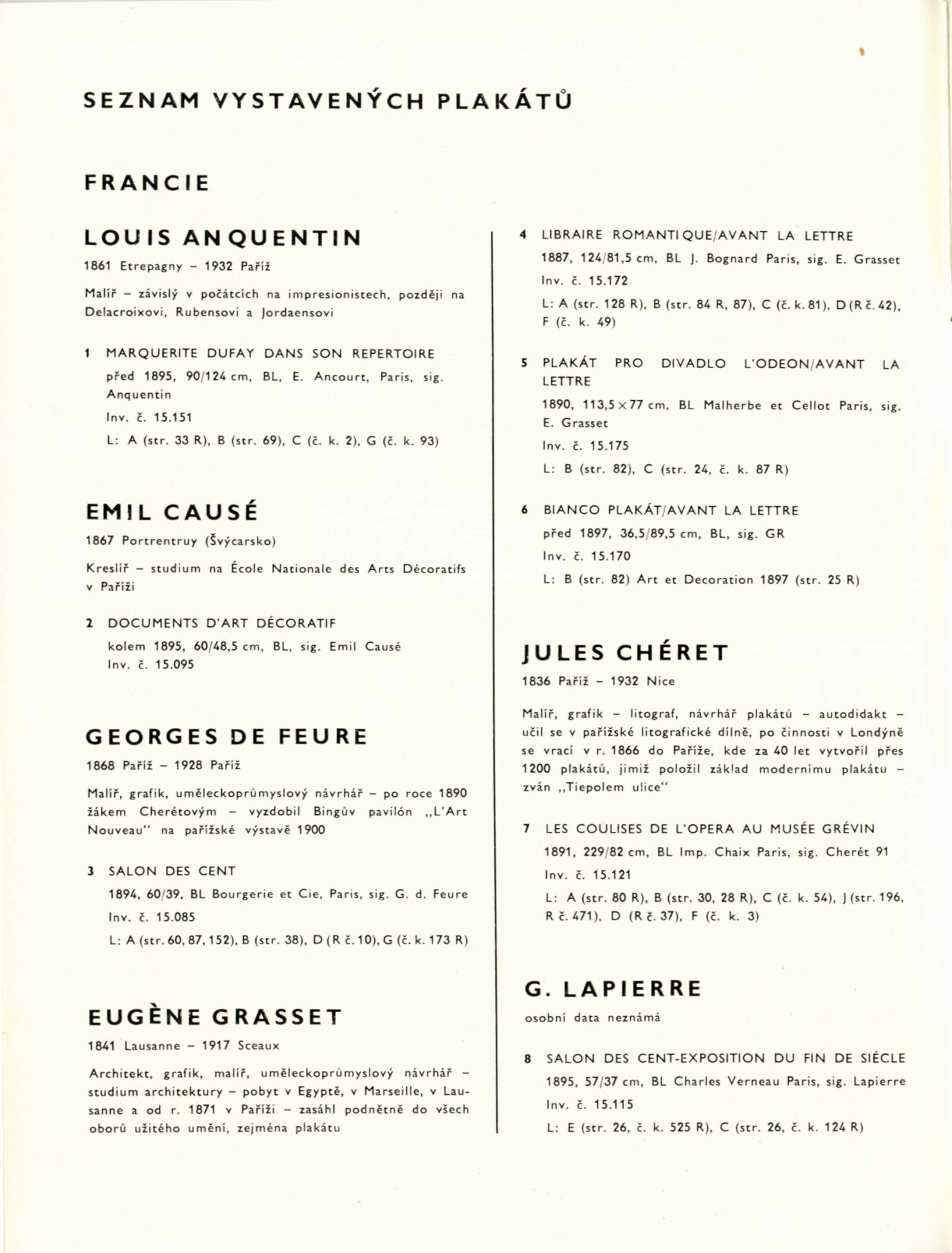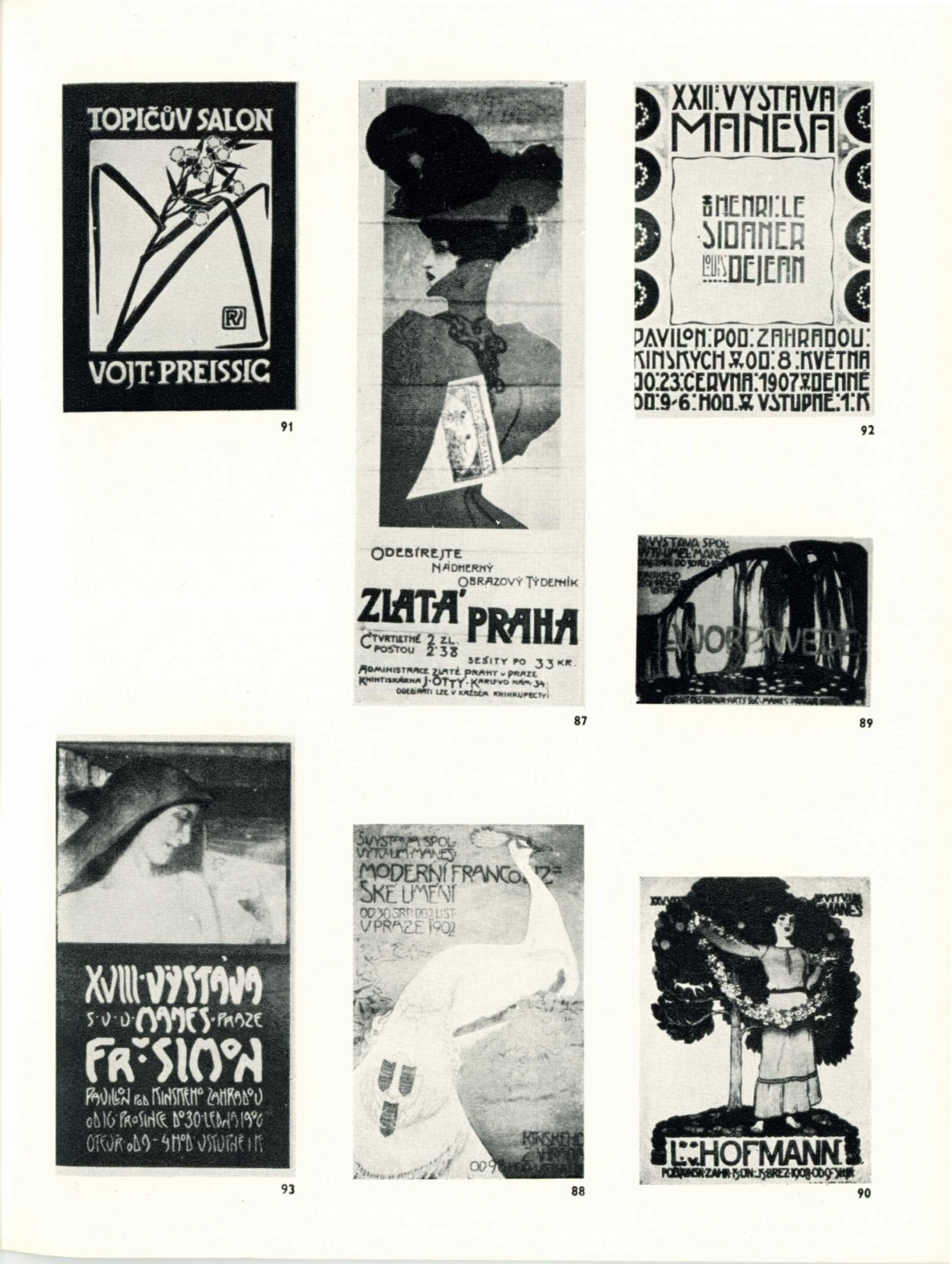 Mikoláš Aleš, Louis Anquentin, Josef Maria Auchentaller, Hermann Bekgran, Adolf Boehm, William H. Bradley, Claude Fayette Bragdon, Frank Brangwyn, Emil Causé, Edward Gordon Craig, Julius Diez, Georges de Feure, Fritz Frank, Eugène Grasset, Dudley Hardy, John Hassal, Max Hertwig, Arnošt Hofbauer, Ludwig Hohlwein, Jaroslav Honzík, Jules Chéret, Frank Chestwort, Hans Christiansen, Gottlob Gottfried Klemm, Friedrich Wilhelm Kleukens, Gustav Klimt, Julius Klinger, Ludvík Kuba, František Kysela, Gabriel Lapierre, Hans Lindenstaed, Gustave Lorain, Luděk Marold, Philip May, Leopoldo Metlikovitz, Henri Meunier, Koloman Moser, Alfons Mucha, Vratislav Nechleba, William Nicholson, Josef Maria Olbrich, Viktor Oliva, Emil Orlik, Bruno Paul, Edward Penfield, Jan Preisler, Vojtěch Preissig, Privat-Livemont, James Pryde, Leo Putz, Walford Graham Robertson, Alfred Roller, Jaroslav Rösler, Paul Rössler, Théophile Alexandre Steinlen, Signatura P. B., Franz von Stuck, Tavík František Šimon, Karel Špillar, Max Švabinský, Richard Teschner, The Beggarstaff, Henri de Toulouse-Lautrec, Miguel Utrillo, Alexandro Villa, Bohumil Waigant, Wall, Adolphe Willette, Max Wislicenus, Josef Rudolf Witzel, Vladimír Županský