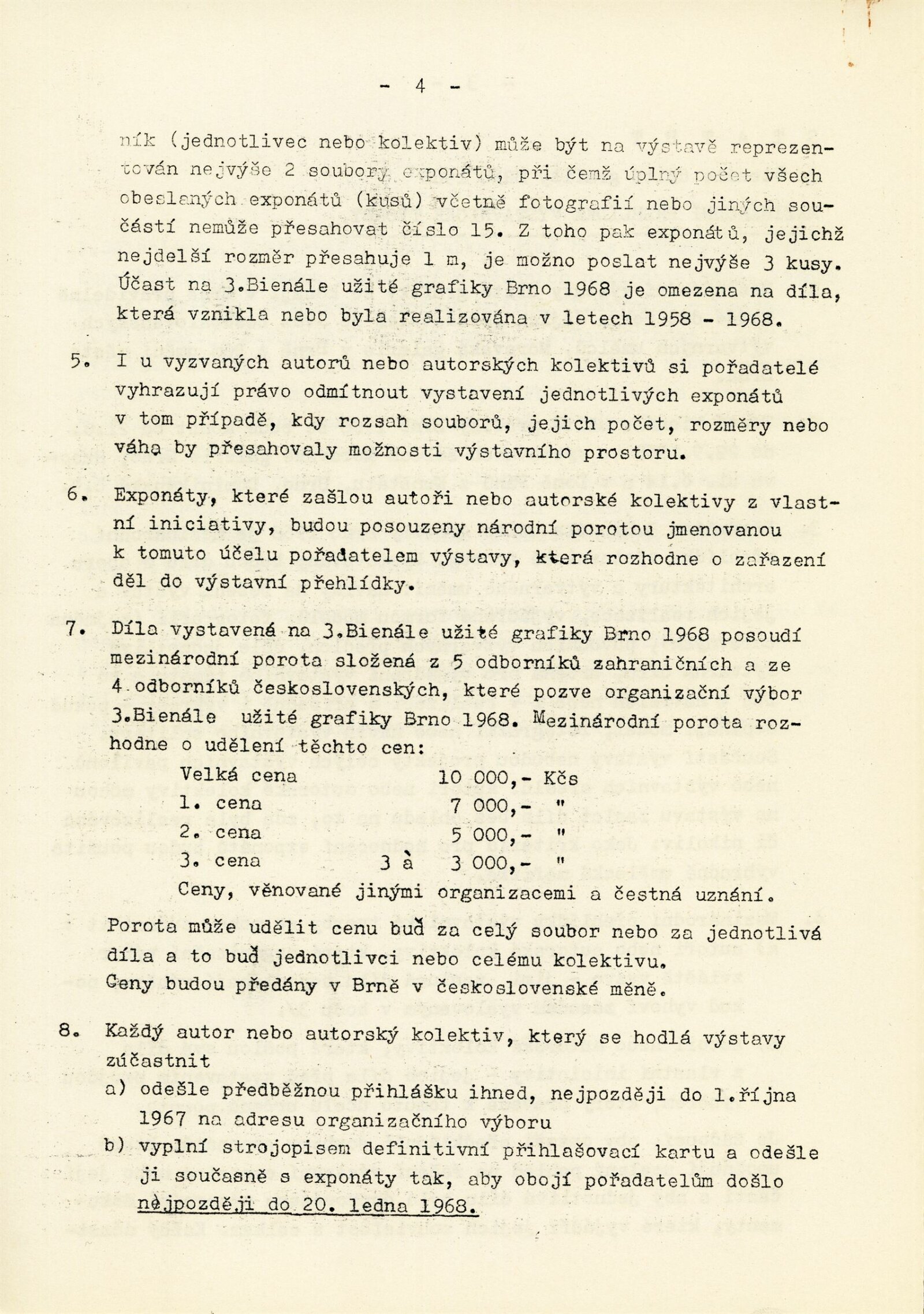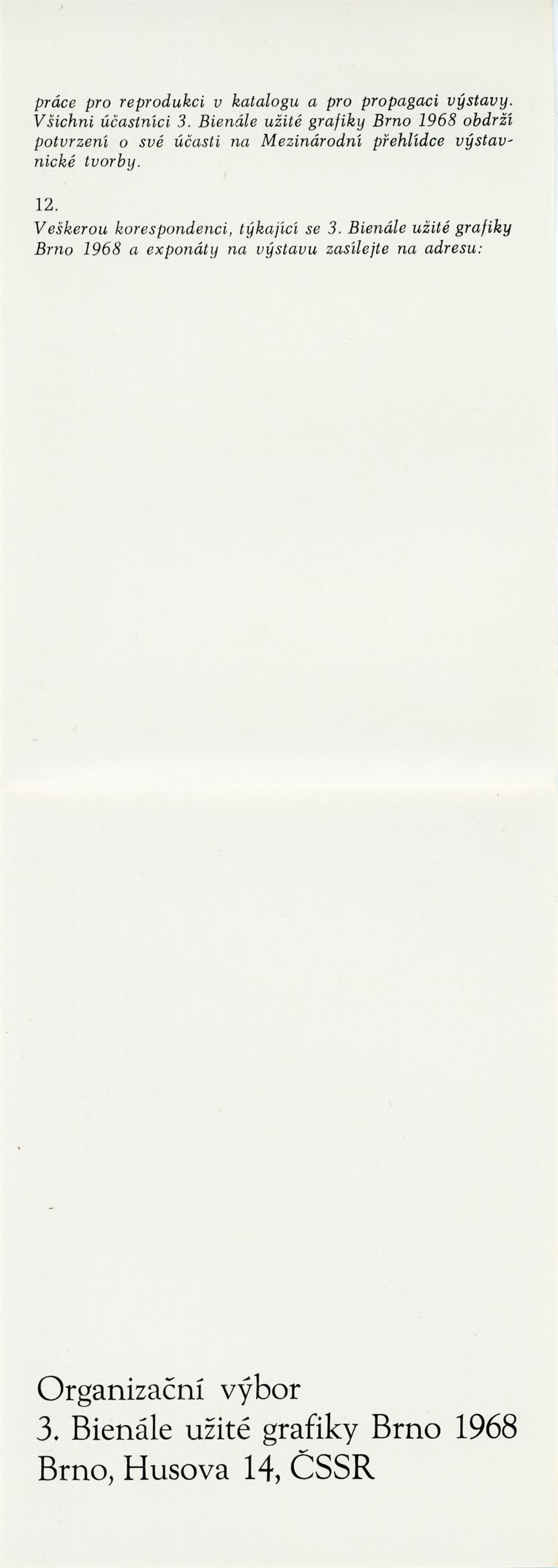 pozvánka, návrh ideového uspořádání 3. bienále, zápisy z jednání organizačního výboru, přihlášky, statut 3. bienále užité grafiky, buletin č. 1 (česky, cizojazyčně), provozní korespondence (inzerce v katalogu, ceny), recenze v tisku