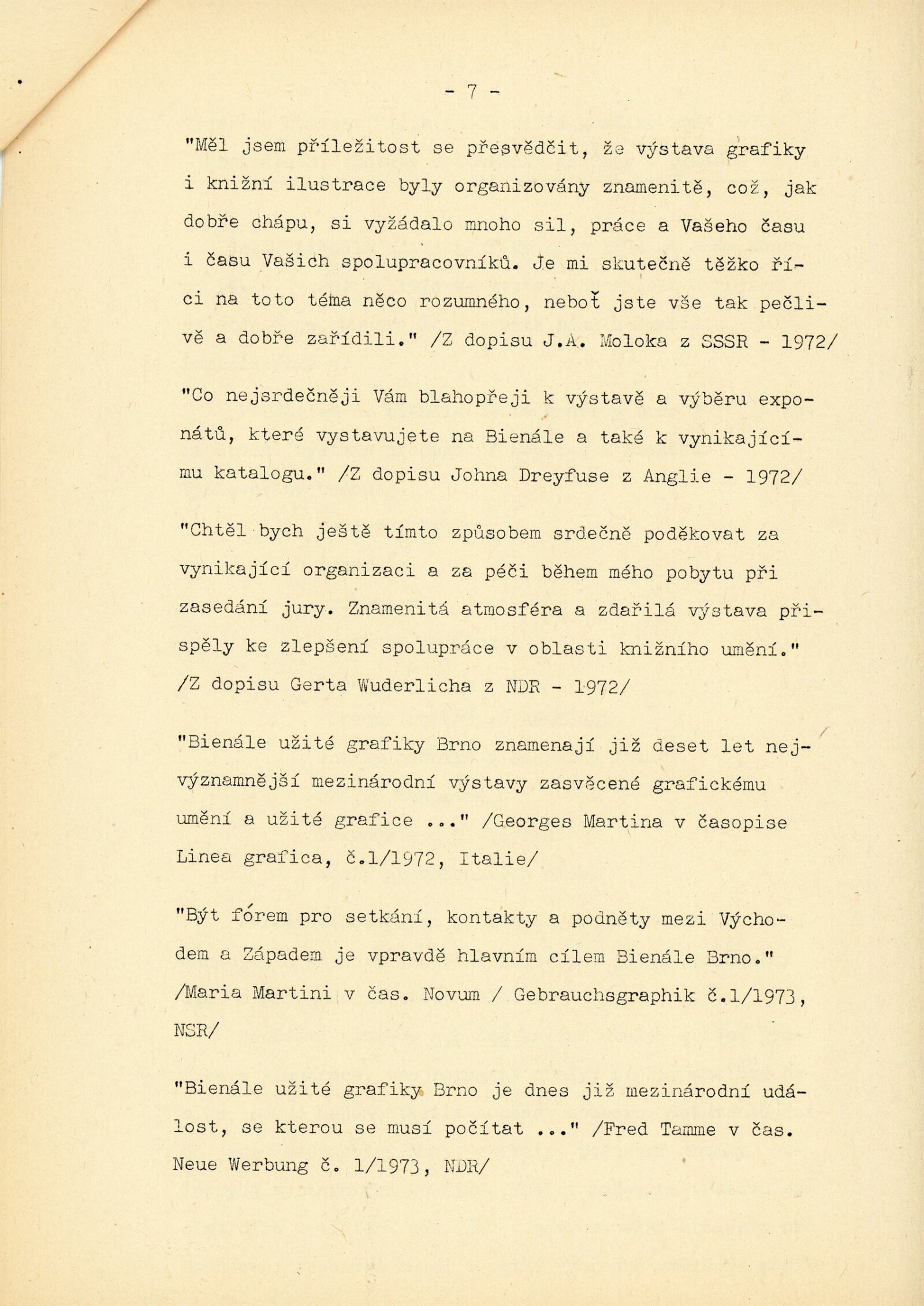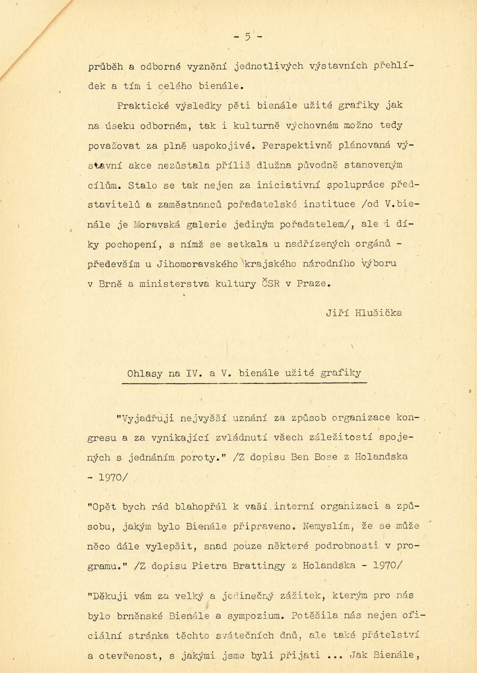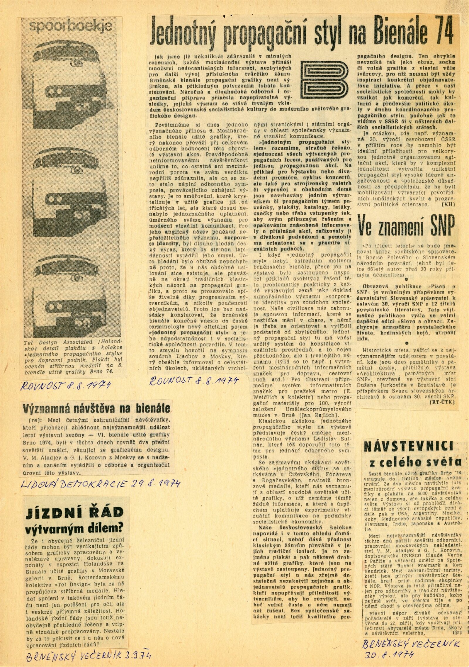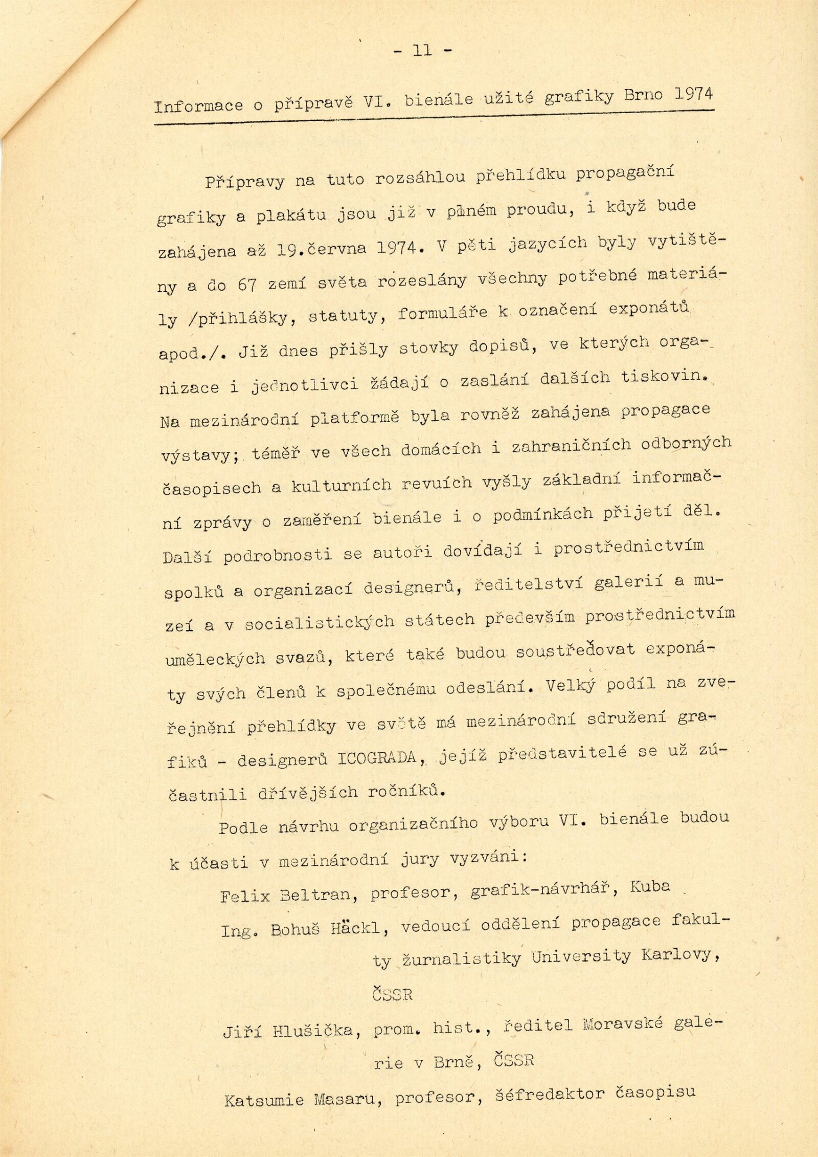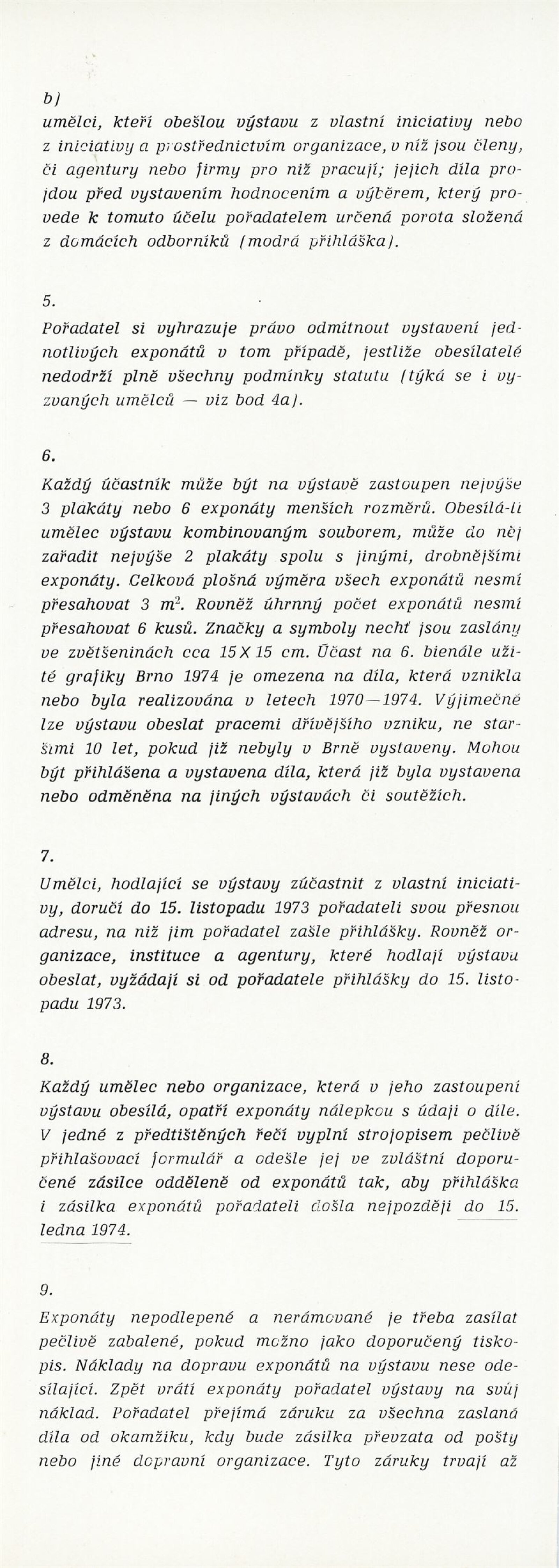Mezinárodní výstava propagační grafiky a plakátu: 6. bienále užité grafiky Brno 1974: Dům umění / Dům pánů z Kunštátu, Moravská galerie v Brně, 19. 6. – 22. 9. 1974 / Text: Jiří Hlušička. – Brno: Moravská galerie, 1974. – 326 s., obr., název a text též francouzsky, životopisy vystavujících, přehled cen a uznání z roku 1970 a 1972, DPK 573. – MZK; MG