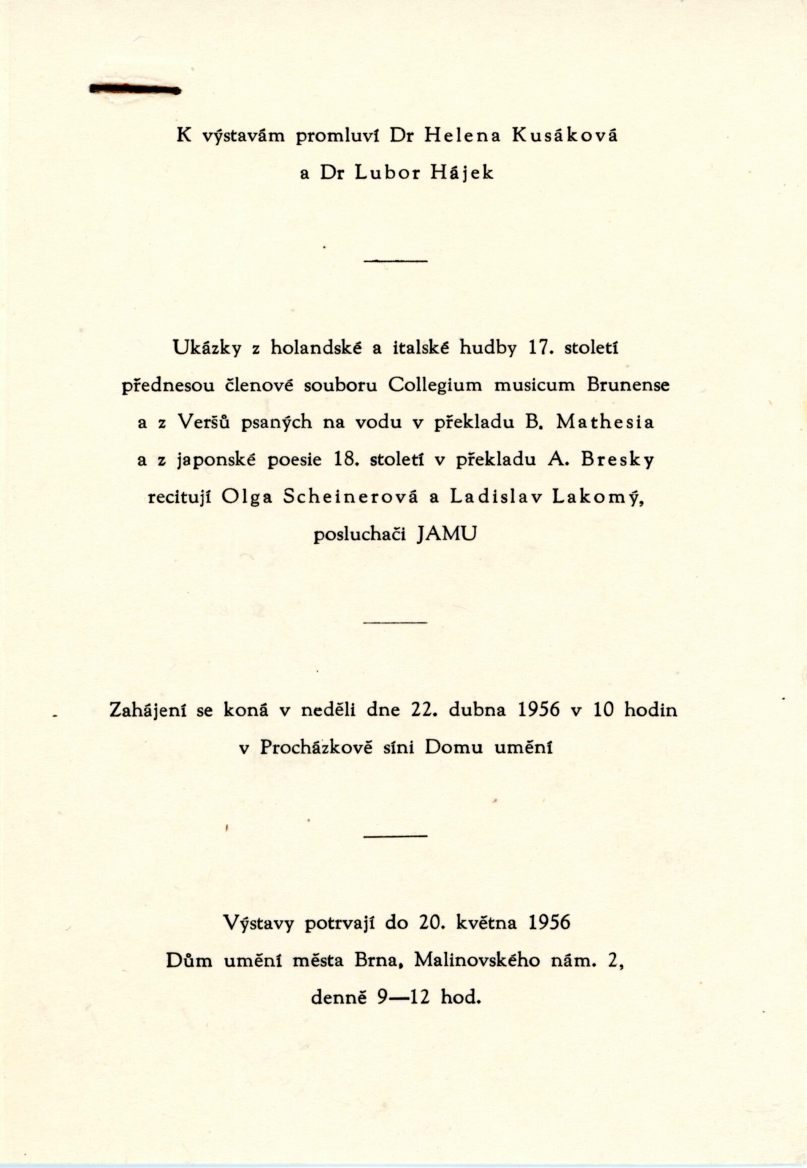 pozvánka (společná s DU 249), katalog (společný s DU 249), strojopis textu, seznam prací