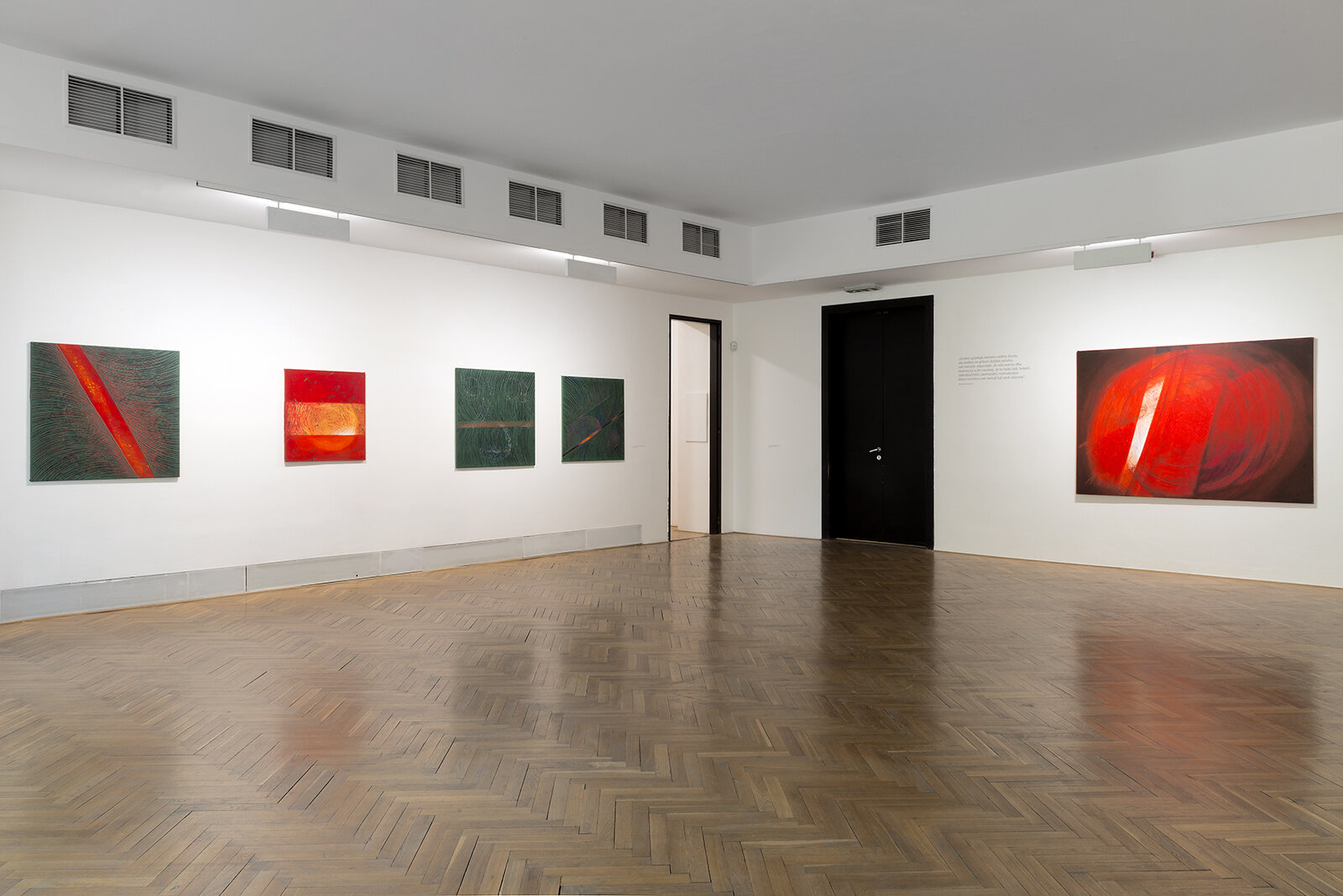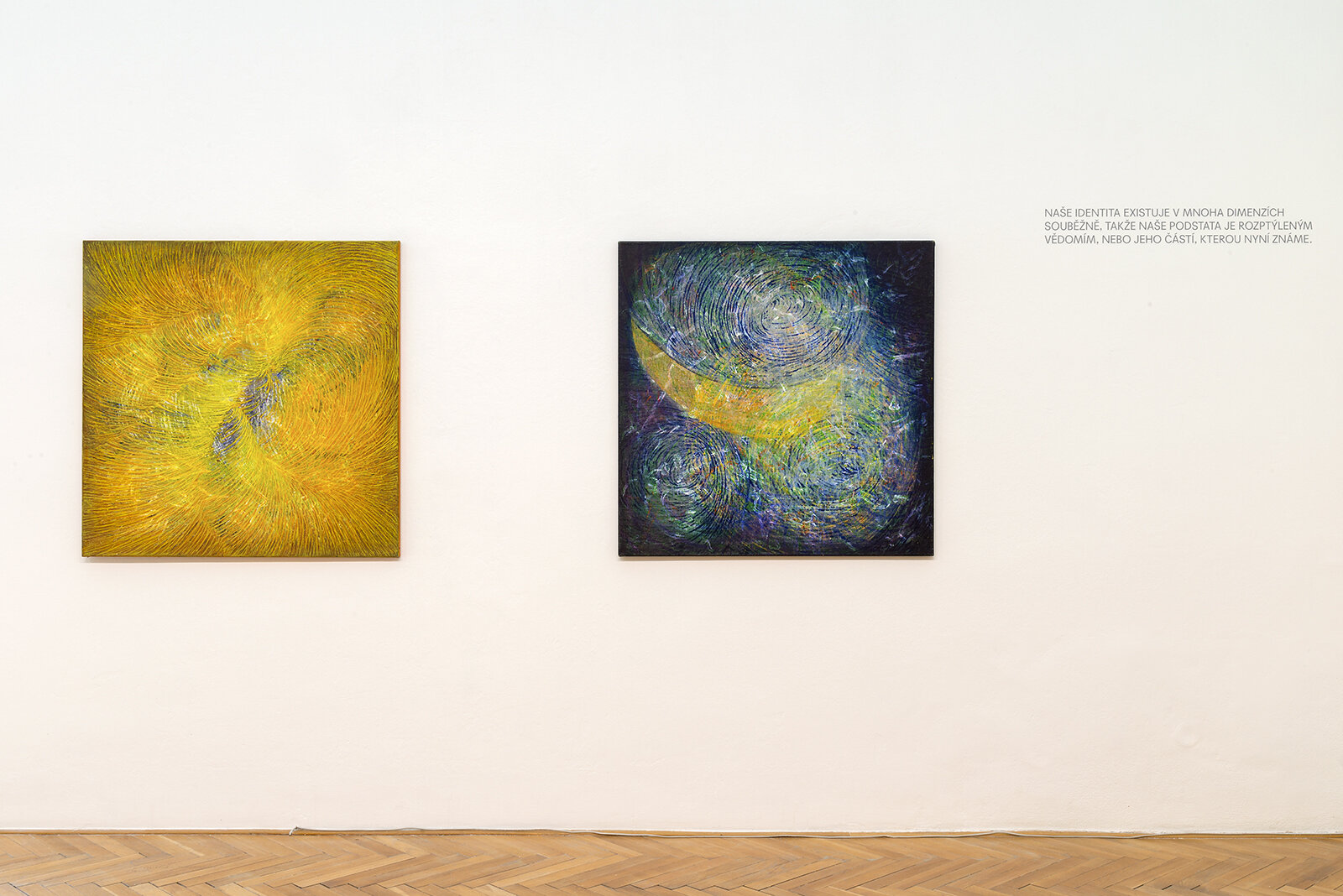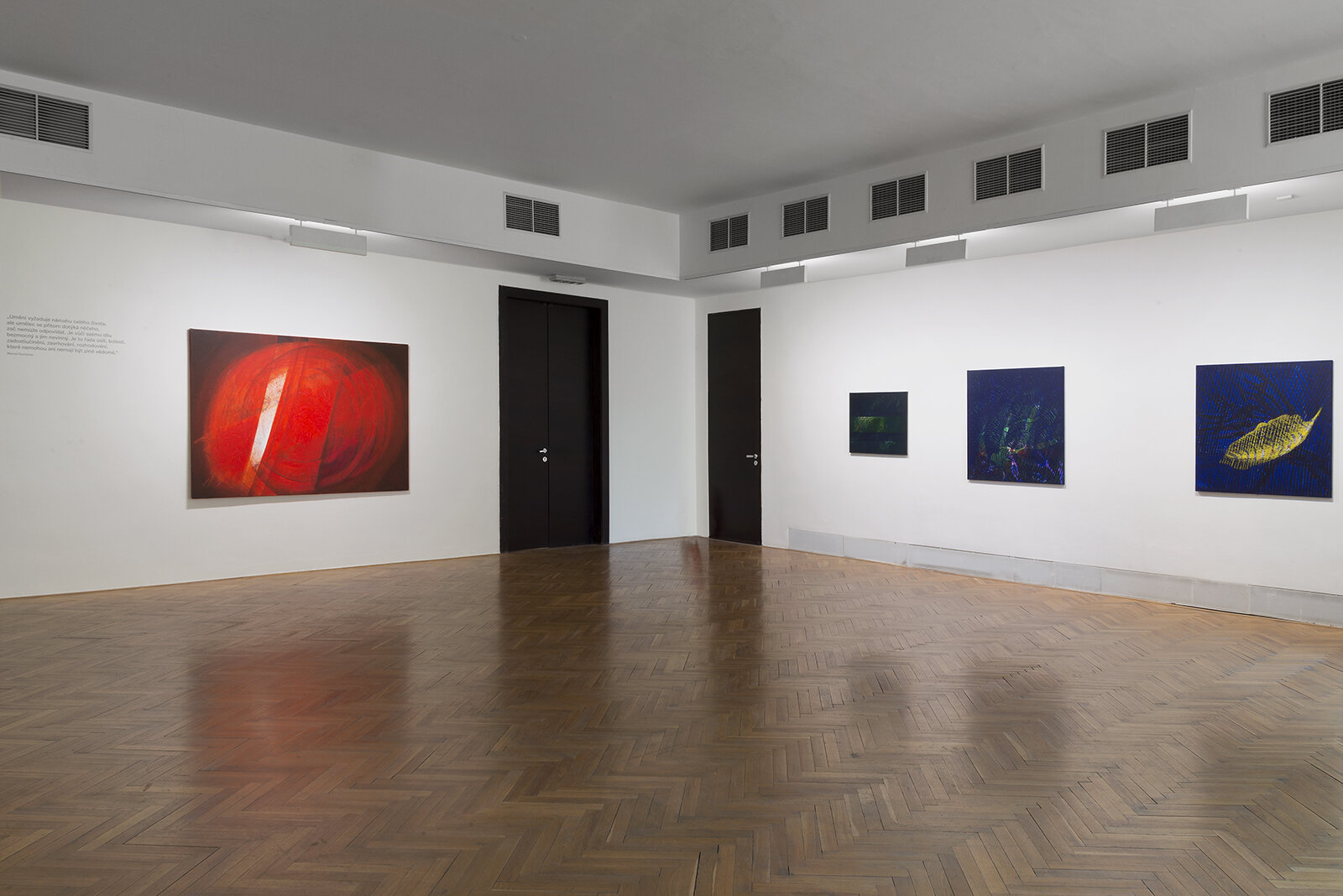 The work of Bohuslava Olešová, embracing paintings, spatial installations, site-specific projects and actions is multi-faceted and highly creative, yet compact. It contains several positions which are interrelated and are based on ideologically consistent artistic principles. Olešová creates loose sequences of cycles. The nature of the visual means applied is not just aesthetically significant, but is indicative of the determinants that delimit and impact human life, which we have to abide by and respect. She uses painting as a vehicle to penetrate the very essence of life and the actions that we are part of, she studies the relationships between life on earth, the energies and the position of man in cosmos, man as a unique individuality dependent on the space and time in which one exists. Her work grows from intersecting ideas and beliefs regarding the meaning and values of human life, and knowledge from various scientific disciplines. It can be equally perceived as a meditation on the position of man in the contemporary world and the universe.