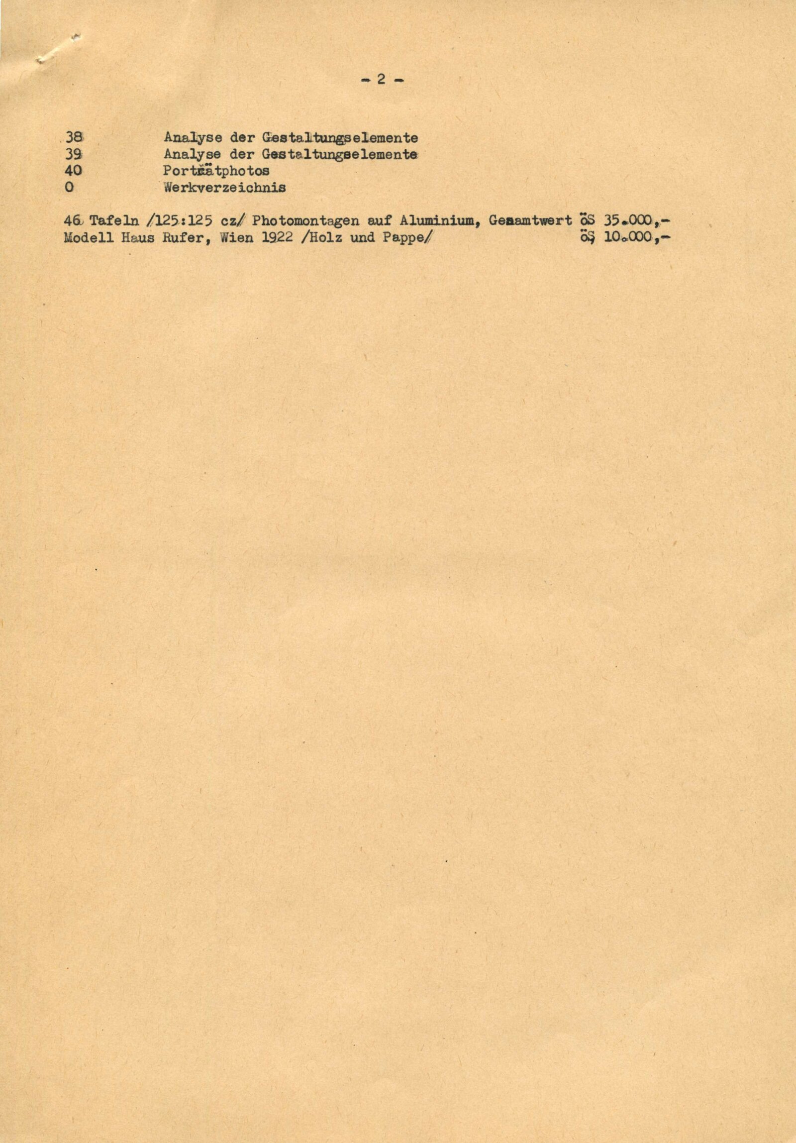 Adolf Loos: Dům umění města Brna / Dům pánů z Kunštátu, 4. 9. – 11. 10. 1964 / Převzatý katalog. Adolf Loos: Muzeum 20. století, Vídeň, 27. 4. – 21. 6. 1964 / Text: Werner Hofmann, úryvky ze statí dalších autorů a Adolf Loos. – Wien: Museum des 20. Jahrhunderts, 1964. – 15 s., obr. přil. 4 s., seznam projektů a staveb, bibliografie, DPK 233
