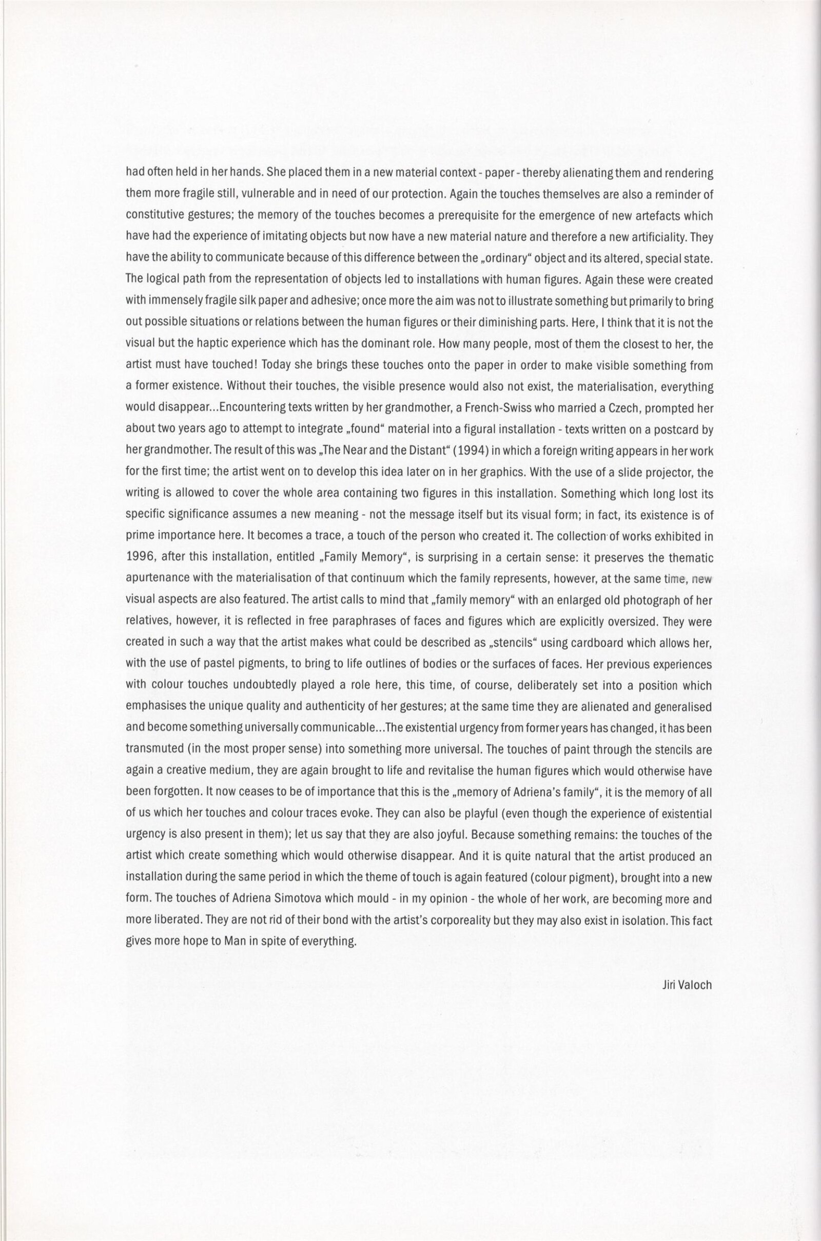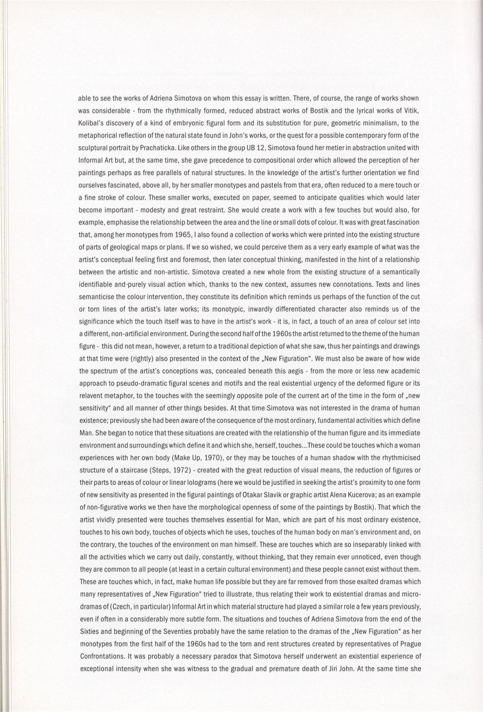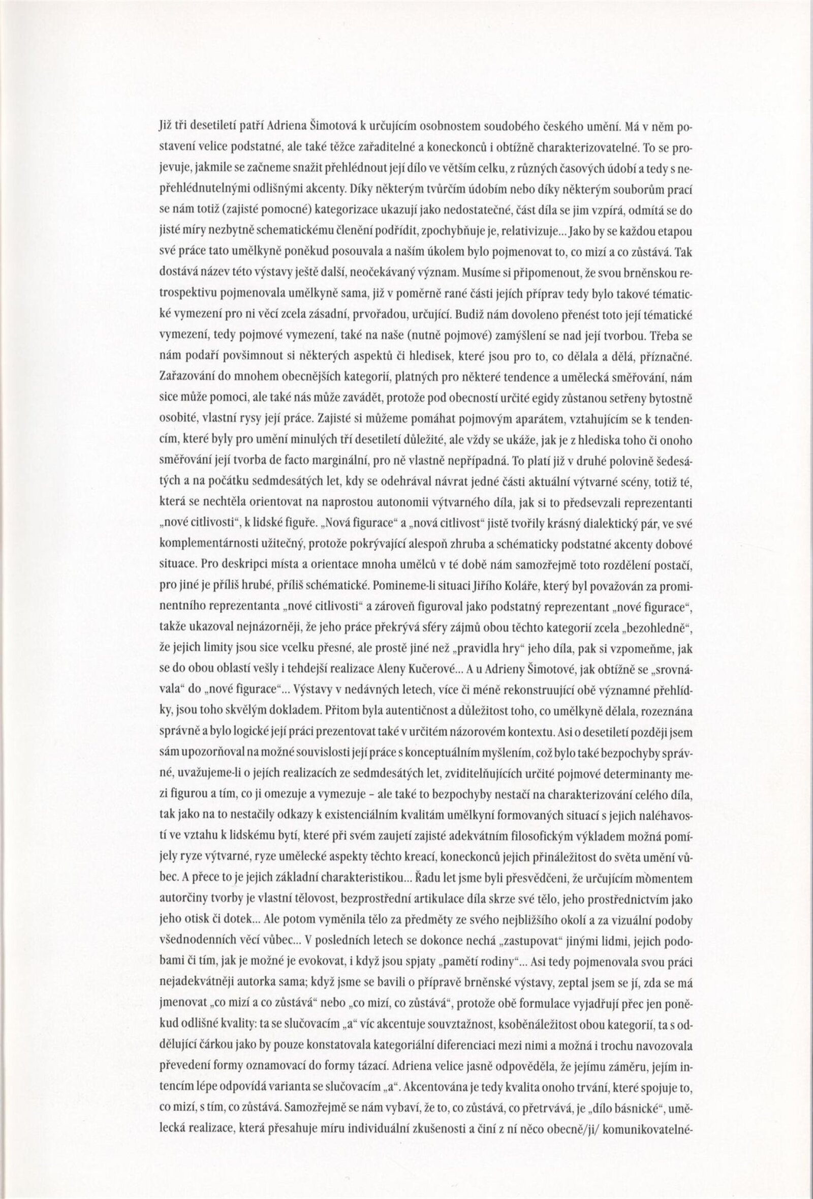 Adriena Šimotová. Co mizí a co zůstává: Dům umění města Brna, 12. 9. – 13. 10. 1996 / Text: Jiří Valoch. – Brno: DUmB, 1996. – [40] s., obr., portrét, životní data, výstavy, zastoupení ve sbírkách, DU 1034. – MZK; MG