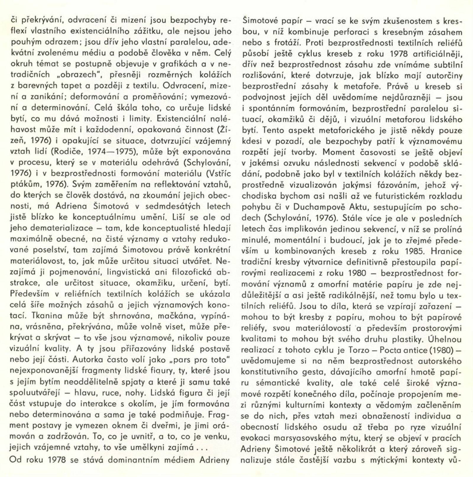 Adriena Šimotová. Práce na papíře: Dům umění / Dům pánů z Kunštátu, Kabinet grafiky, 8. 4. – 18. 5. 1986 / Text: Jiří Valoch. – Brno: DUmB, 1986. – [28] s., obr., životní data, výstavy, ceny, zastoupení ve sbírkách, DPK 867. – MZK; MG; MMB