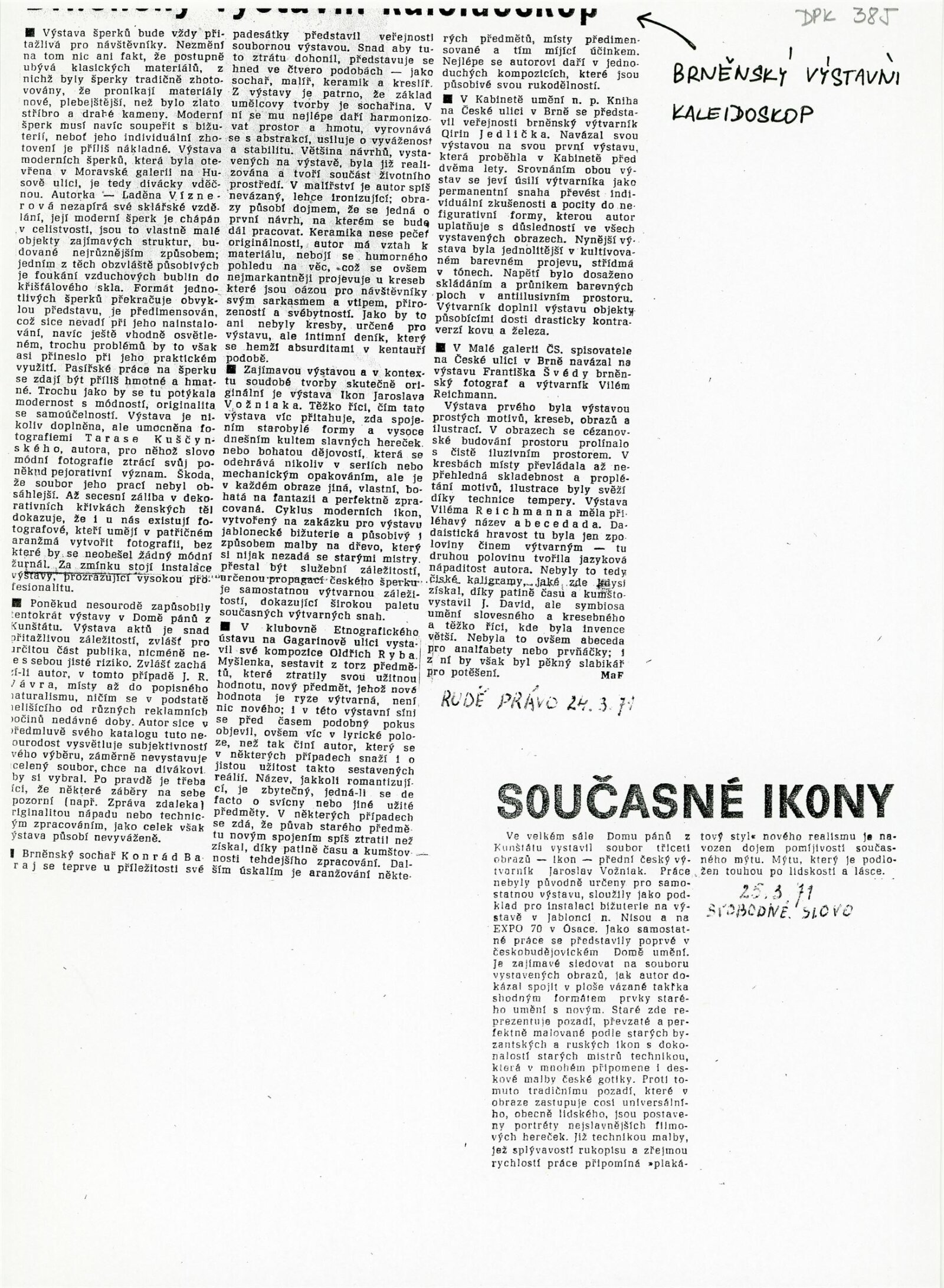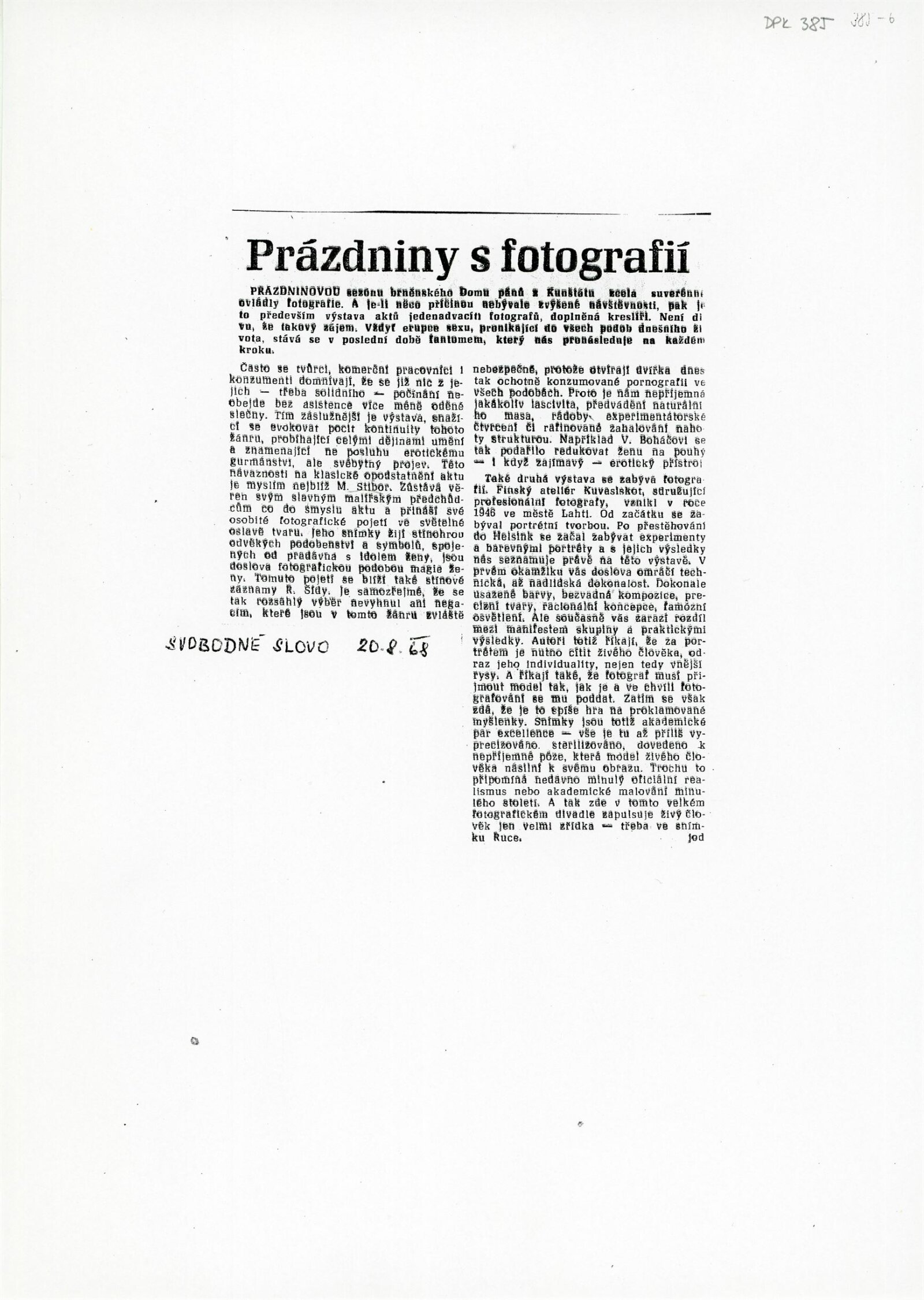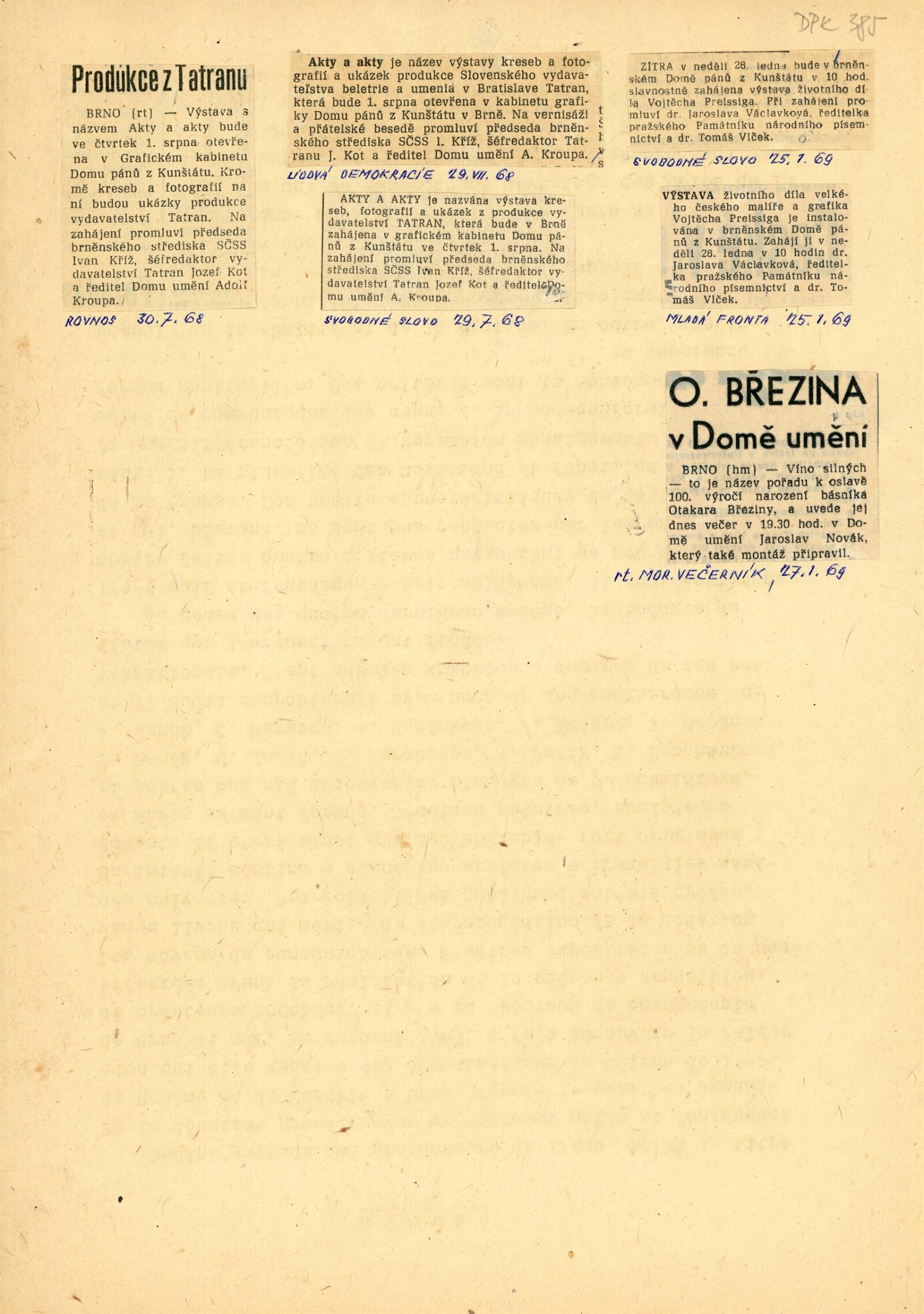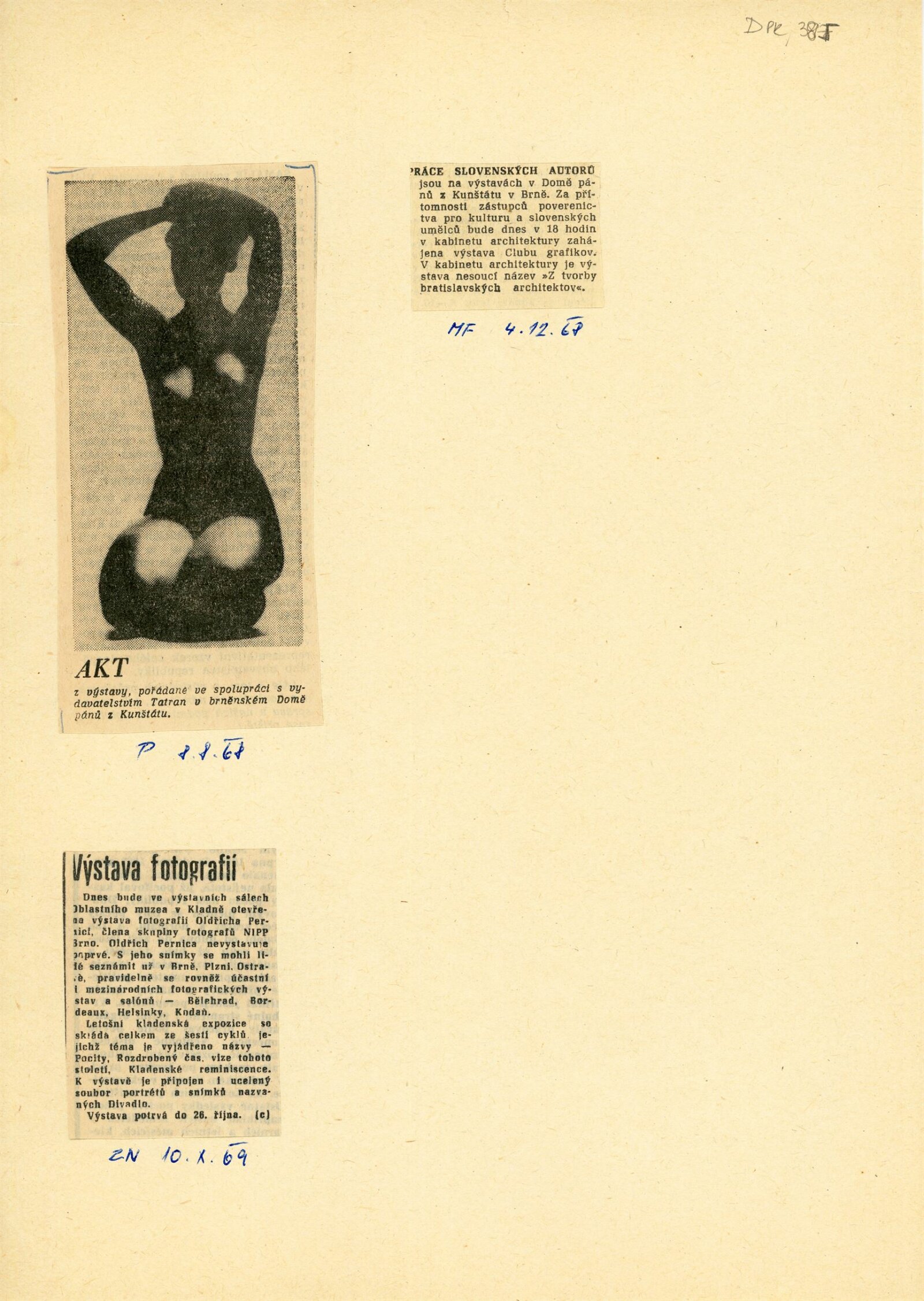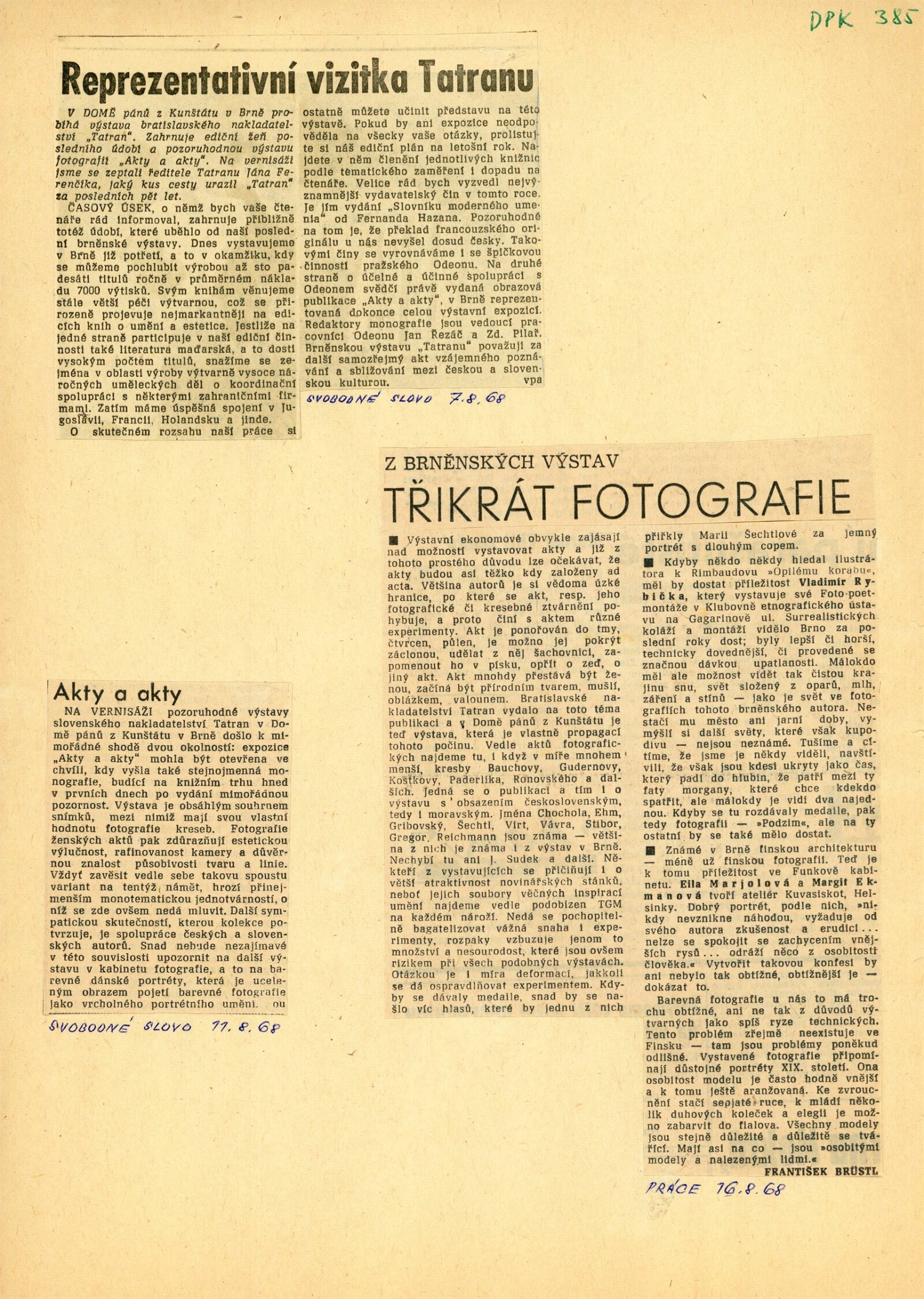 pozvánka, provozní korespondence (potvrzení o ztrátě fotografií – Nakladelství Tatran/DU), recenze v tisku