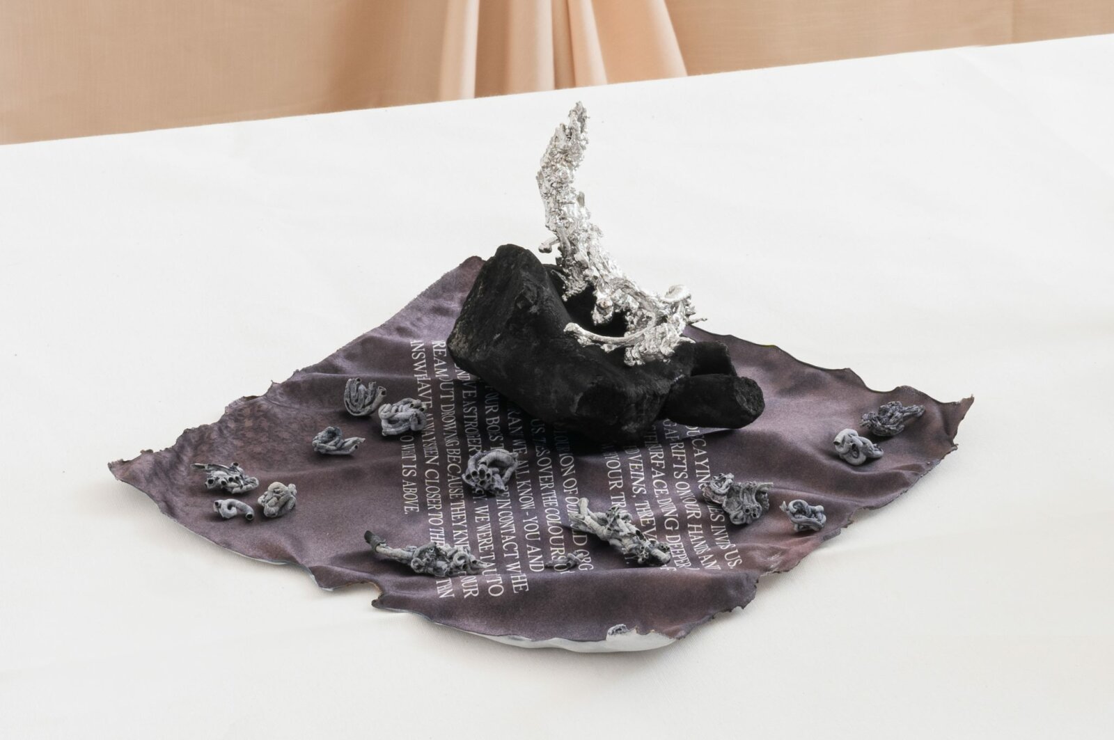 Alagya is a research- and collaboration-based practice by Szilvia Bolla (b.1992, Hungary) and Aron Lodi (b.1996, Hungary). They aim to construct new possible forms of literacy to decode and mourn planetary life and identity in the capitalocene through collaborative work and interplay between sculpture and text. Based on both speculation and facts, they attempt to forge visionary pre-/reimaginations of technofossils as material traces of the capitalocene – the age when (pseudo-) commodity appears as a species that desires chaos and necrotizes the entire planet. However, instead of interpreting technofossils as ghostly dead matter, the project examines them as dynamic entities through the scope of new materialist vitalism as a form of elegiac grief of the irreversible losses of our future past. They create material hybrids, body machines that are inhabitants / refugees / natives / critters / creatures / survivors of the monstrous sublime and uncanny paradox. Thus, the project Alagya embraces identity, materiality and technology to learn about what it means/how it feels to be a dweller of a world in which matter, tool, human and information are irrevocably intertwined.