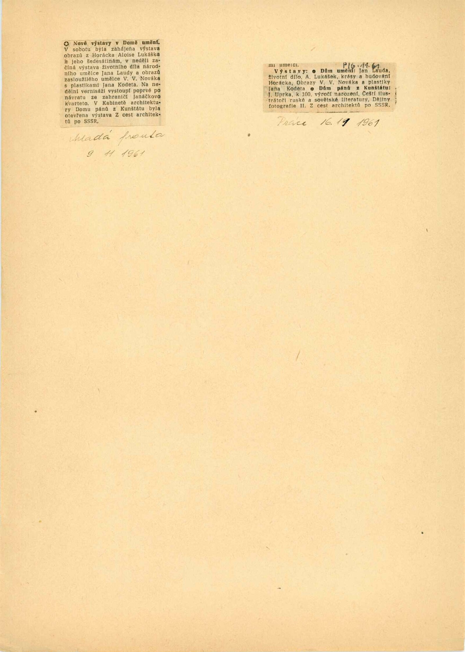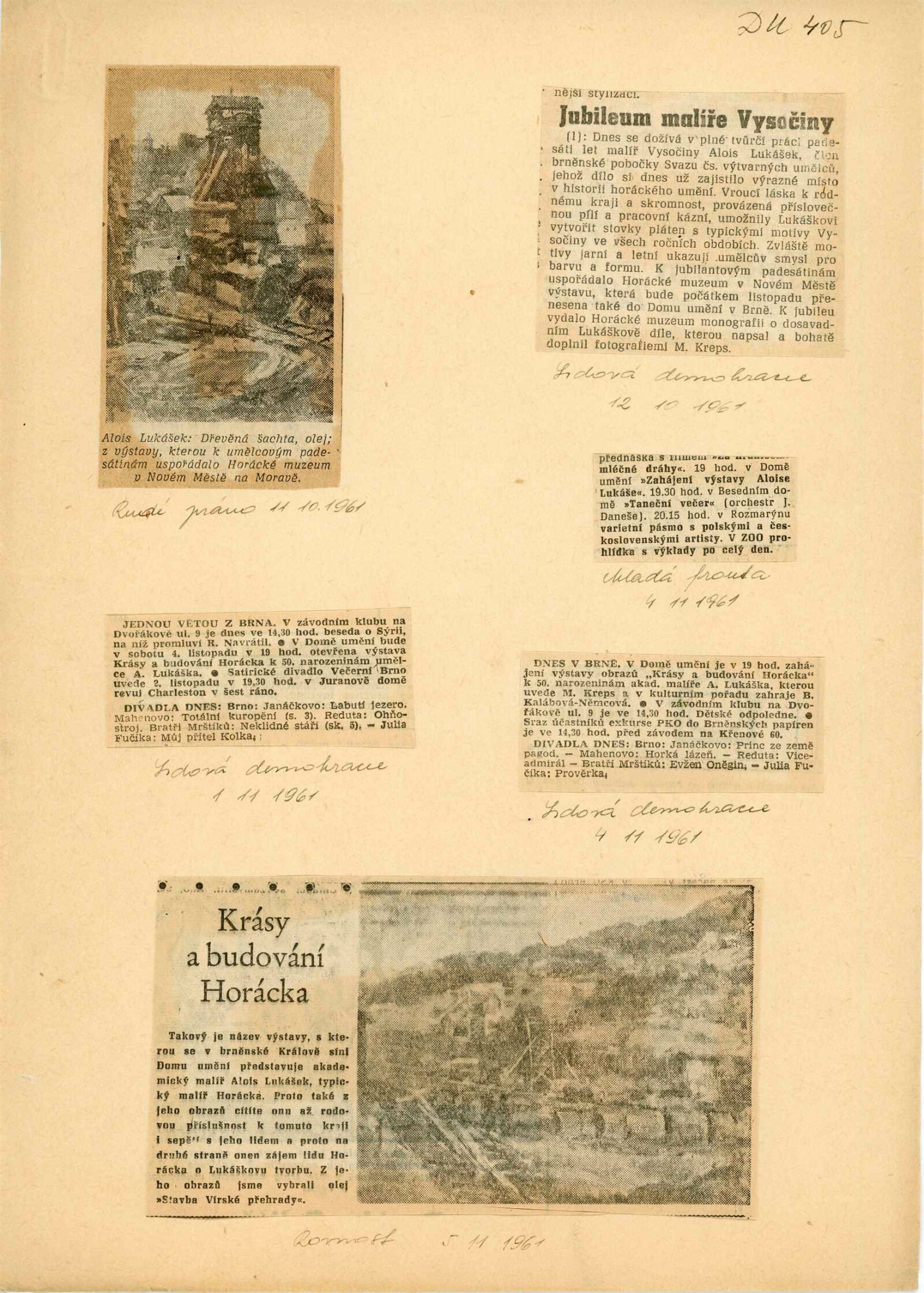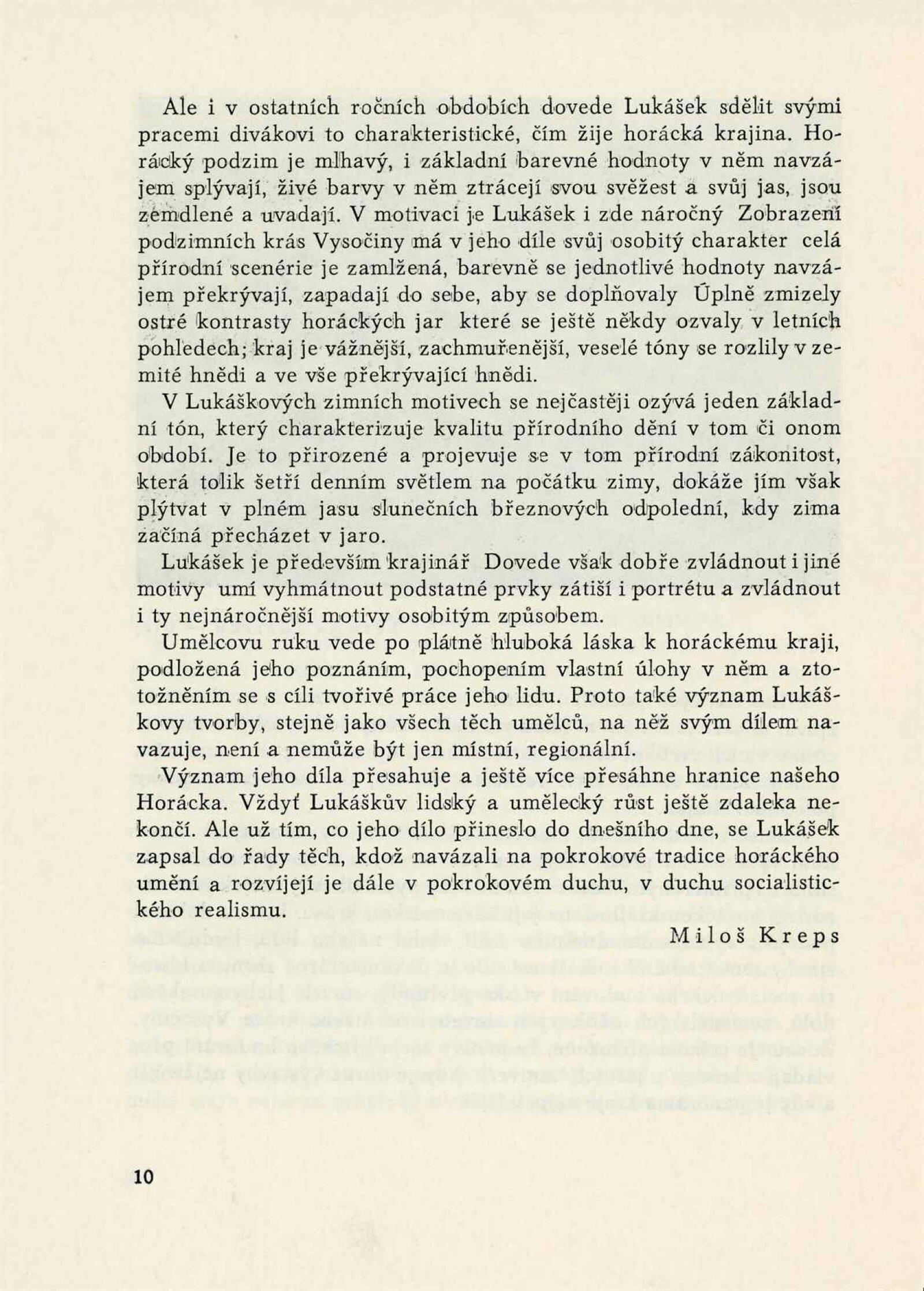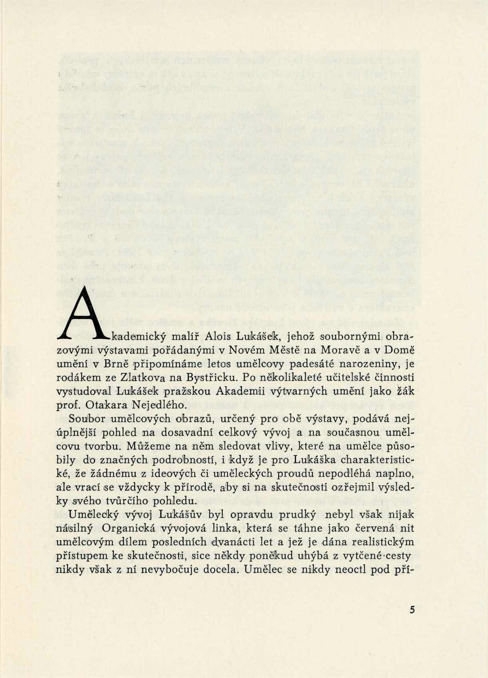 Alois Lukášek k umělcovým padesátým narozeninám: Dům umění města Brna, Malá galerie, 4. 10. – 3. 12. 1961 / Text: Miloš Kreps. – Nové Město na Moravě: Horácké muzeum, 1961. – 10 s., obr., seznam obrazů 1 s., DU 405. – MG