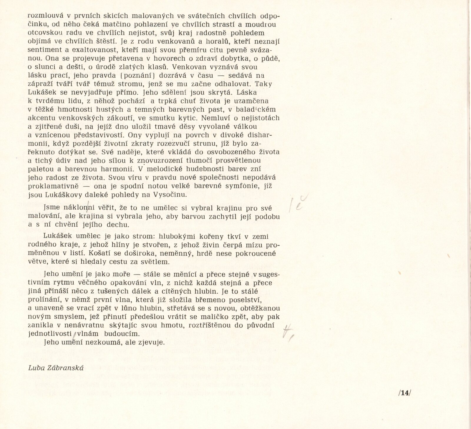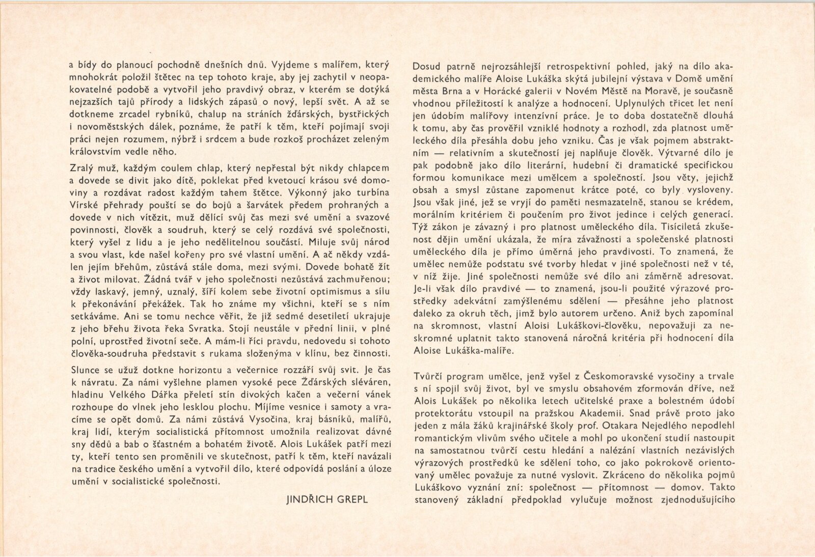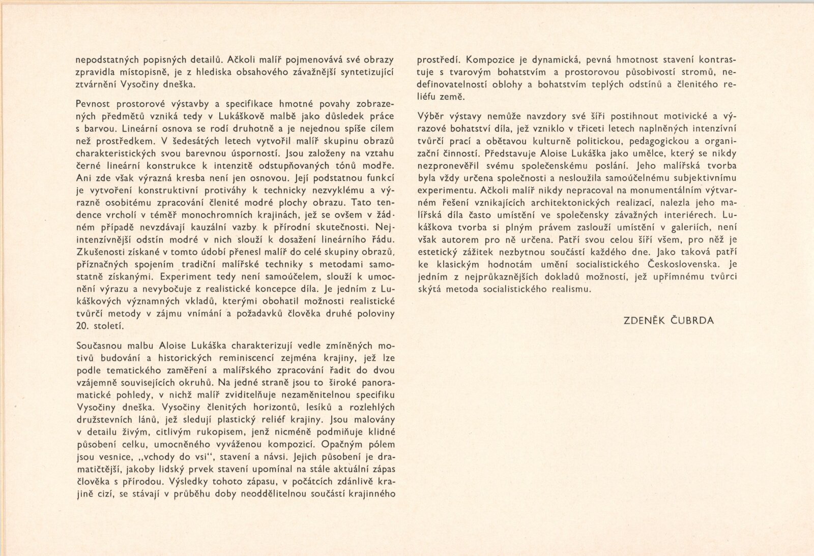 Alois Lukášek. Výběr z díla: Dům umění města Brna, 11. 4. – 16. 5. 1976 / Texty: Rudolf Hegenbart, Zdeněk Čubrda. – Nové Město na Moravě: Horácká galerie výtvarného umění, 1976. – 40 s., obr., katalog 1 l., portrét, životní data, výstavy, současně vydán zkrácený katalog s textem autora / Alois Lukášek / Brno: Blok pro Dům umění města Brna, 1976. – 12 s., obr., DU 636. – Kubíček 7884; MZK; MG; MMB