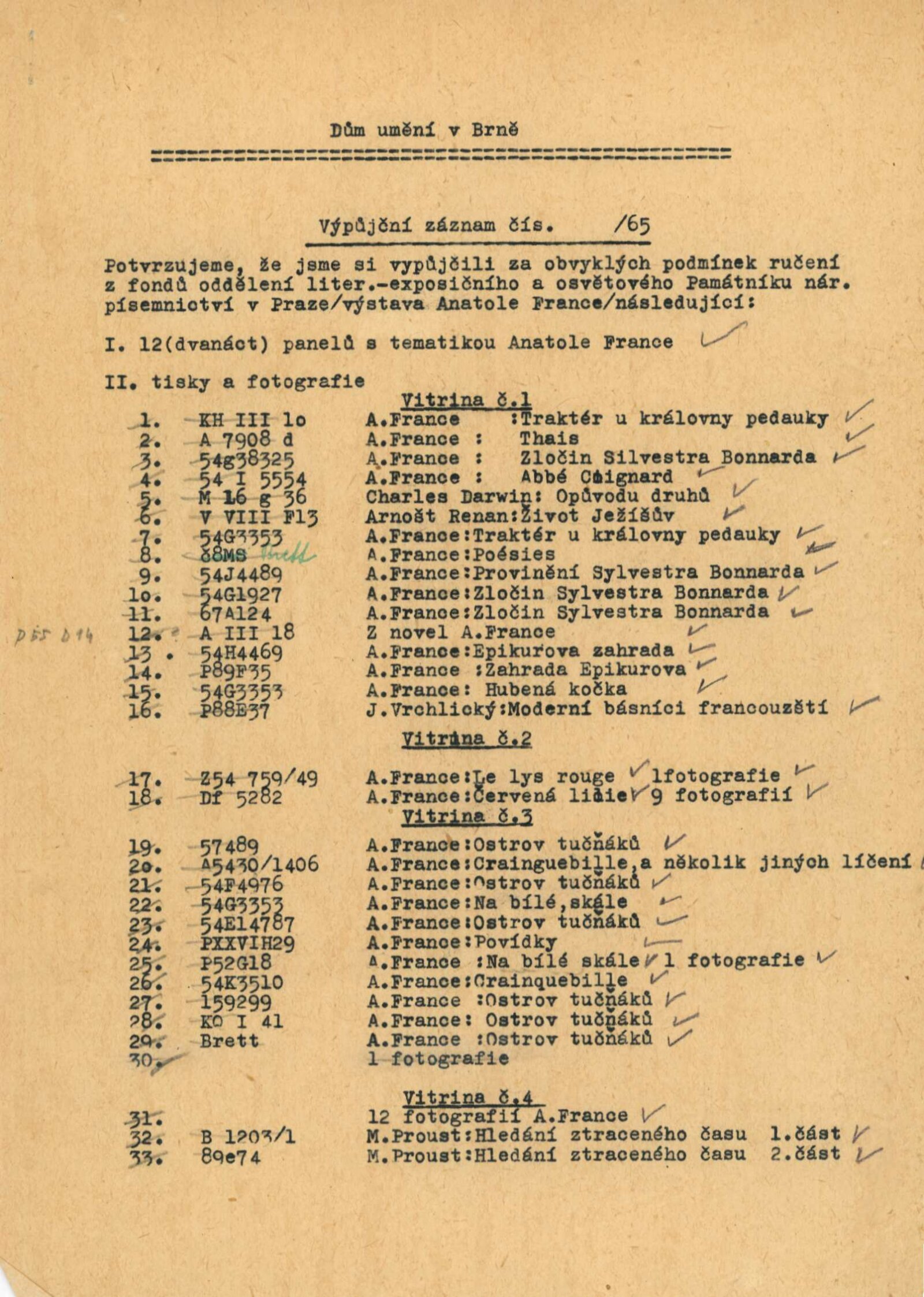 úvod vernisáže, zpráva o výstavě, provozní korespondence (Památník národního písemnictví + výpůjční záznam)