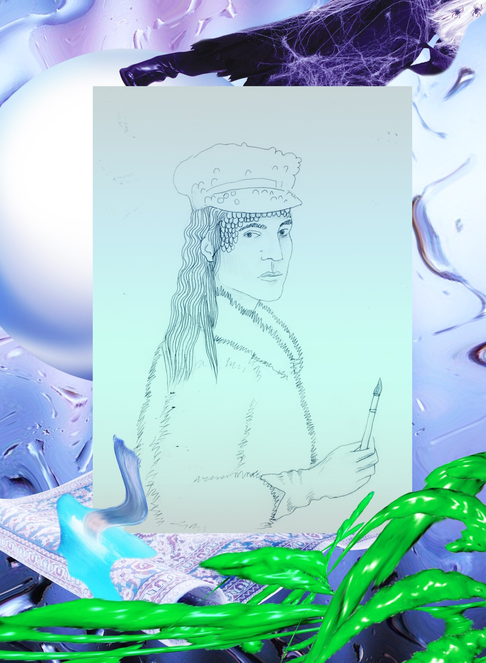 Anita Topínka, or also Liquid Angel XOXO, Mimi New Fragrance, Bluemama, etc., has often explored phenomena and images of the global pop culture world, internet subcultures, advertising aesthetics and fantasy stories, mainly through the mediums of performance, moving image, music and installation. In recent years, she has been engaged in collective and curatorial practice, antigaming and role-playing, interpreting reality through tarot and hydromancy, and drawing on ideas of queer ecofeminism.