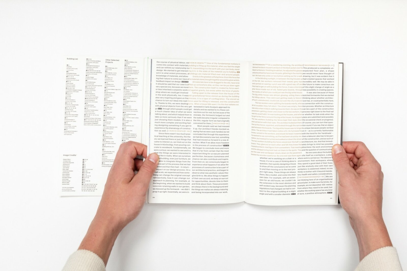 I have problems with authorship in art. The topic of my PhD research is the character and the role of the builders in contemporary architecture. Architecture is a field of art which is made by many hands, but we only speak about the architect. My goal is to reverse the narratives of architecture: look at who is hidden but also the part of the process. That's why I started to make interviews with construction workers, carpenters, and masters. I am really interested in the medium of short films, and video essays. So I try to search for the noname, ordinary, unprofessional, common/shared identities and authorities.