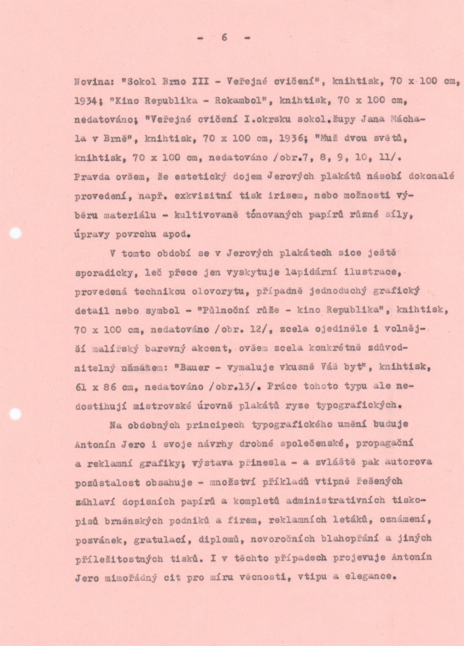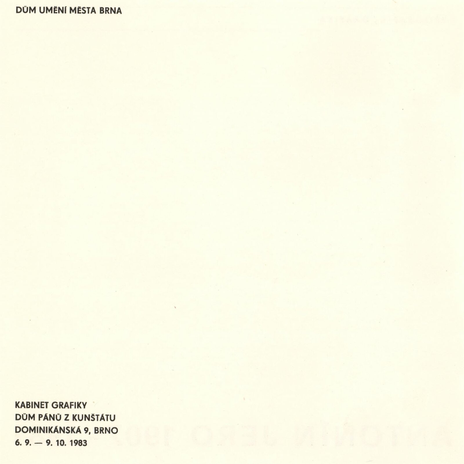 Antonín Jero 1907–1981. Typografie, grafika: Dům umění / Dům pánů z Kunštátu, Kabinet grafiky, 6. 9. – 9. 10. 1983 / Text: Jan Rajlich. – Brno: DUmB, 1983. – 12 s., obr., životní data, výstavy, ceny, DPK 805. – MZK; MG; MMB