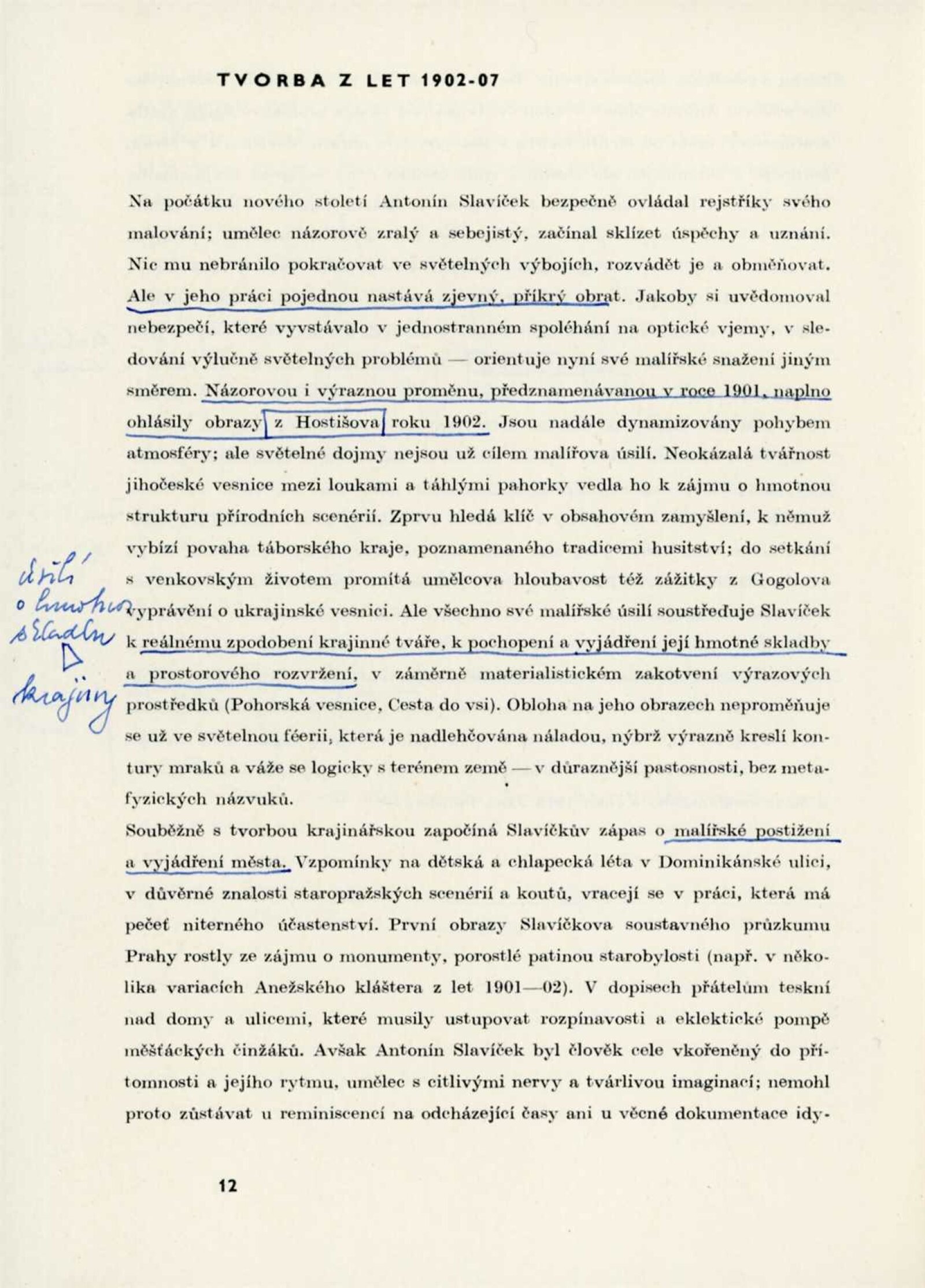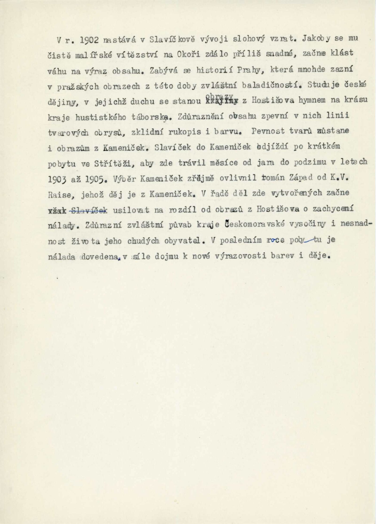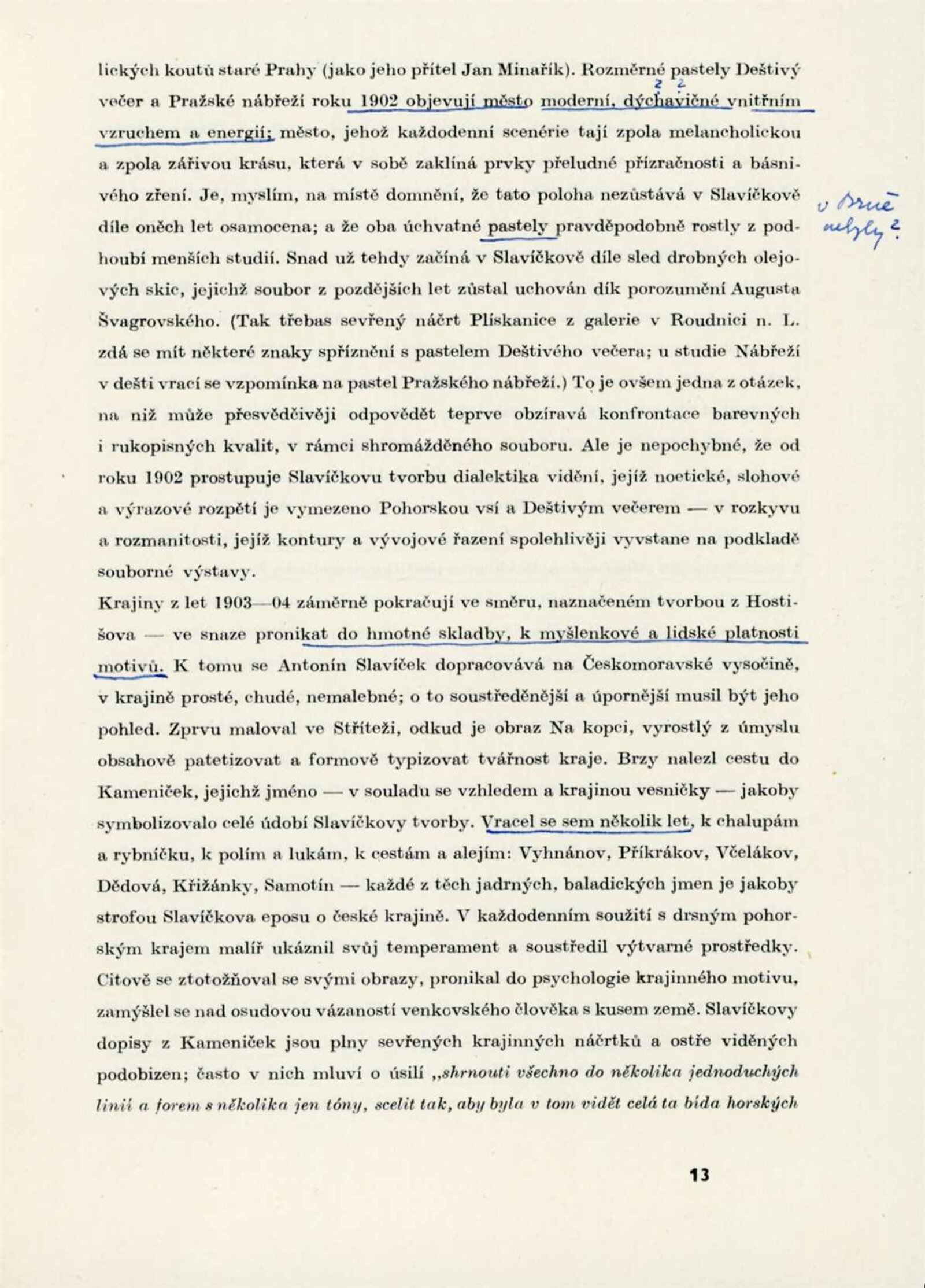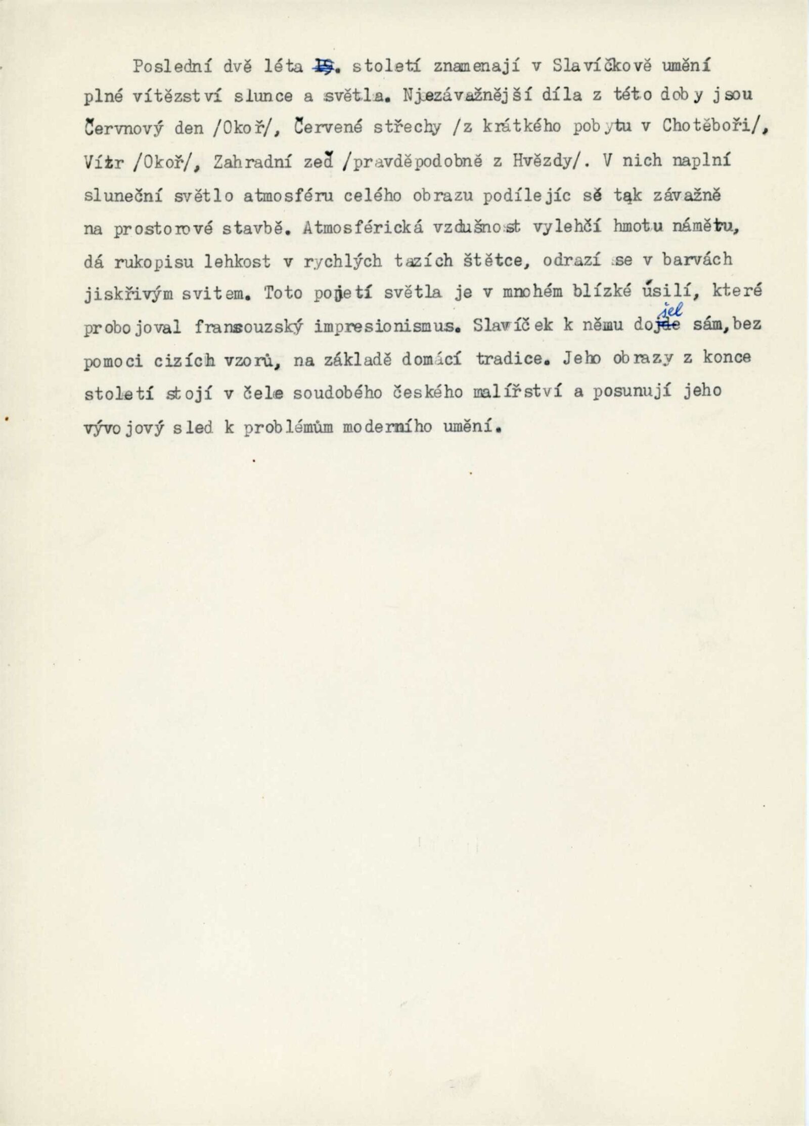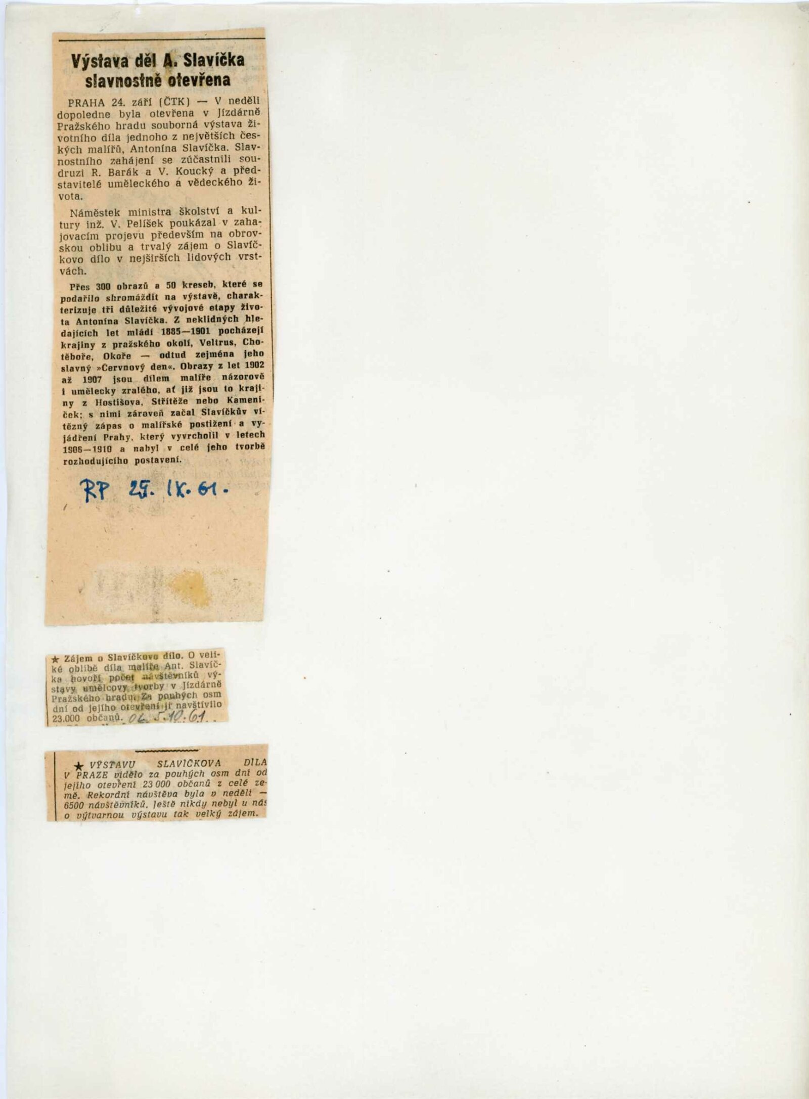 Antonín Slavíček 1870–1910: Dům umění města Brna, 21. 1. – 1. 4. 1962 / Text: Jiří Kotalík. – Praha: Národní galerie, 1962. – 31 s., 16 s. obr. příl., seznam exponátů 11 s., portrét, životopis, DU 410. – MZK; MG; MMB
