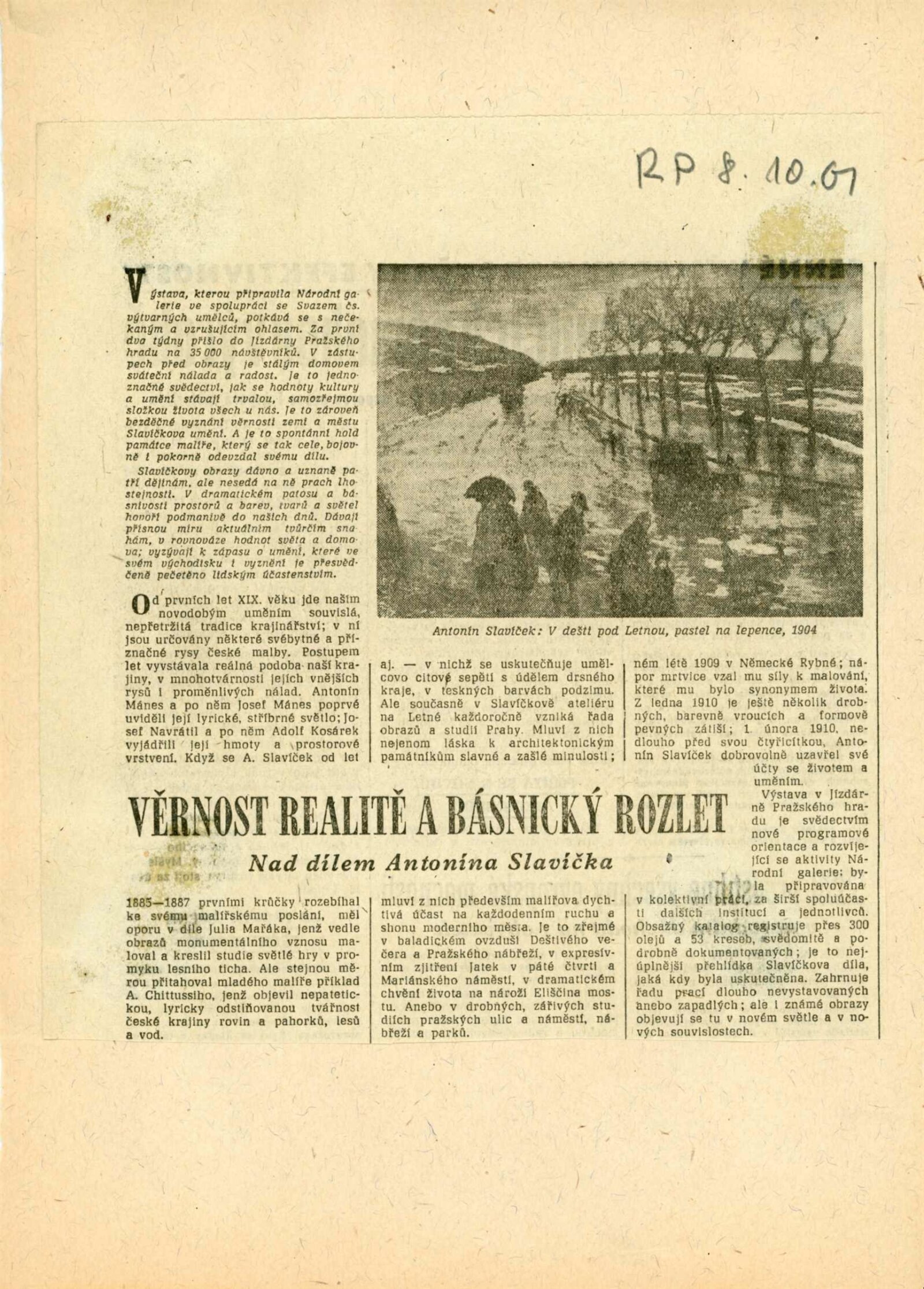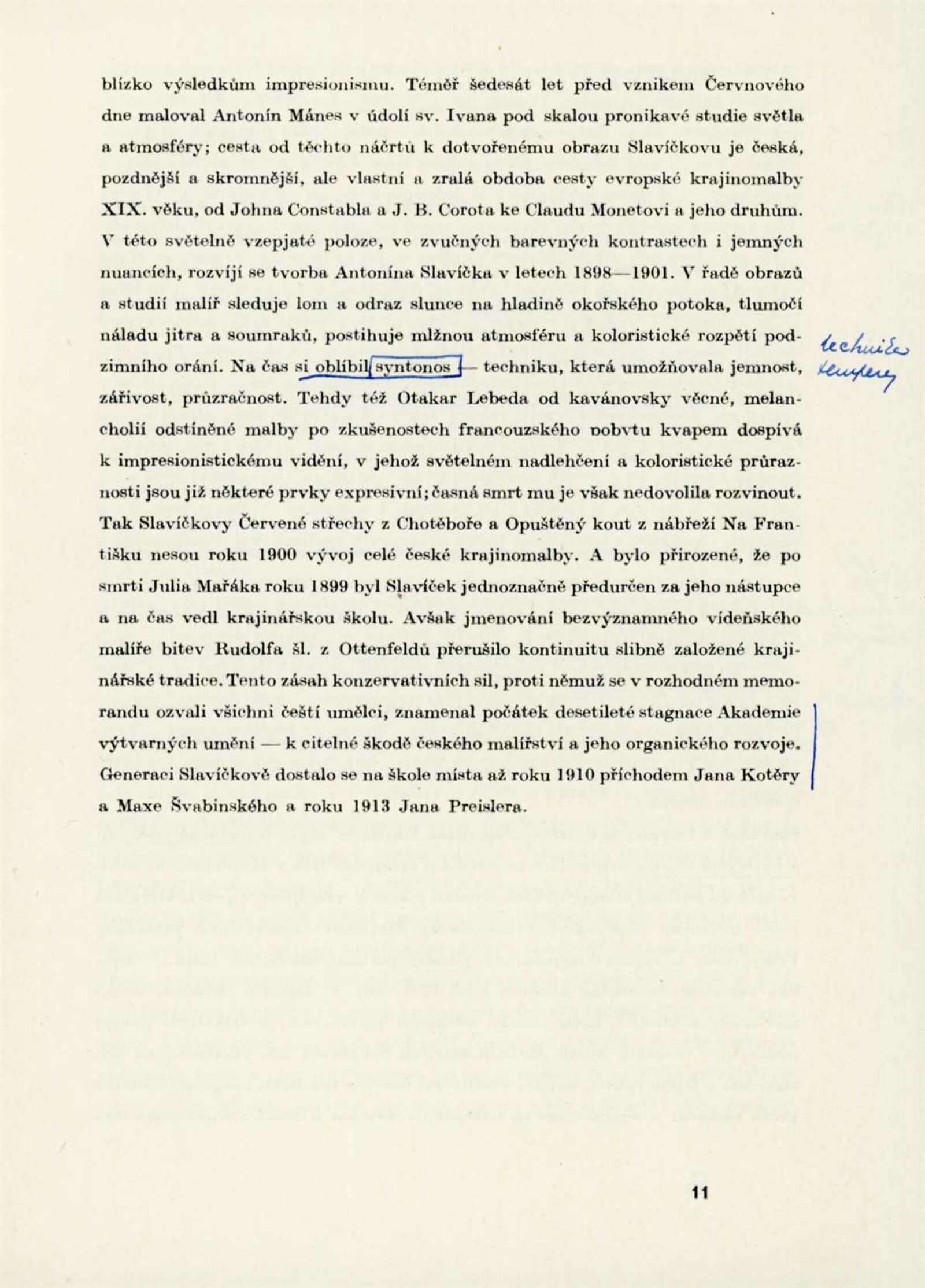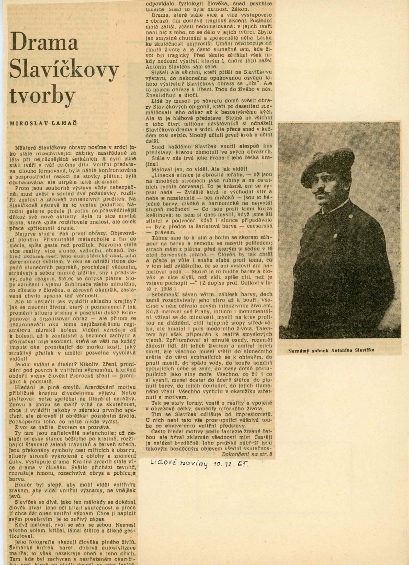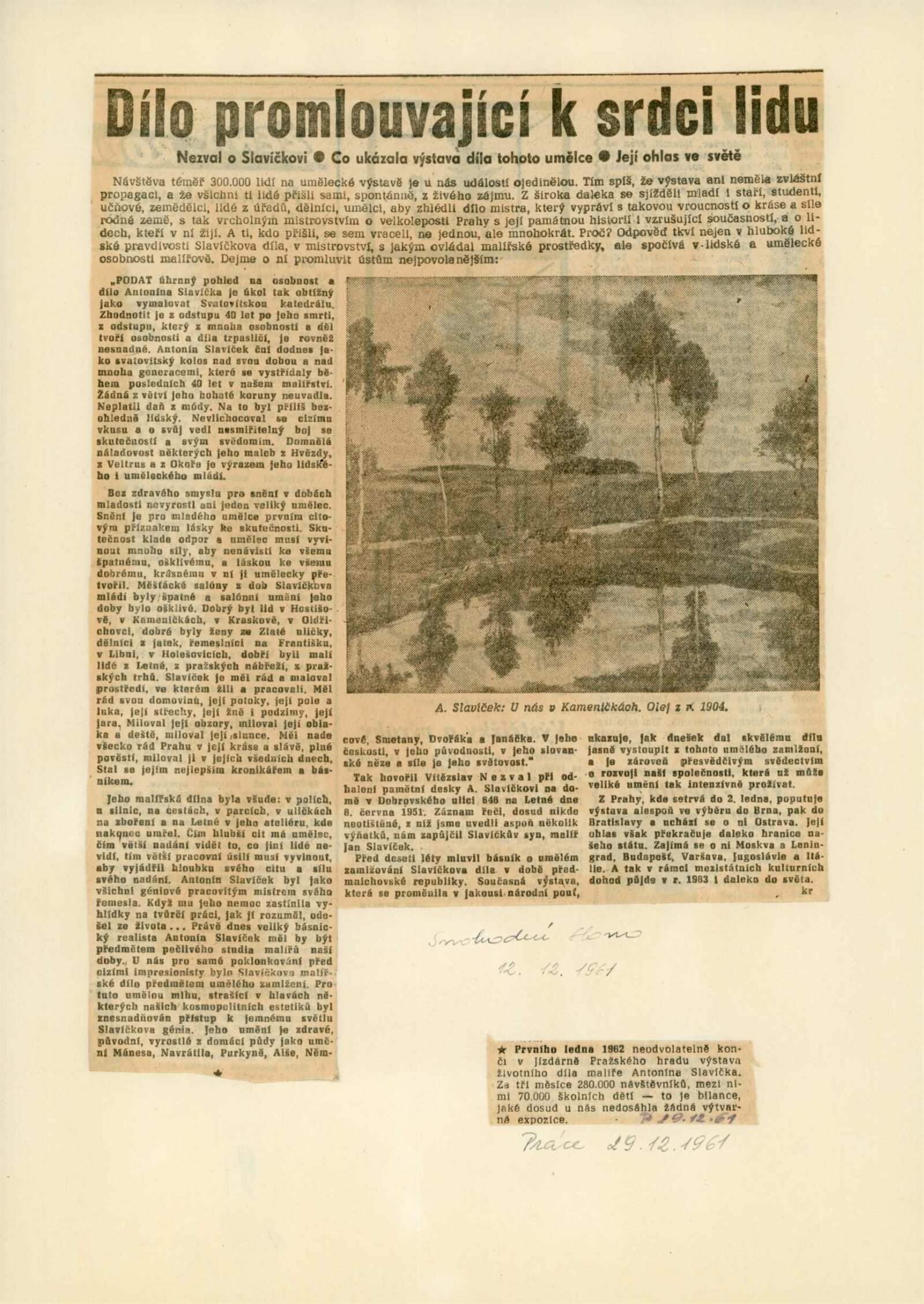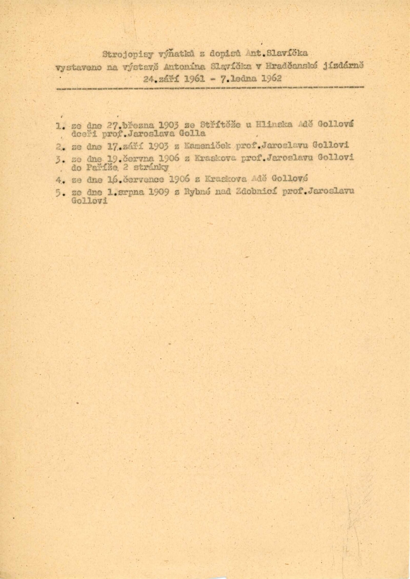 Antonín Slavíček 1870–1910: Dům umění města Brna, 21. 1. – 1. 4. 1962 / Text: Jiří Kotalík. – Praha: Národní galerie, 1962. – 31 s., 16 s. obr. příl., seznam exponátů 11 s., portrét, životopis, DU 410. – MZK; MG; MMB