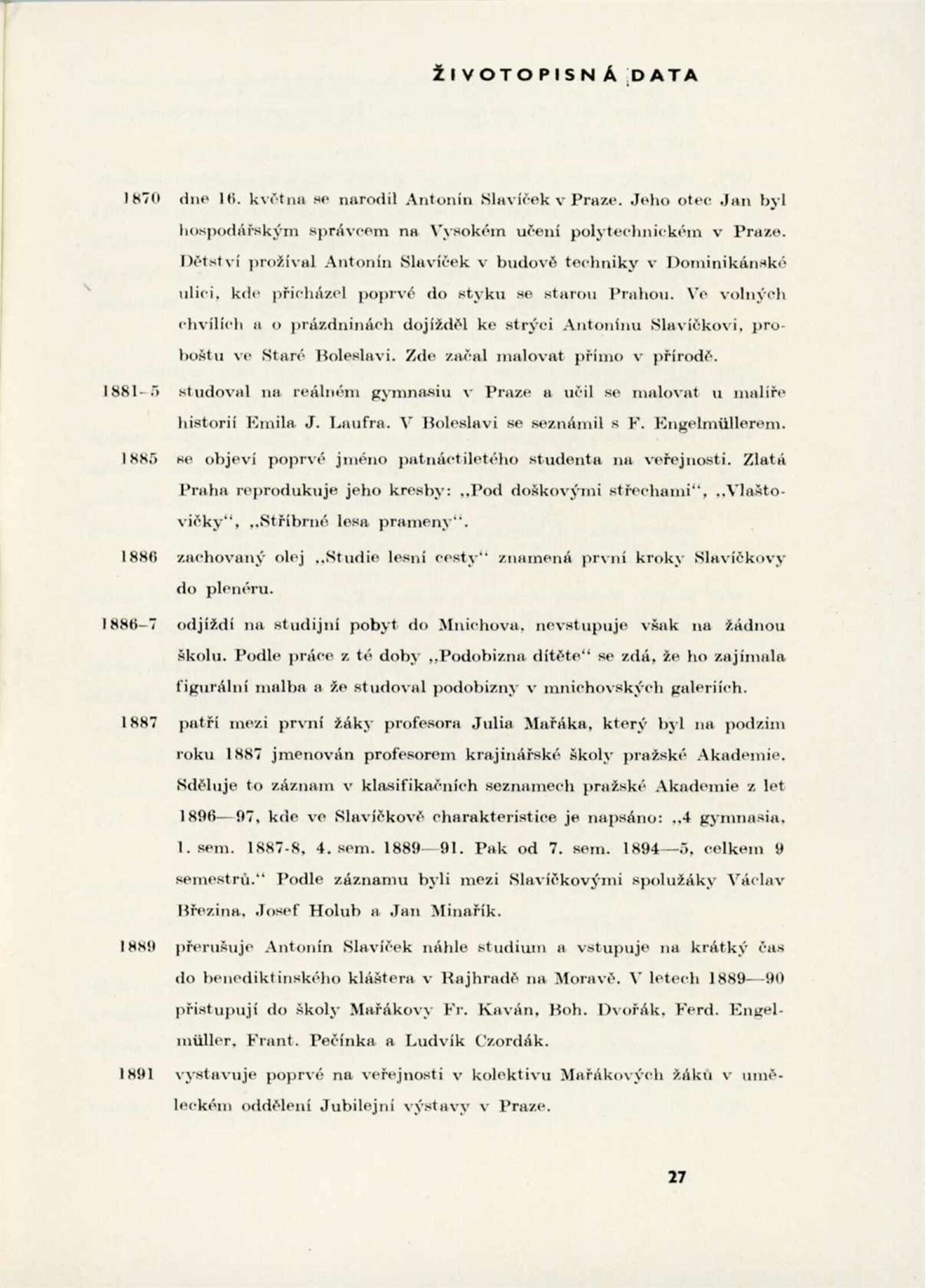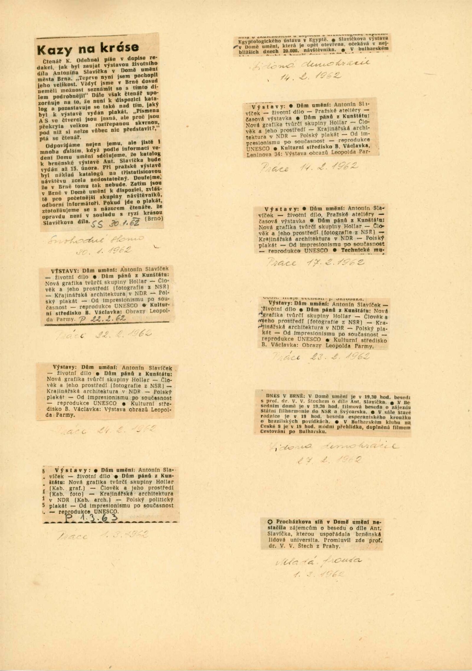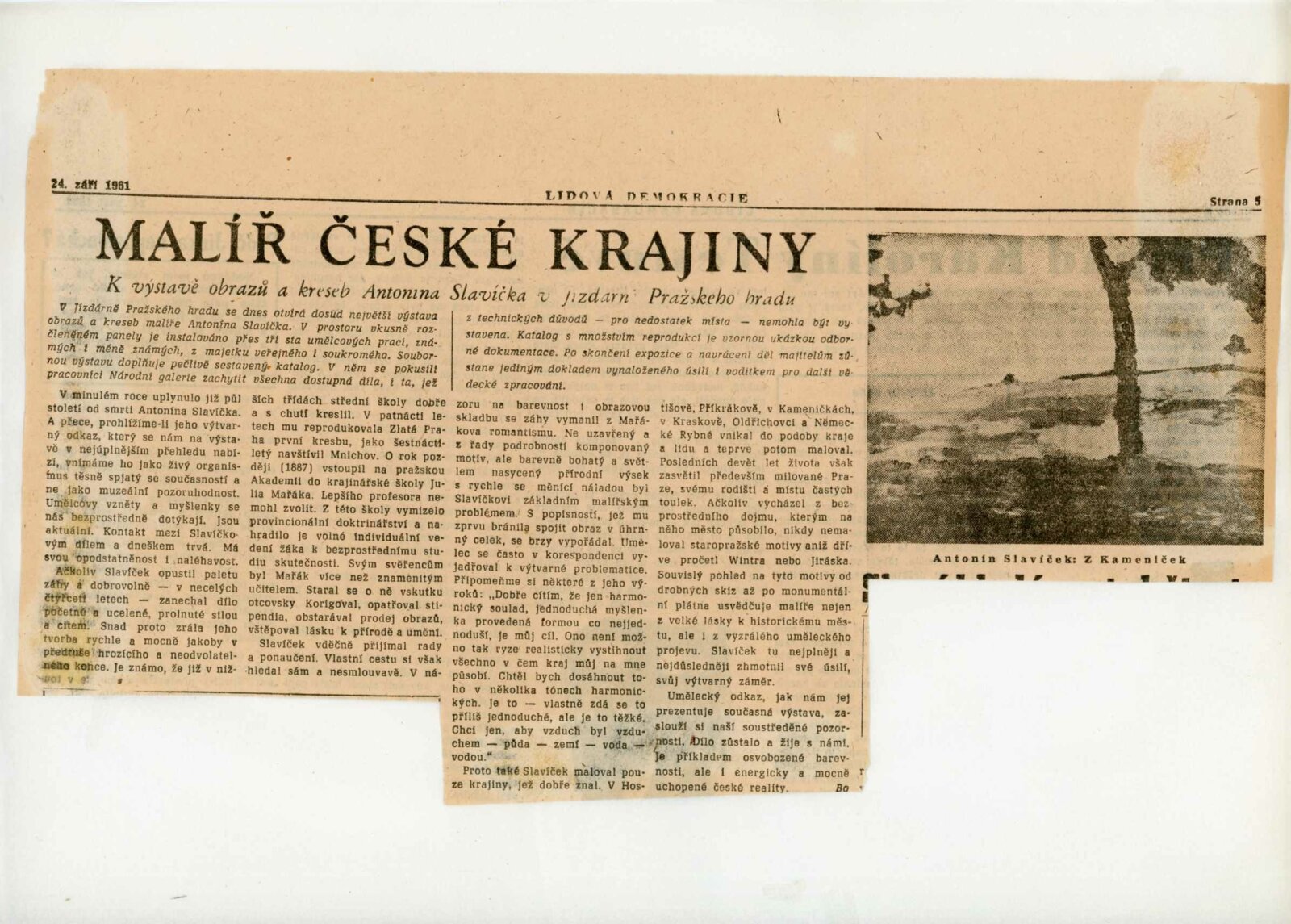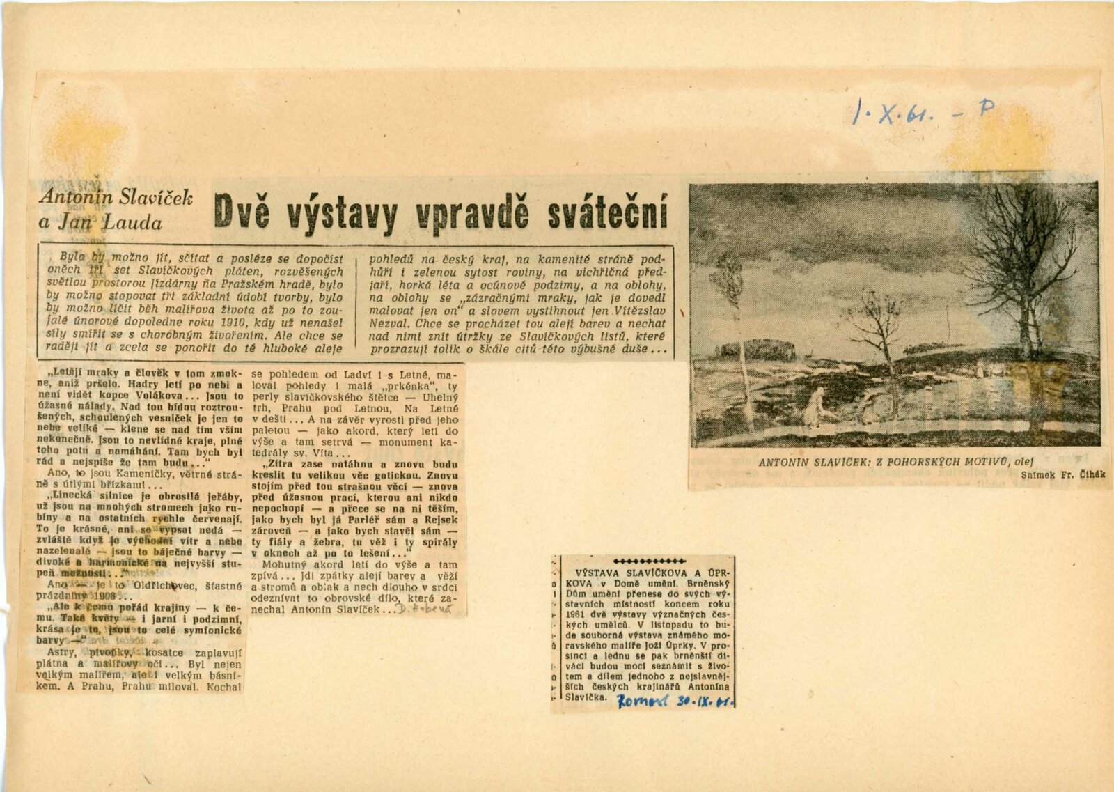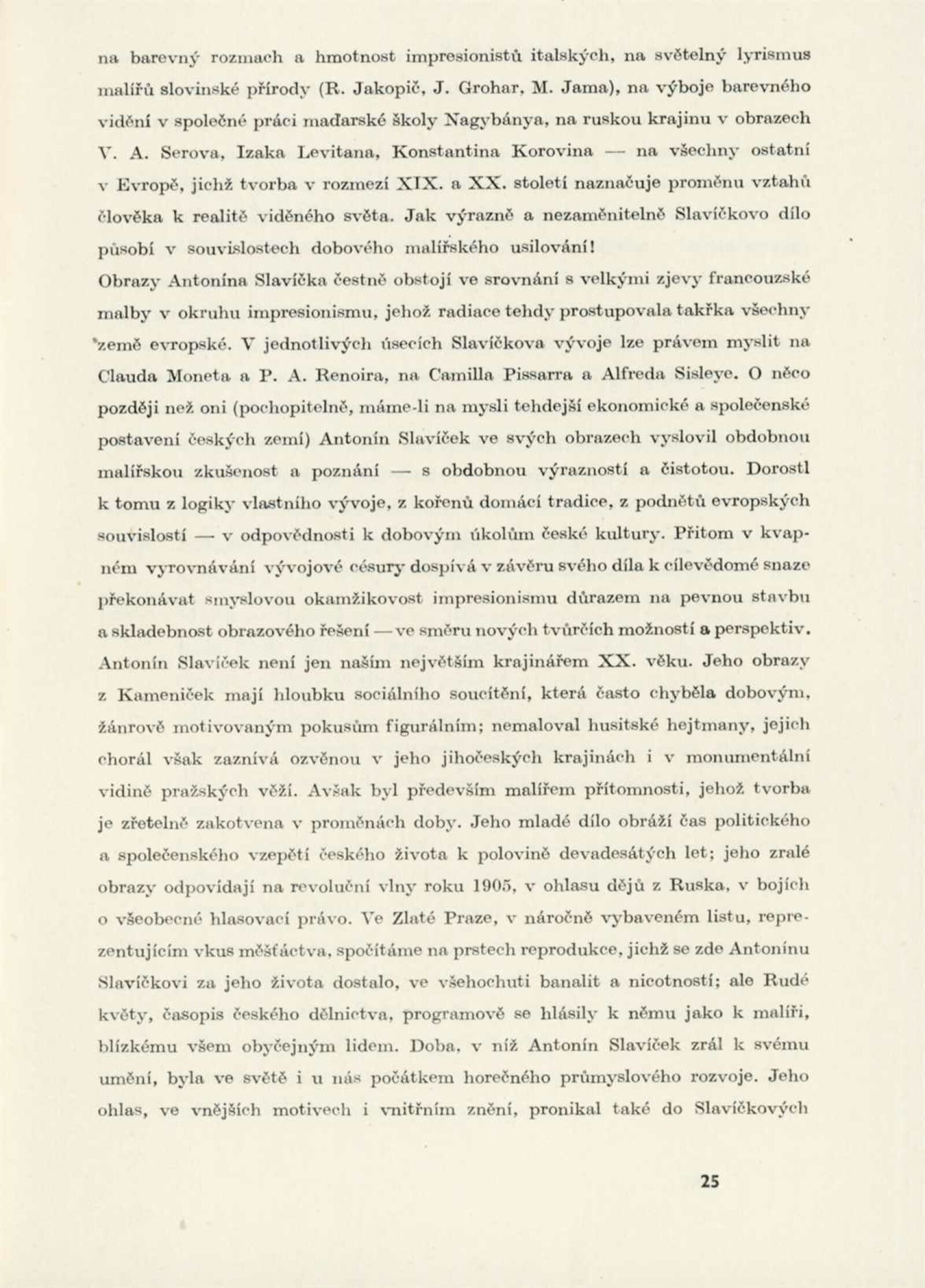 Antonín Slavíček 1870–1910: Dům umění města Brna, 21. 1. – 1. 4. 1962 / Text: Jiří Kotalík. – Praha: Národní galerie, 1962. – 31 s., 16 s. obr. příl., seznam exponátů 11 s., portrét, životopis, DU 410. – MZK; MG; MMB