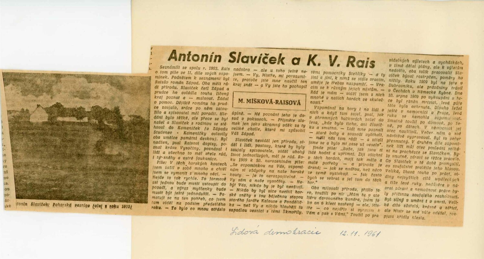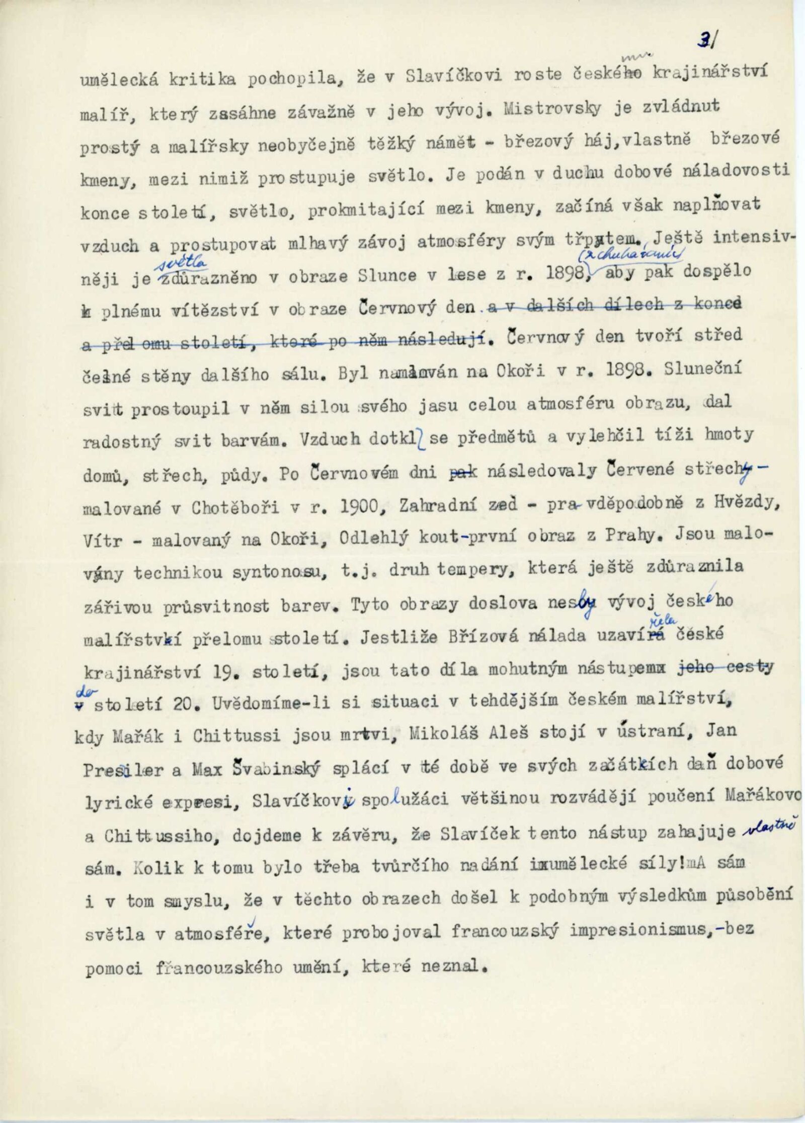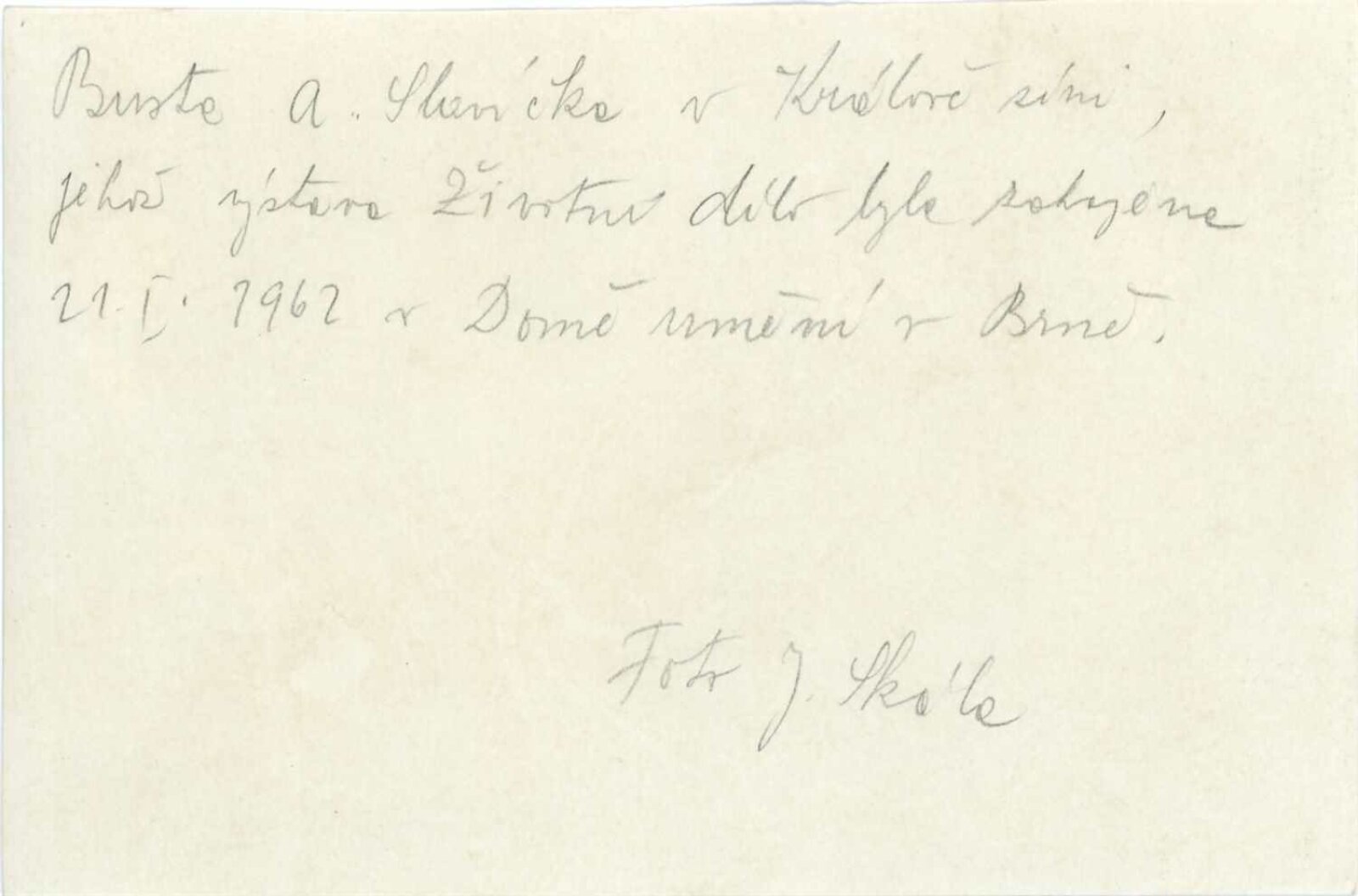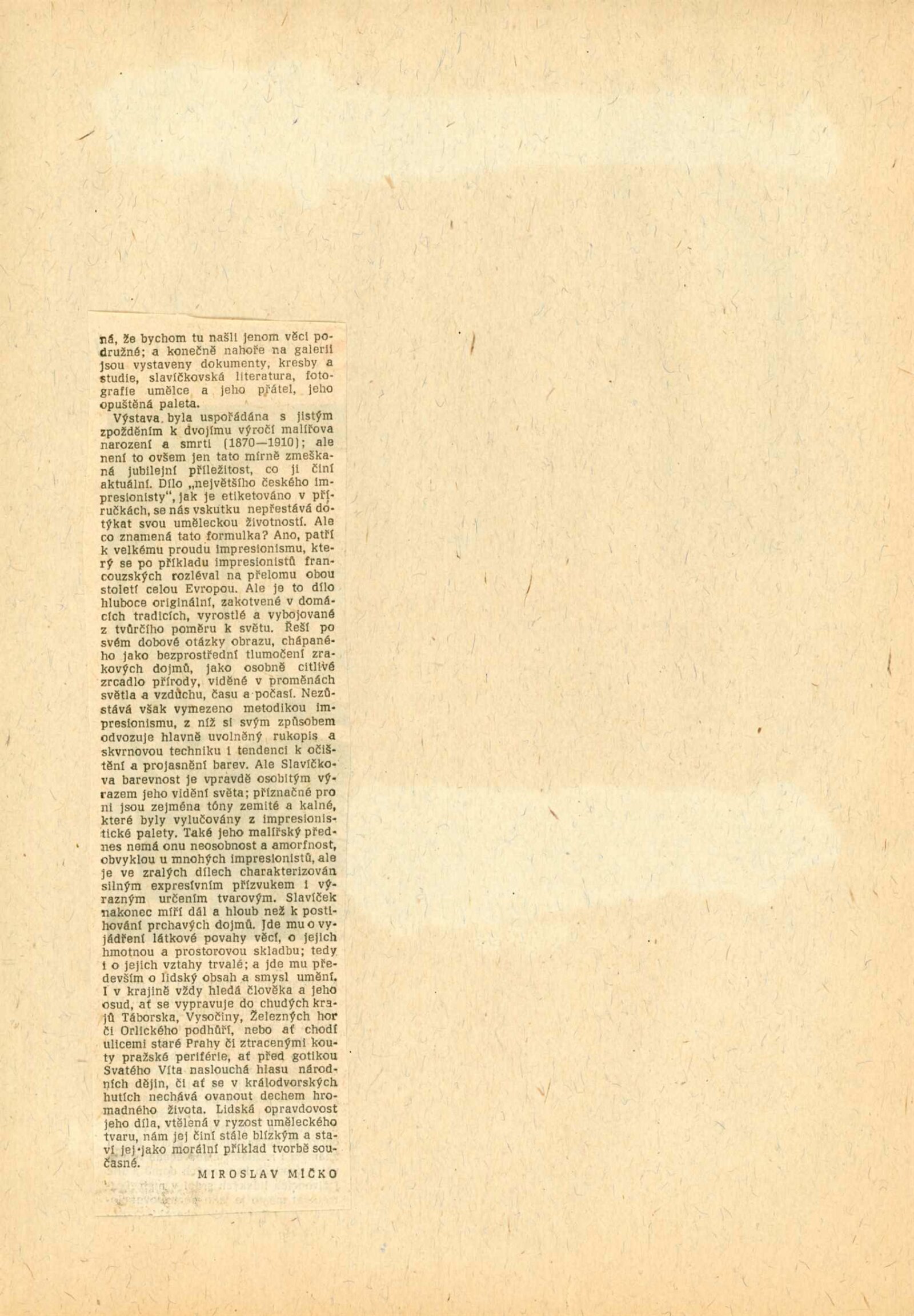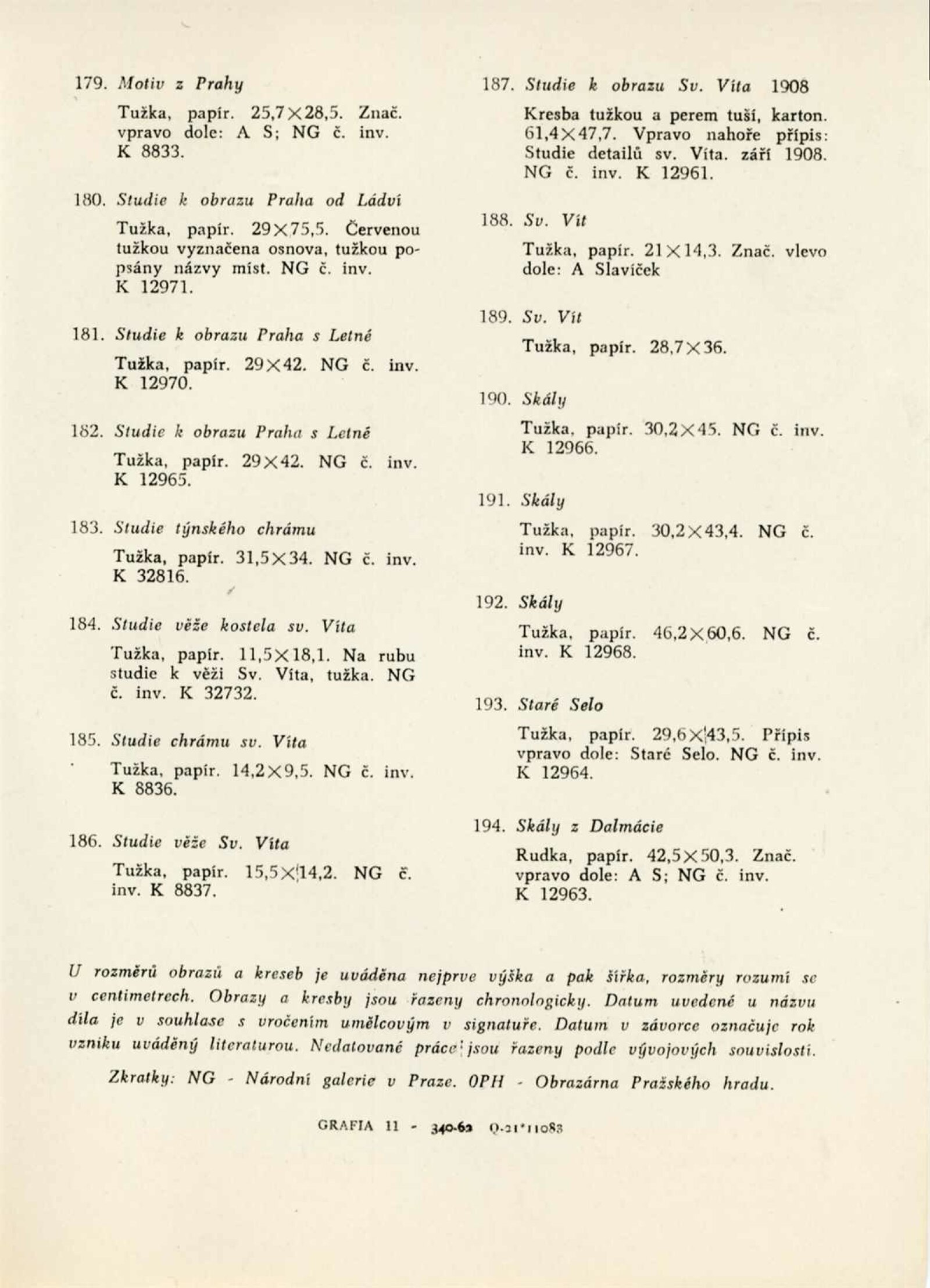 Antonín Slavíček 1870–1910: Dům umění města Brna, 21. 1. – 1. 4. 1962 / Text: Jiří Kotalík. – Praha: Národní galerie, 1962. – 31 s., 16 s. obr. příl., seznam exponátů 11 s., portrét, životopis, DU 410. – MZK; MG; MMB