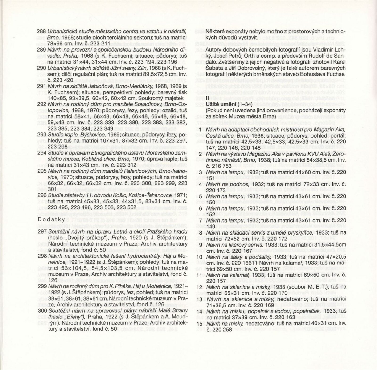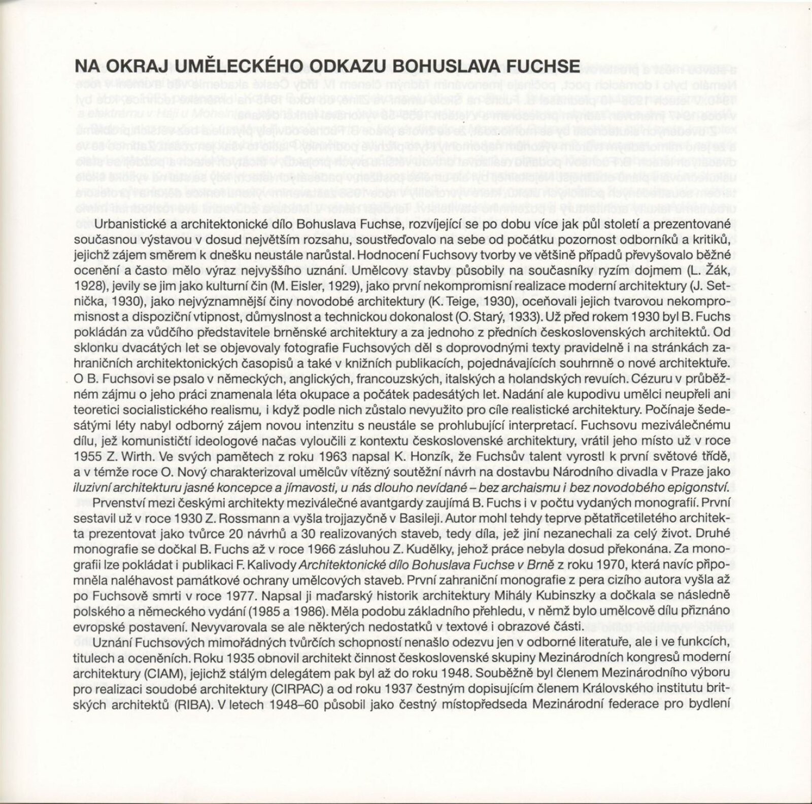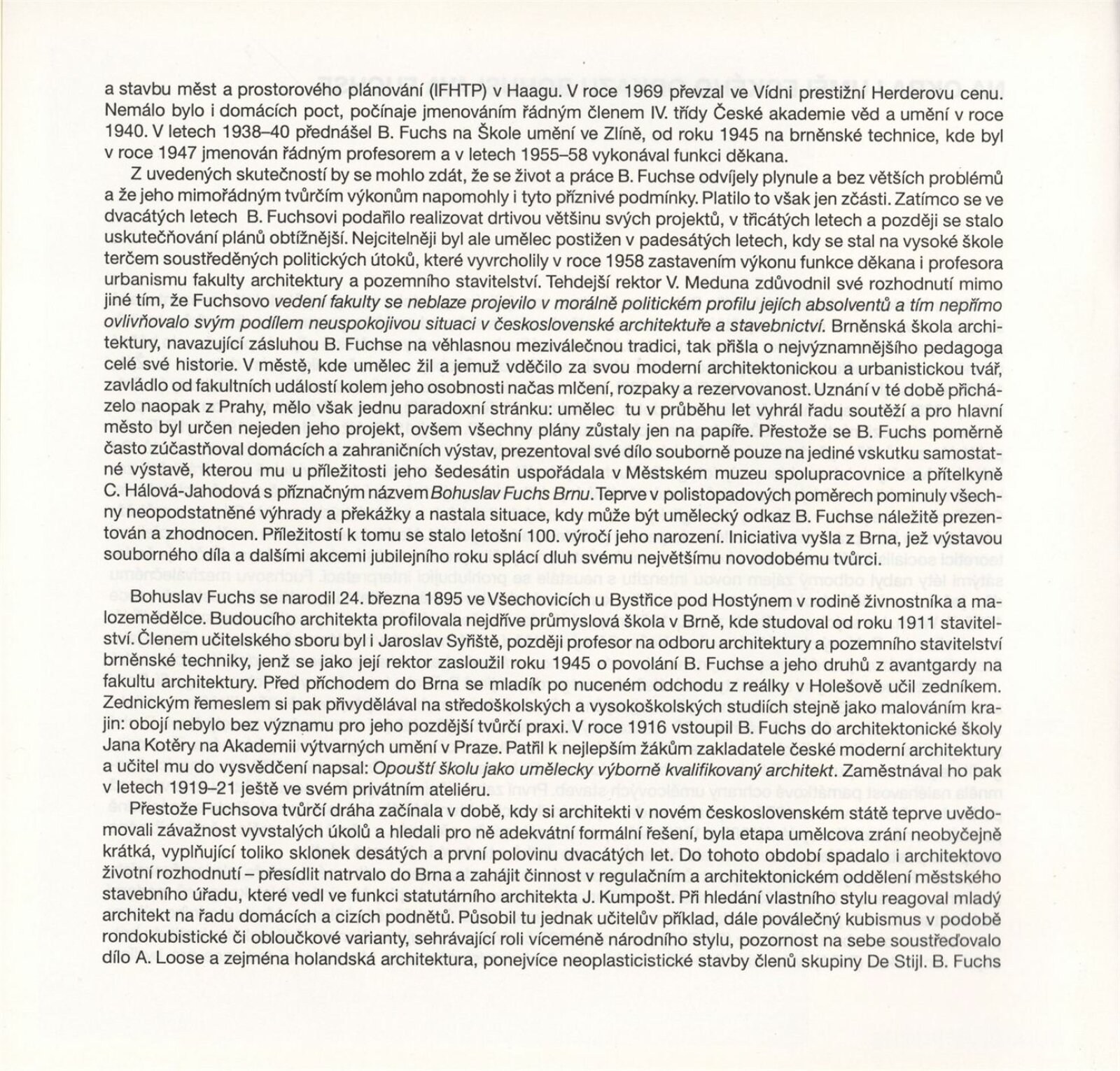 Architekt Bohuslav Fuchs. 1895–1972 / Dům umění města Brna 4. 9. – 8. 10. 1995 / Text Jan Sedlák. - Brno: odbor kultury magistrátu města Brna, - [60] s., obr. DU 1002