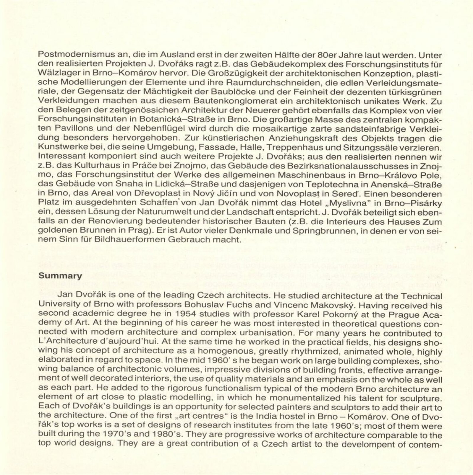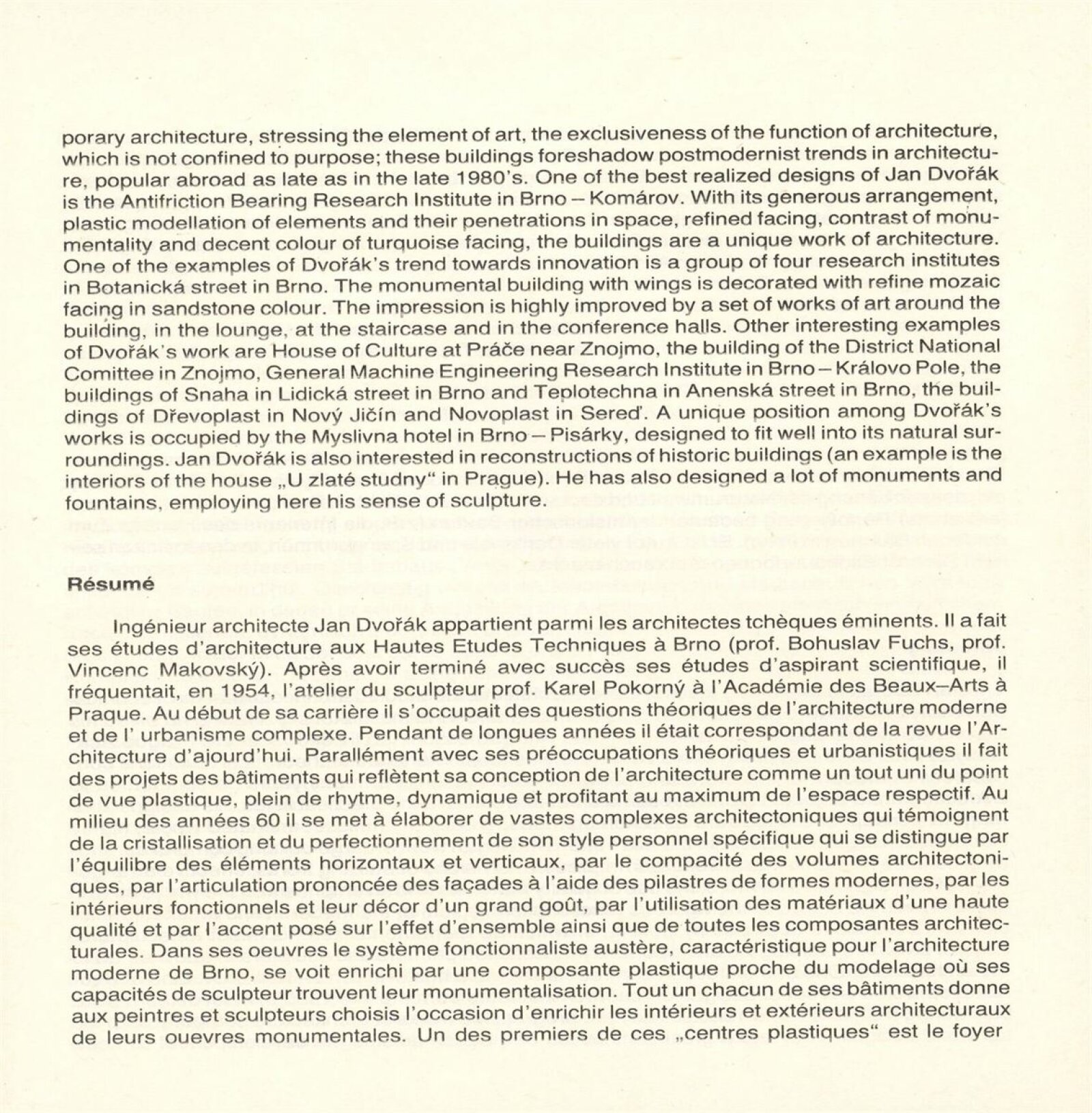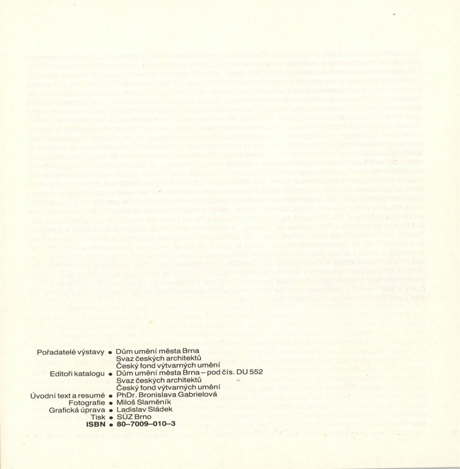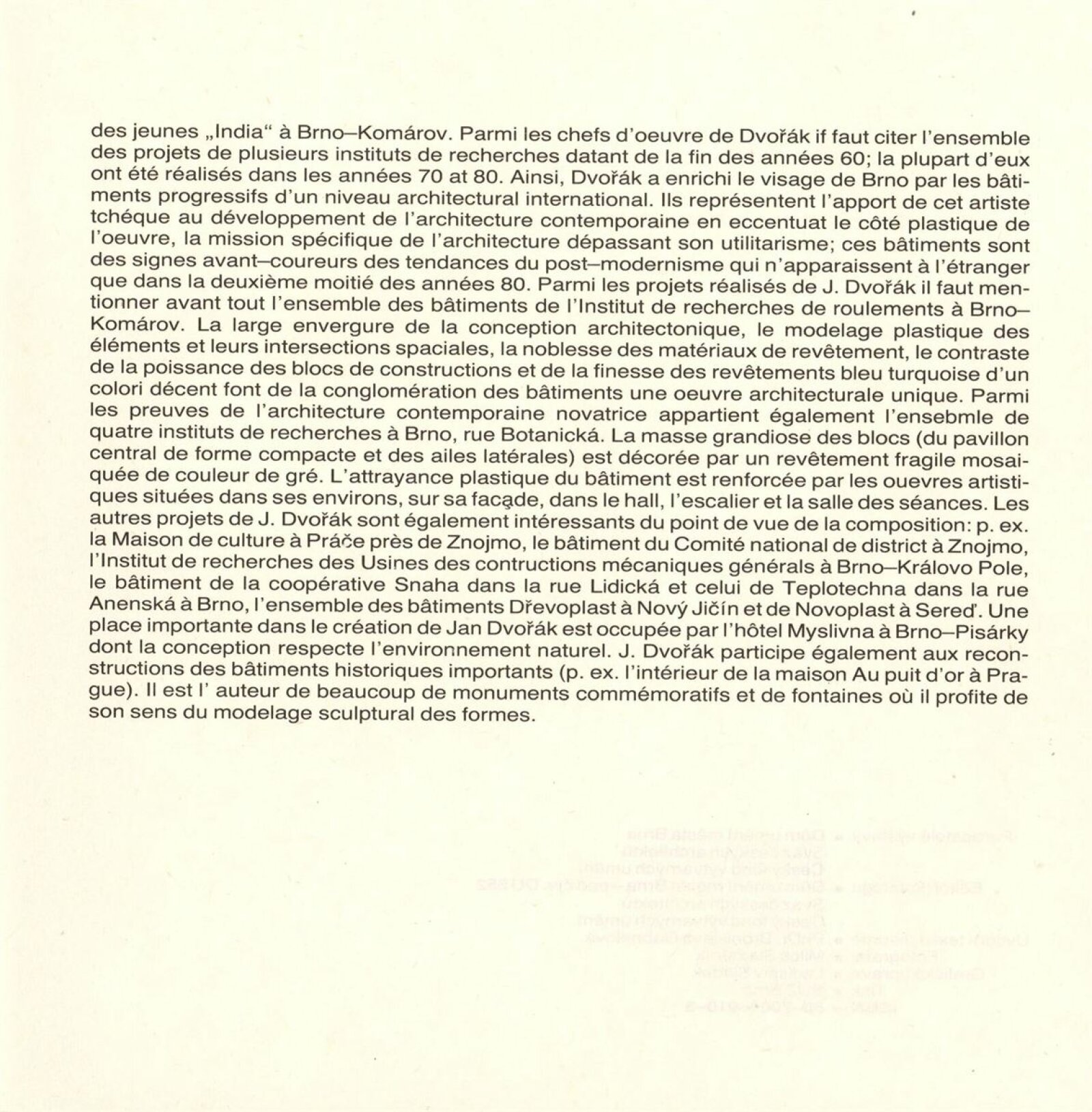 Architekt Jan Dvořák: Dům umění města Brna, hala, 5. 12. 1989 – 7. 1. 1990 / Text: Bronislava Gabrielová. – Brno: DUmB, 1989. – [34] s., obr., životopis, soupis prací, DU 876. – MZK; MG