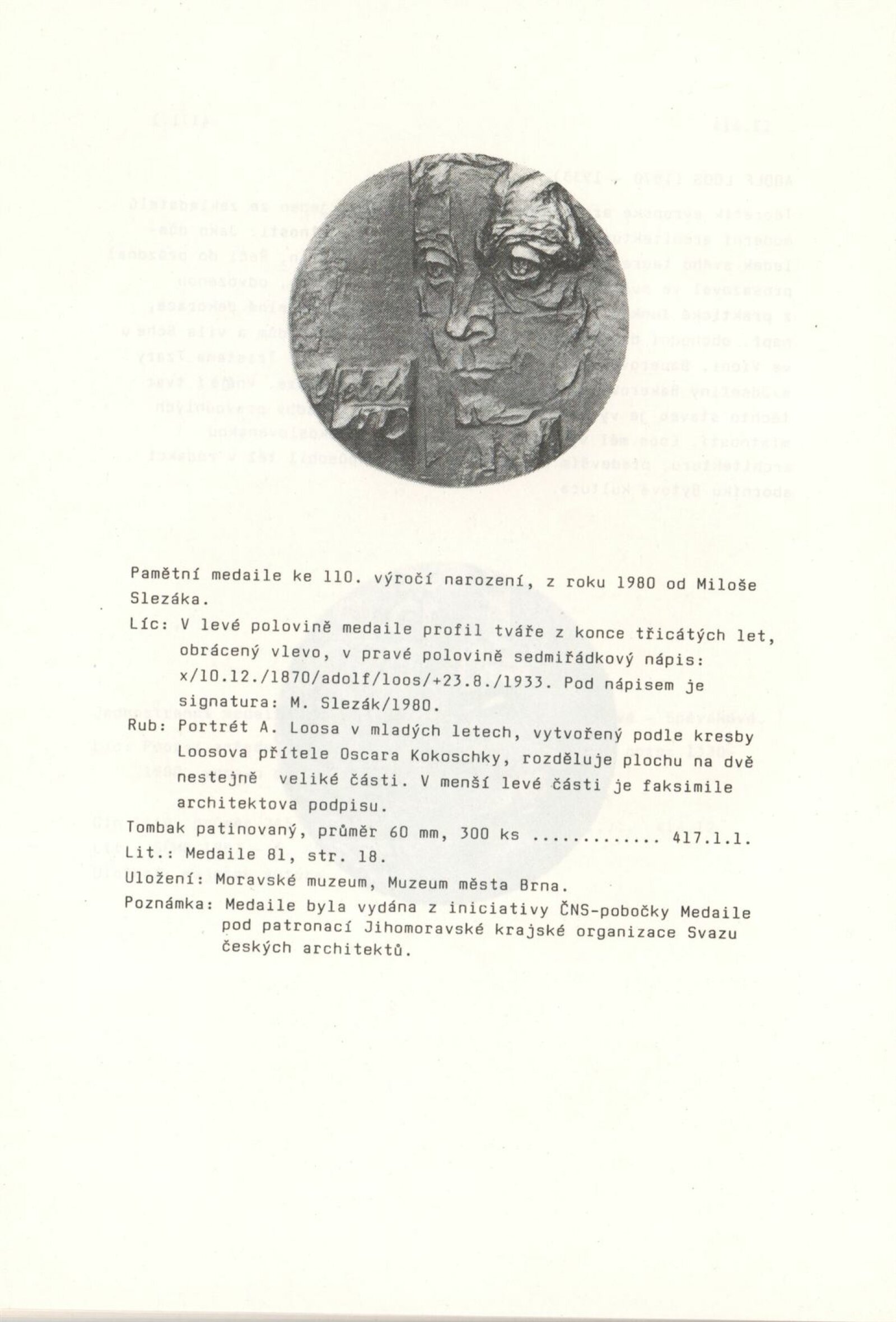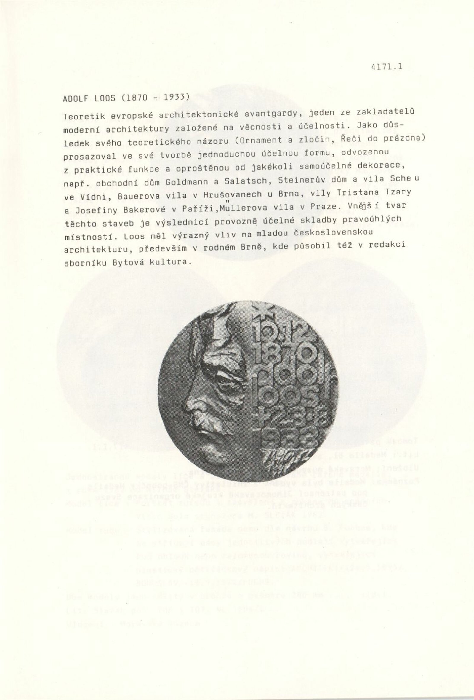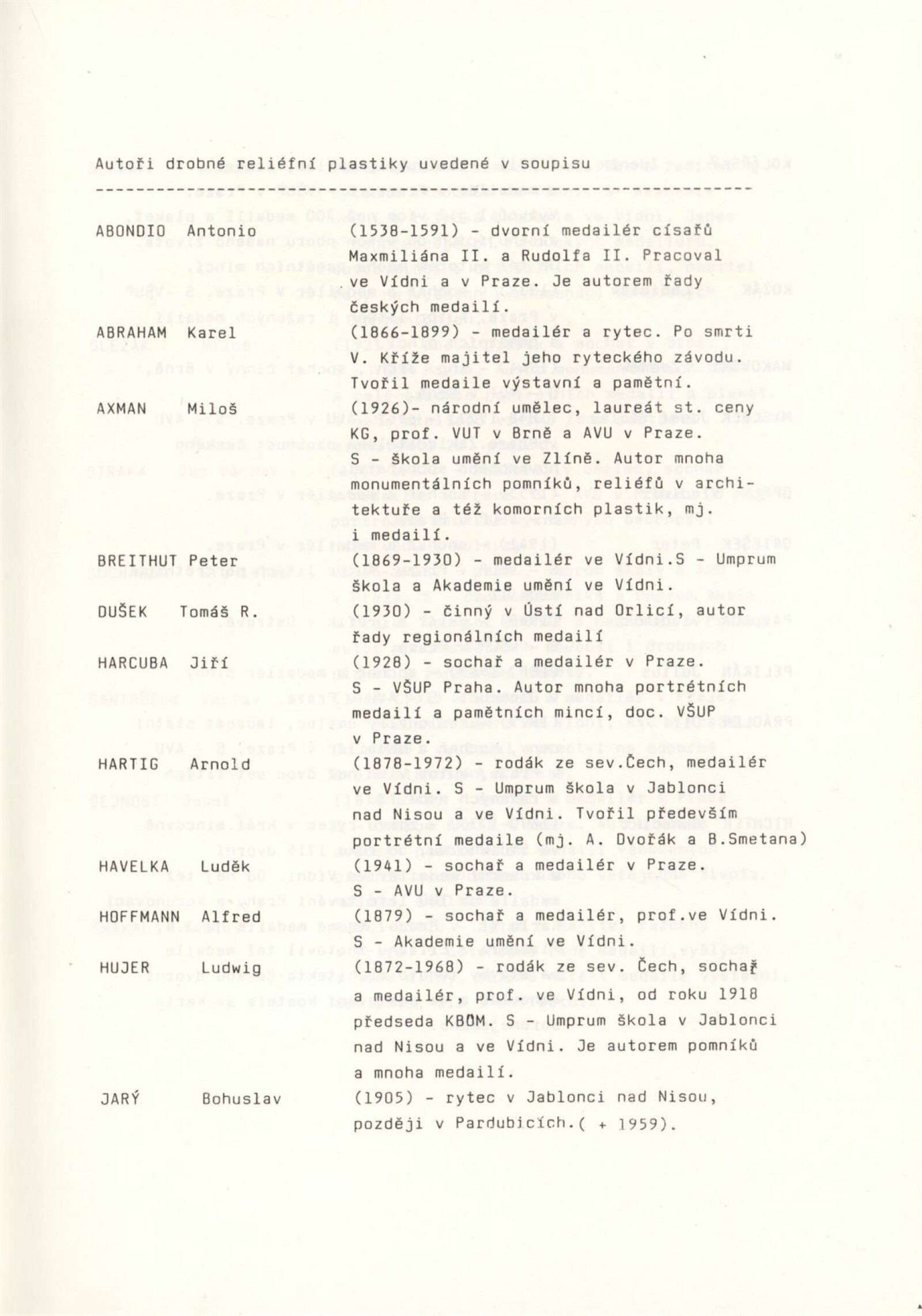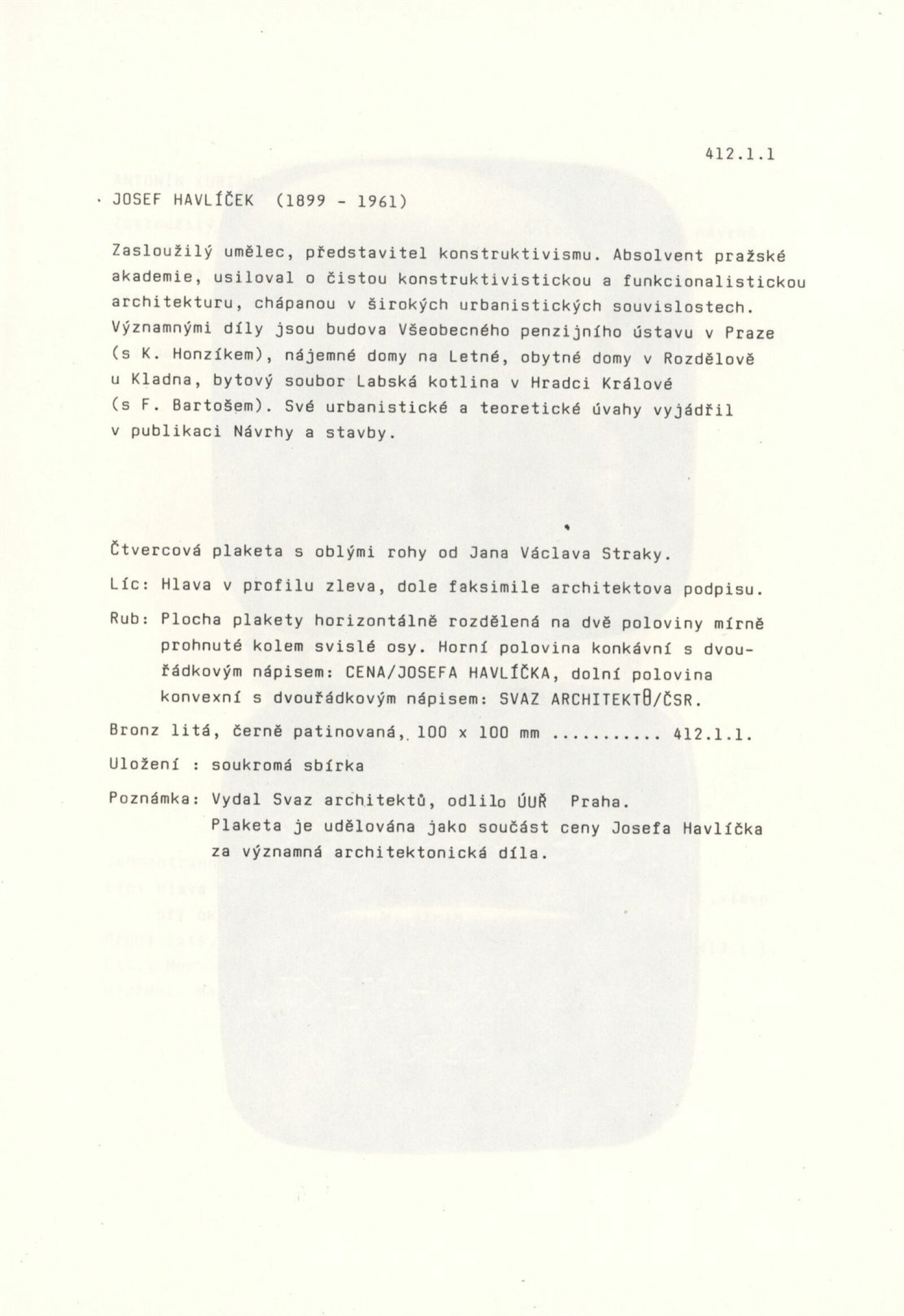 Architekti v drobné reliéfní plastice: Galerie Stará radnice, Kabinet architektury, 25. 11. 1987 – 17. 1. 1988 / Text: Petr Haimann. – Brno: ČFVU, 1987. – [80] s., obr., soupis, bibliografie, GSR 12. – MG