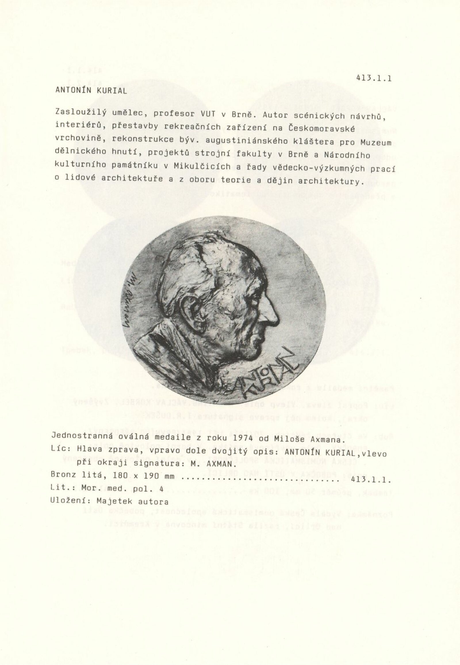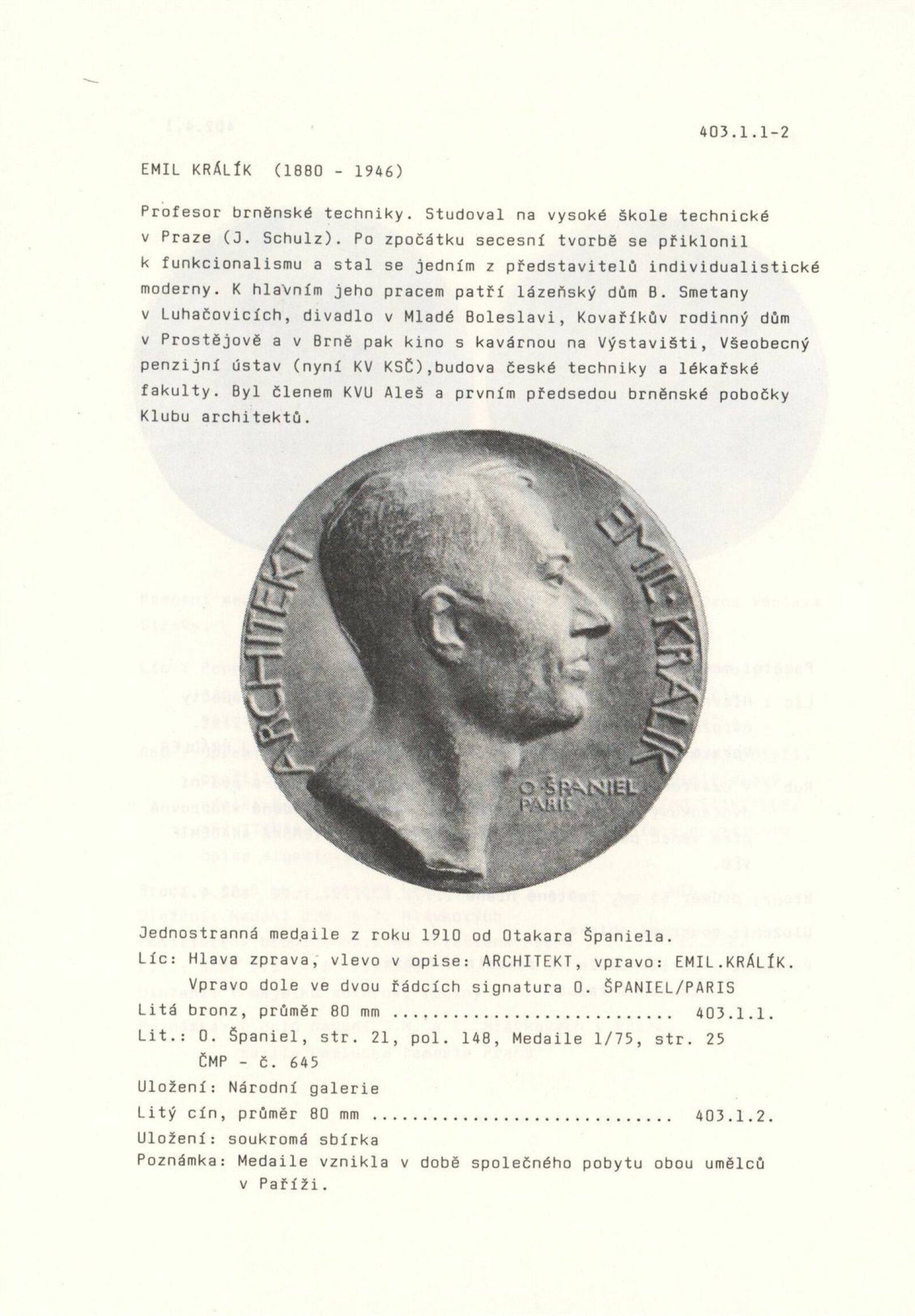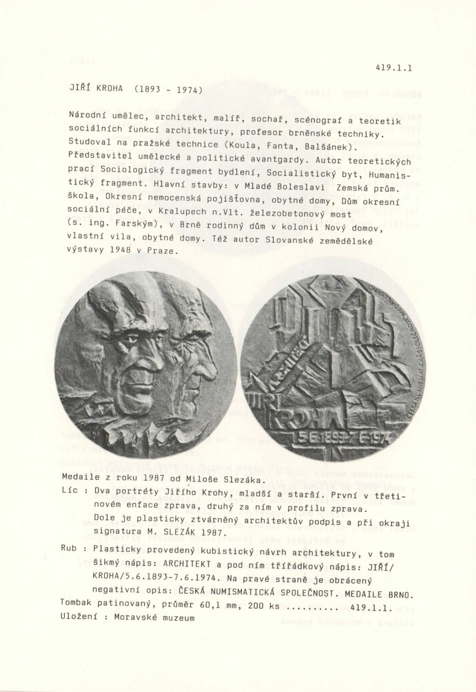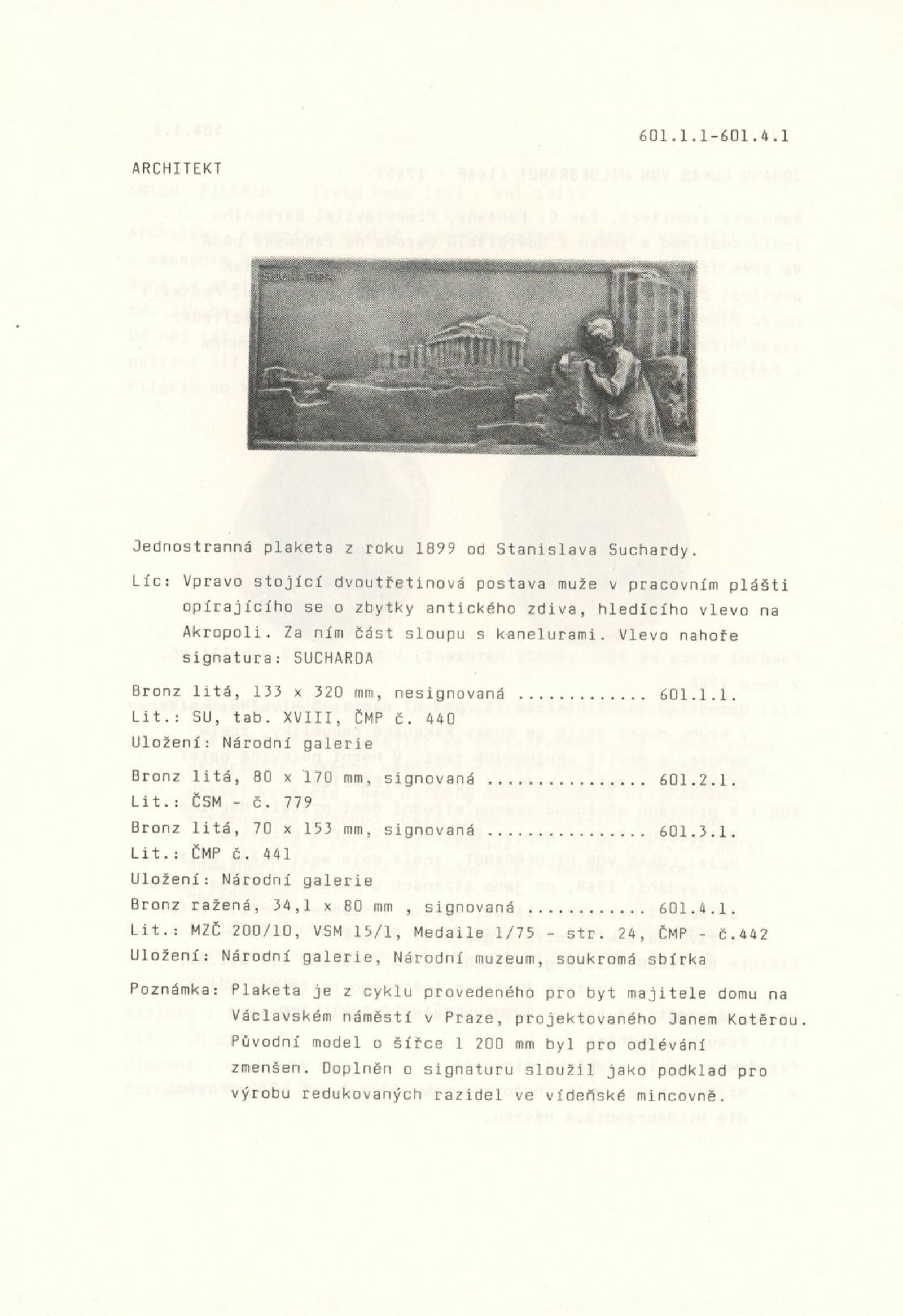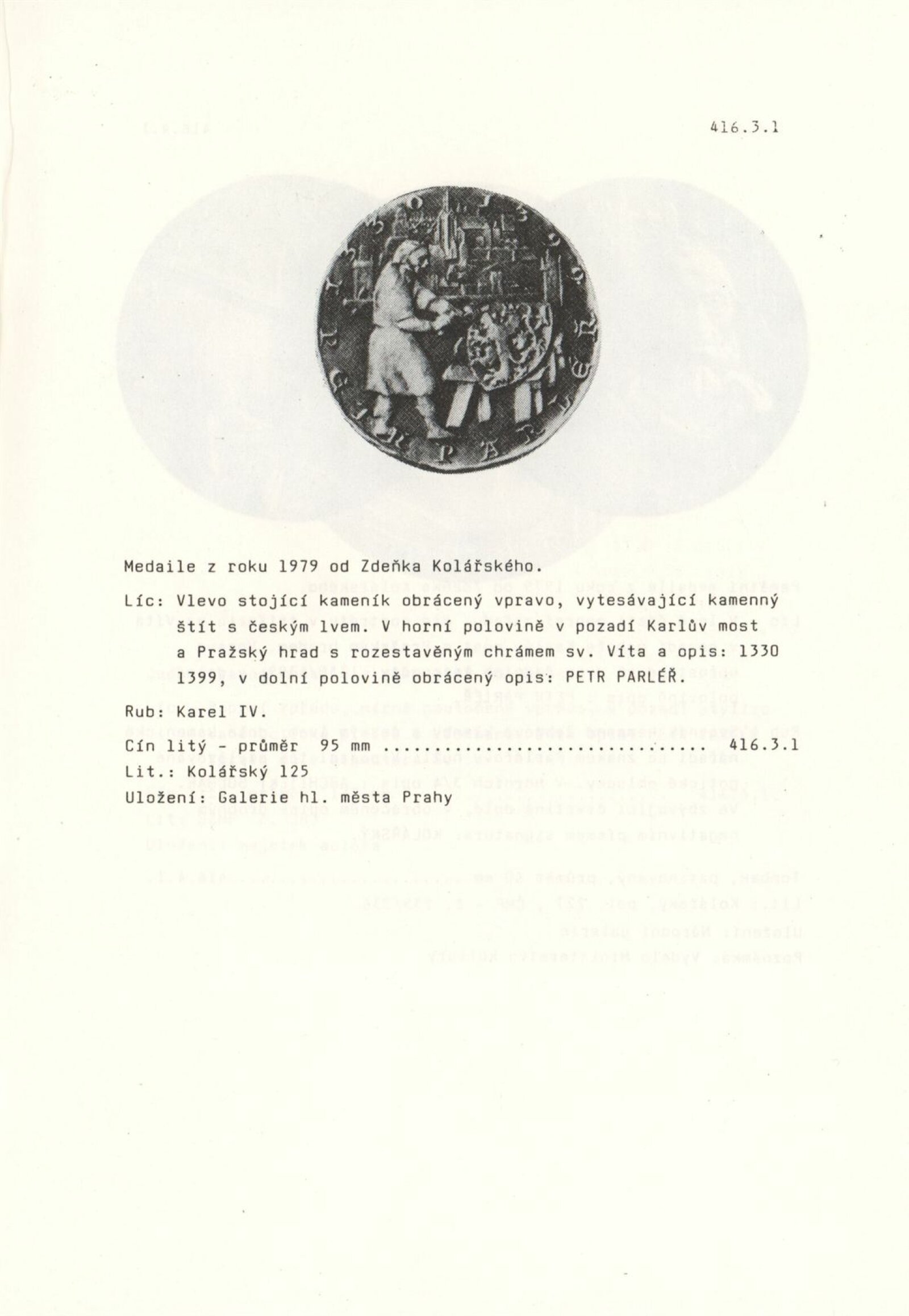 Architekti v drobné reliéfní plastice: Galerie Stará radnice, Kabinet architektury, 25. 11. 1987 – 17. 1. 1988 / Text: Petr Haimann. – Brno: ČFVU, 1987. – [80] s., obr., soupis, bibliografie, GSR 12. – MG