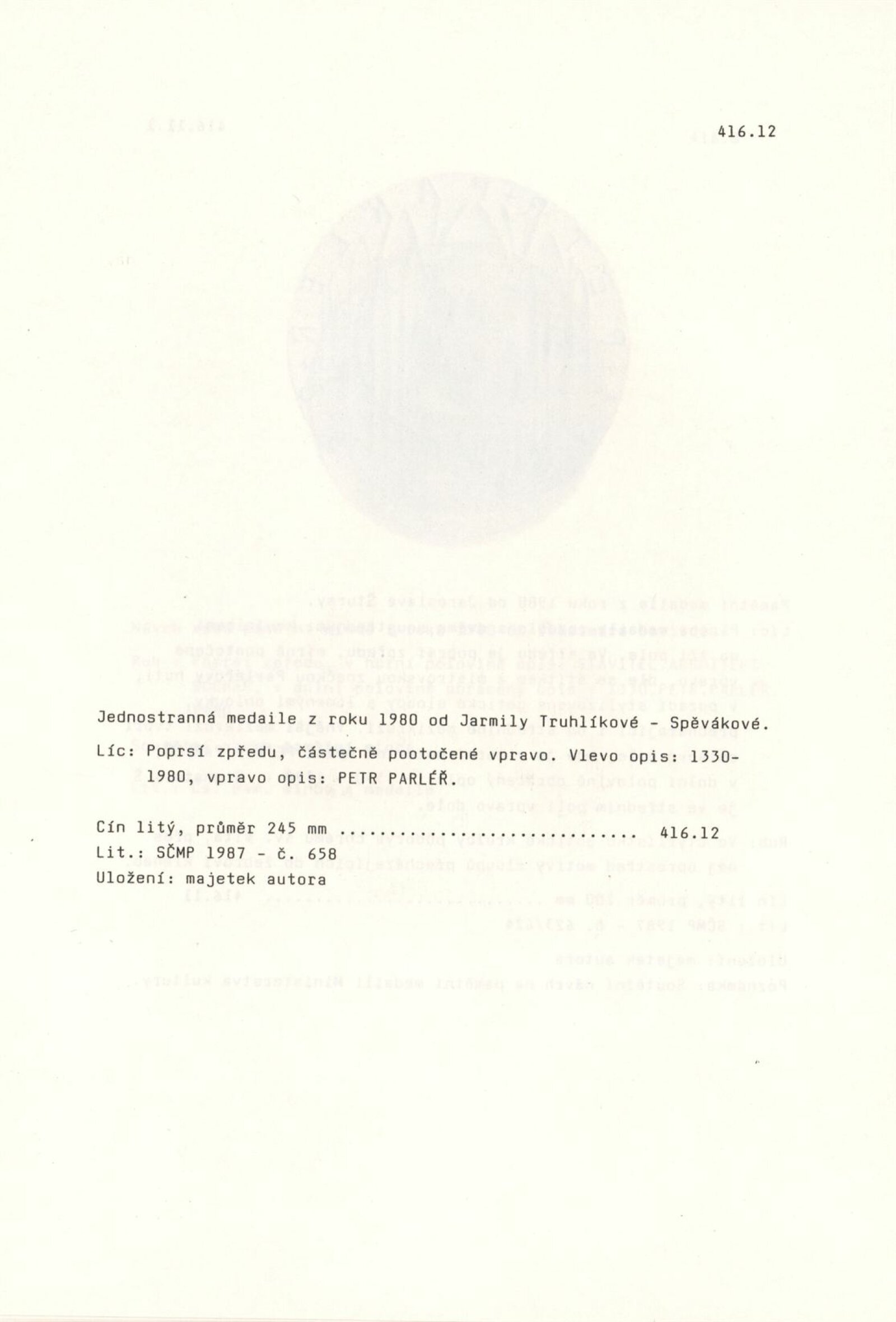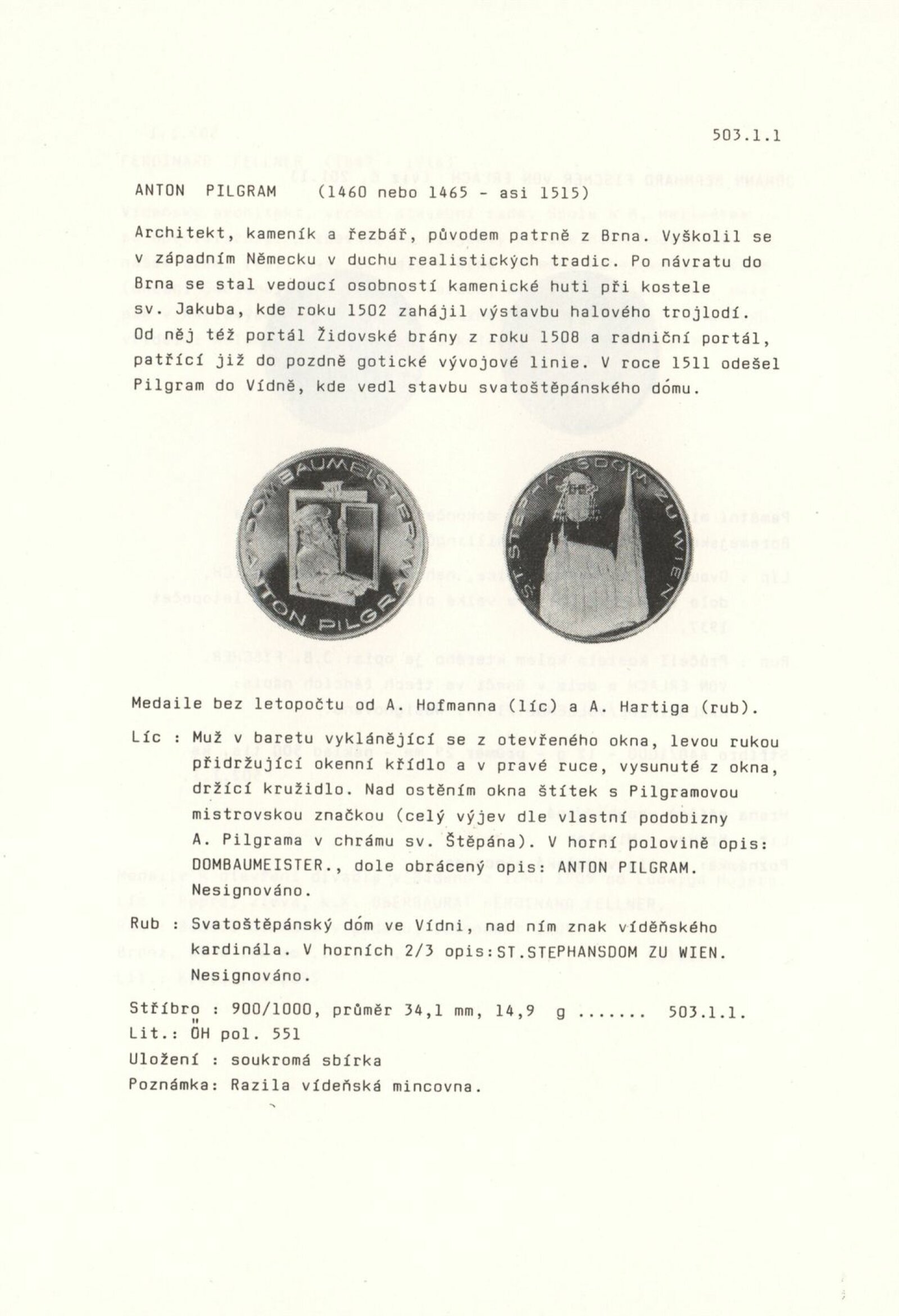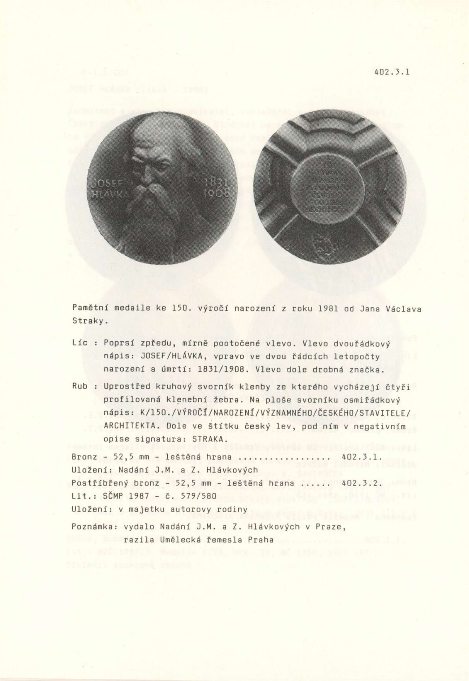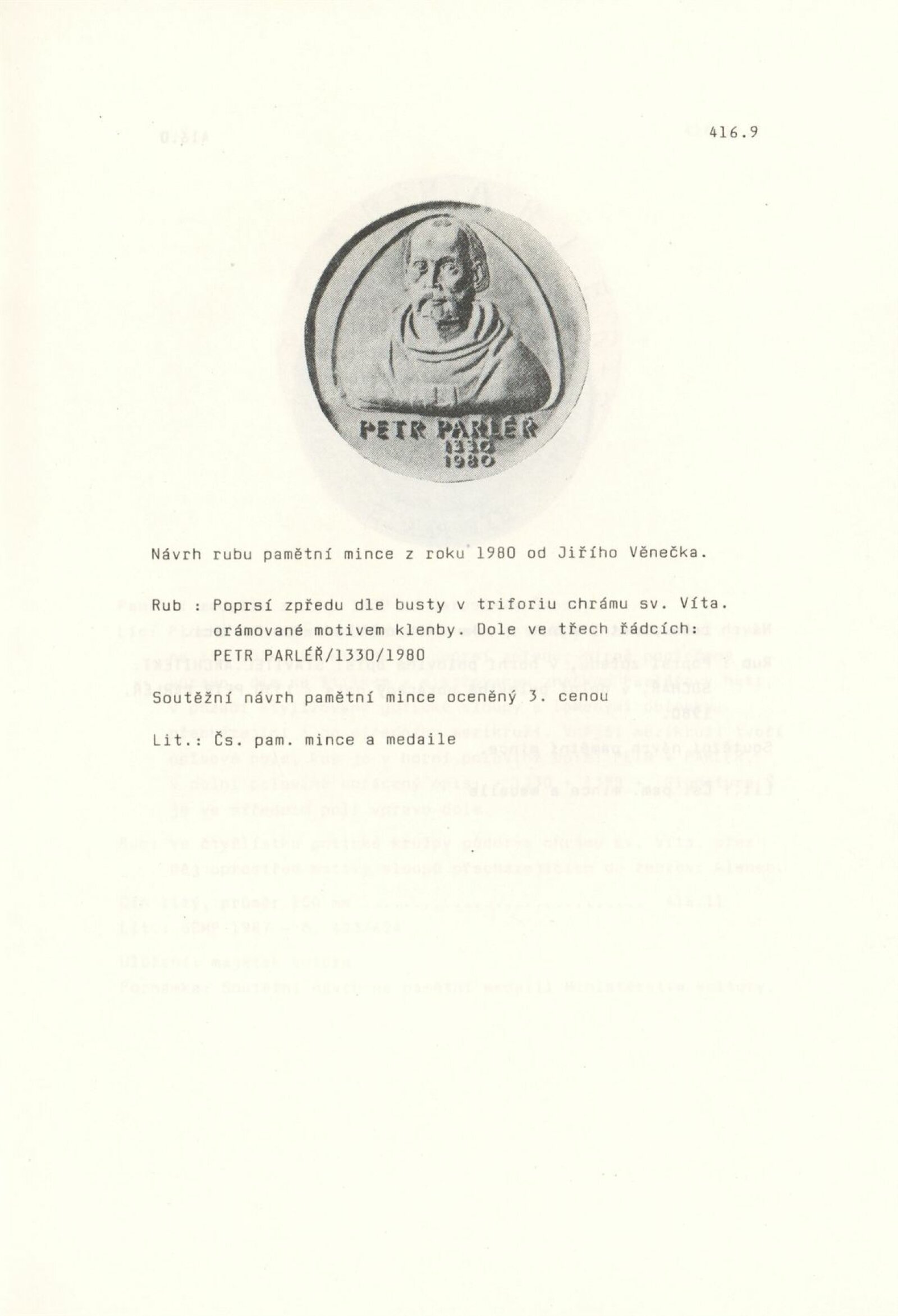 Architekti v drobné reliéfní plastice: Galerie Stará radnice, Kabinet architektury, 25. 11. 1987 – 17. 1. 1988 / Text: Petr Haimann. – Brno: ČFVU, 1987. – [80] s., obr., soupis, bibliografie, GSR 12. – MG