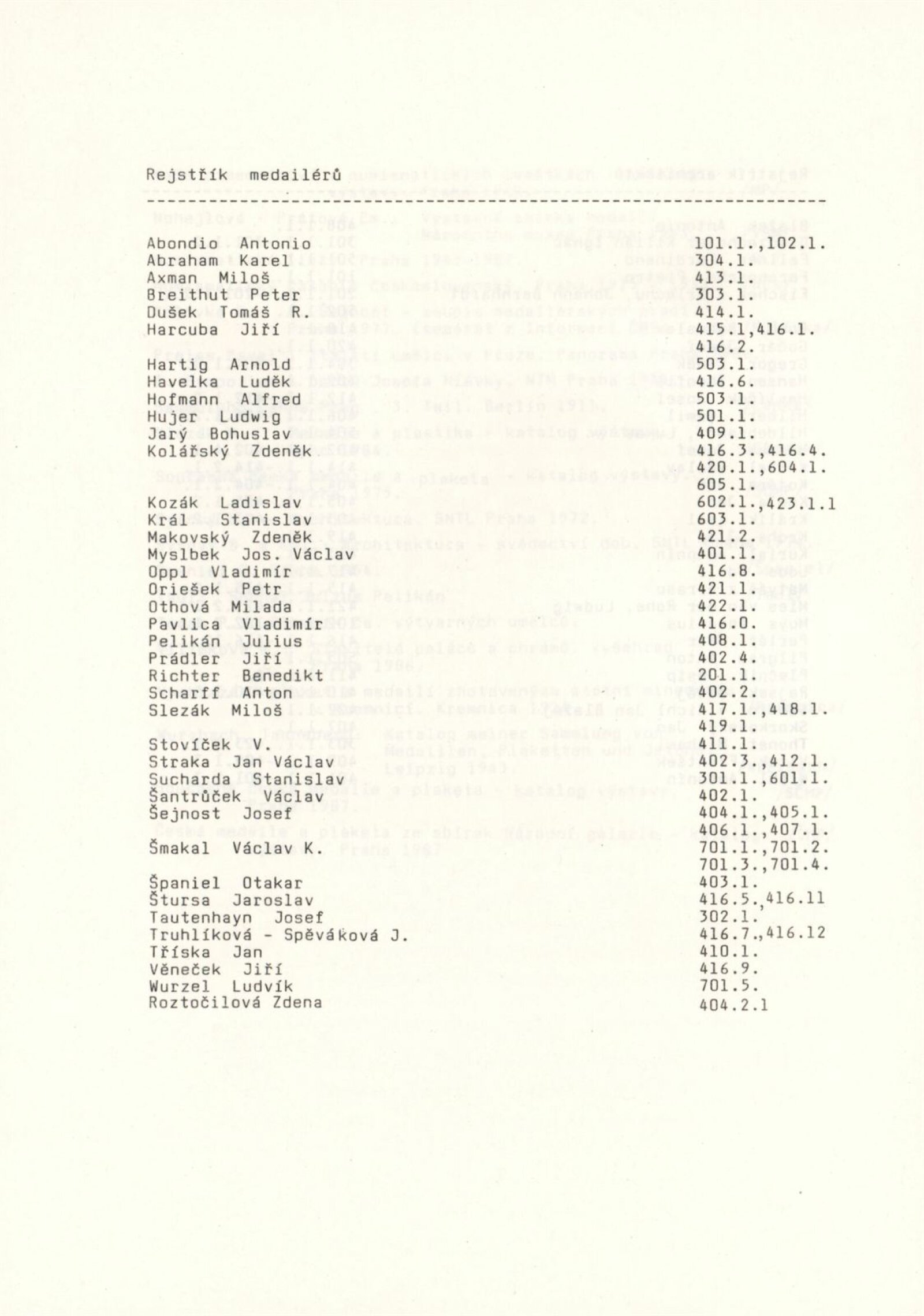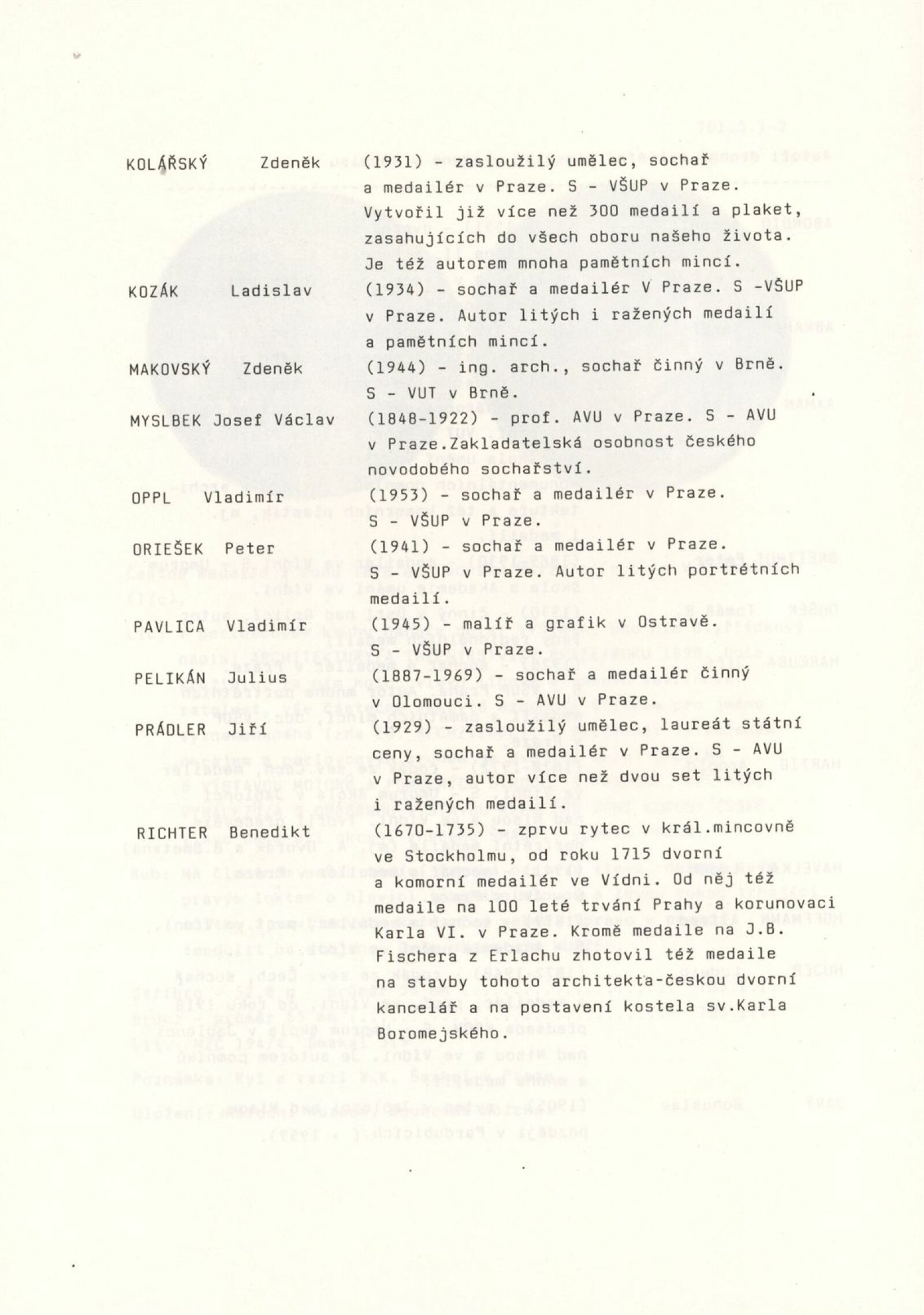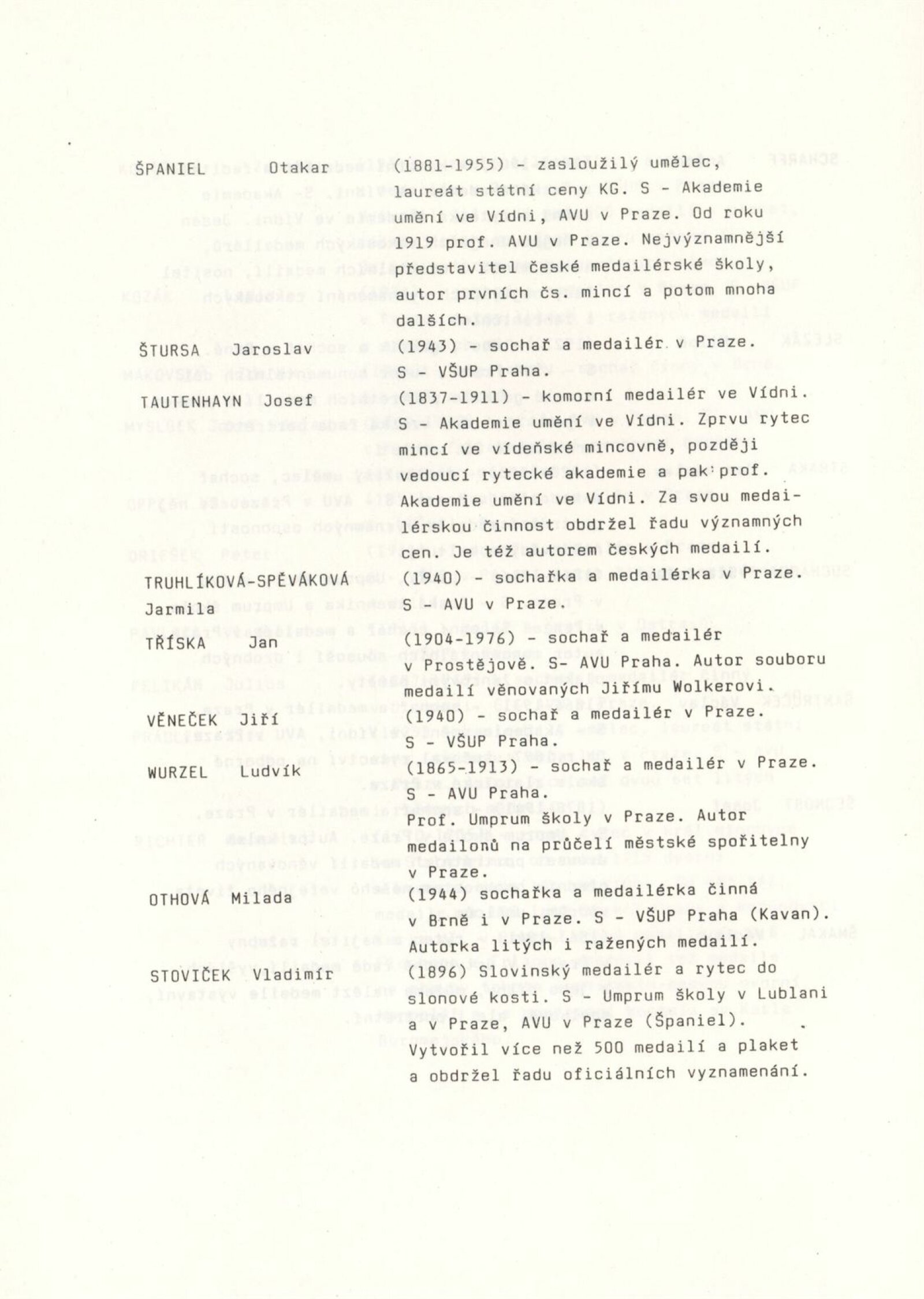 Antonio Abondio, Karl Abraham, Miloš Axman, Petr Breithut, Tomáš R. Dušek, Jiří Harcuba, Arnold Hartig, Luděk Havelka, Alfred Hofmann, Ludwig Hujer, Bohuslav Jarý, Zdeněk Kolářský, Ladislav Kozák, Stanislav Král, Zdeněk Makovský, Josef Václav Myslbek, Vladimír Oppl, Petr Oriešek, Milada Othová, Vladimír Pavlica, Julius Pelikán, Jiří Prádler, Benedikt Richter, Zdena Roztočilová, Anton Scharff, Miloš Slezák, Vladimír Stoviček, Jan Václav Straka, Stanislav Sucharda, Václav Šantrůček, Josef Šejnost, Václav Karel Šmakal, Otakar Španiel, Jaroslav Štursa, Josef Tautenhayn, Jarmila Truhlíková-Spěváková, Jan Tříska, Jiří Věneček, Ludvík Wurzel, Dobromil Zahradník