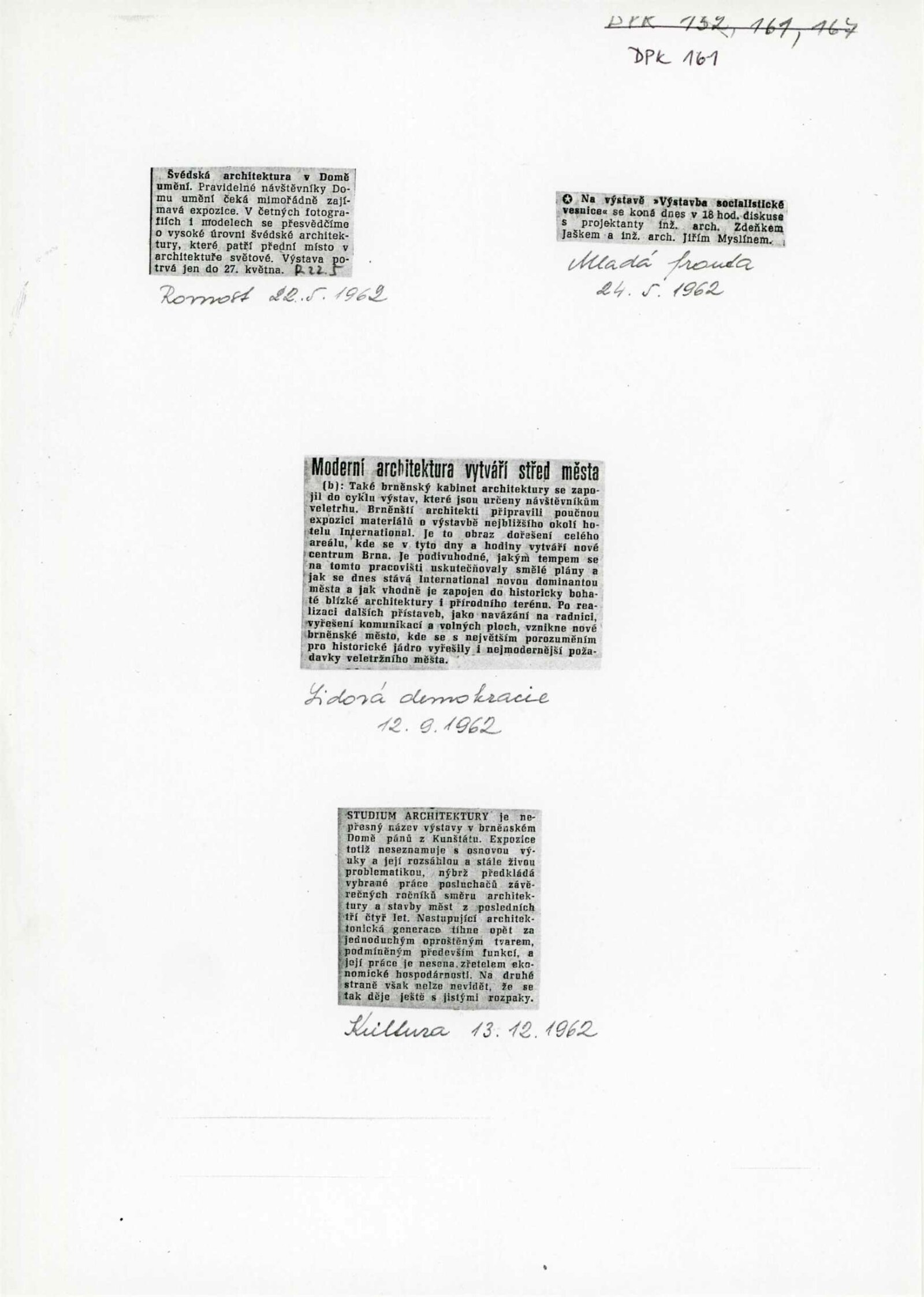 Areál hotelu International v Brně: Dům umění města Brna / Dům pánů z Kunštátu, Kabinet architektury Svaz architektů ČSSR, 7. 9. – 4. 11. 1962 / Brno: Svaz architektů ČSSR, 1962. – 4 s., obr., DPK 161