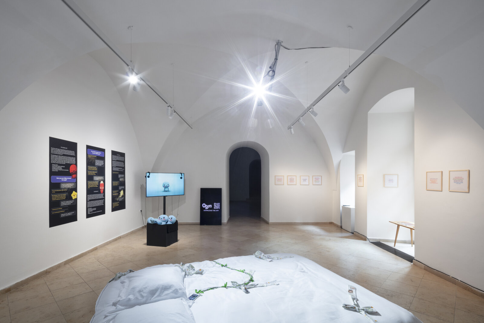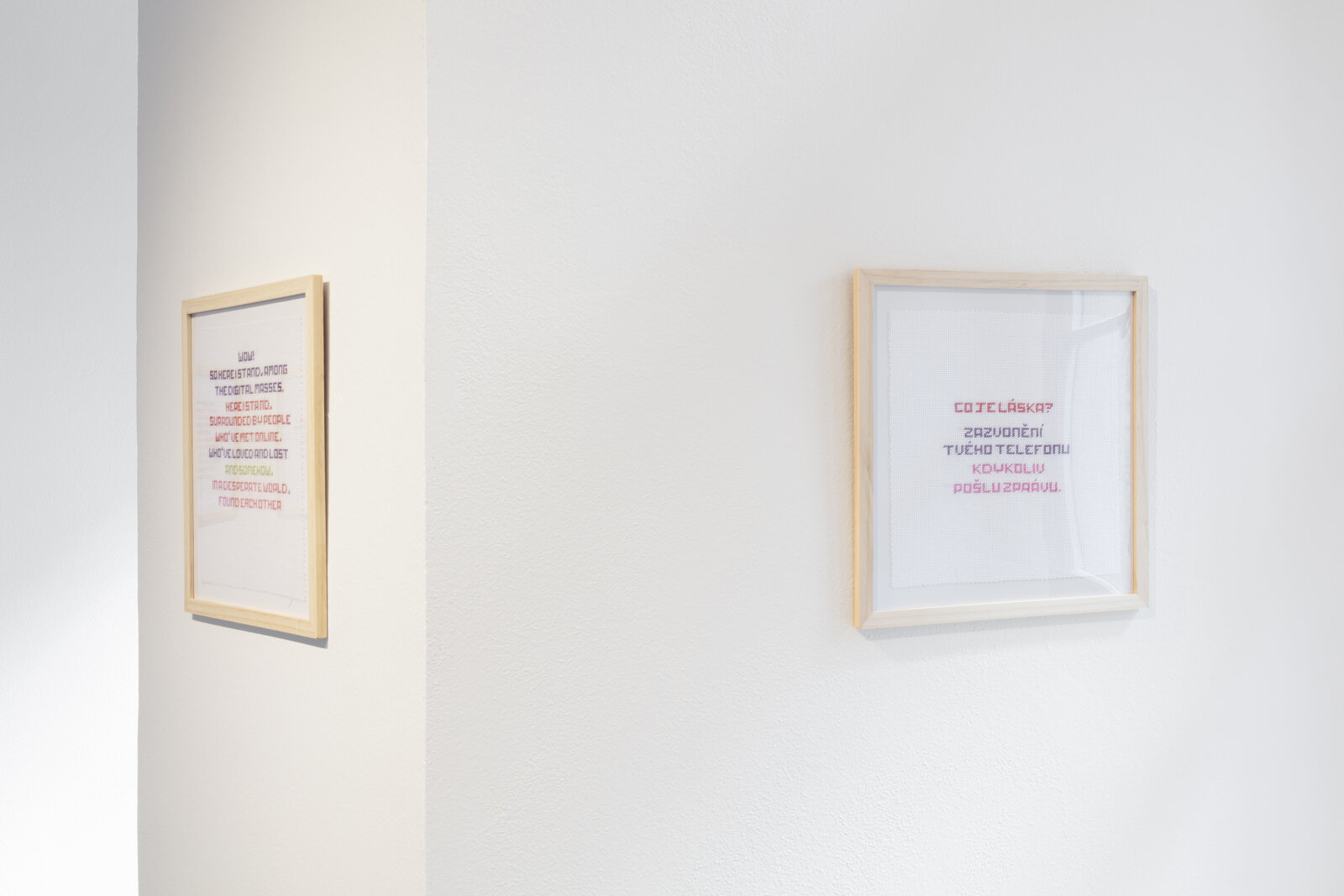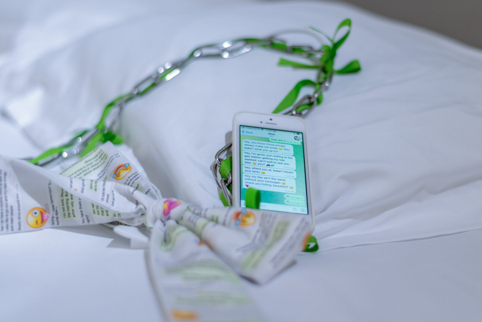 The exhibition Artificial Intimacies explores the rise of recreational romance by drawing parallels between the emotional manipulation of romance scammers and the emergence of companion chatbots like Replika. It examines the gamification of dating apps and reflects on the evolving emotional dynamics between humans and non-humans in the age of AI.