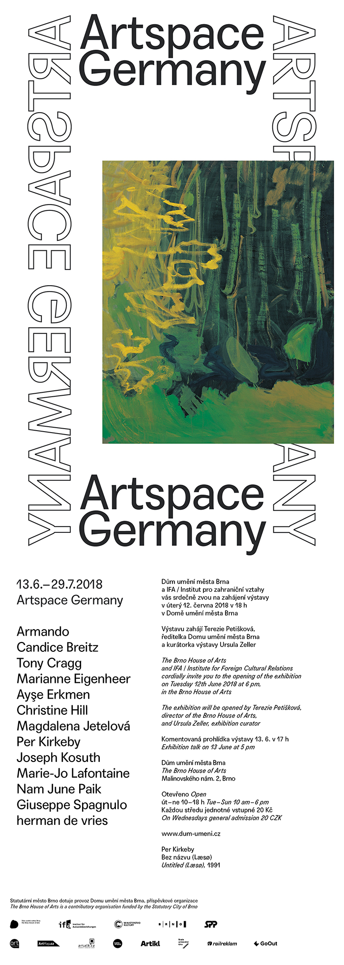 European integration and the global interlinking of the world bring new challenges in the mediation of national cultures. Visual art clearly demonstrates the effects of cultures becoming close. The “global village” is a reality. In today’s world, the importance of the role of artist as a global player, as a pilgrim among cultures, has grown. In the 1950s many German artists were attracted by art centres such as Paris, and in the 1960s, in turn, by New York, while artists from other countries chose Germany as a place for living and working. Their integration was also manifested through new artistic stimuli, seen today as a natural part of the local art scene. These artists who settled in Germany and have spent there most of their creative lives do not just produce art; they also teach at art academies and have helped turn Germany into an attractive place for young people, from both Germany and abroad. The IFA exhibition shows another view on “Art Space Germany“ It presents it as a diversified space held together by trans-cultural unity. Kunstraum Deutschland is represented at the exhibition by works created in the last thirty years by artists Armando, Candice Breitz, Tony Cragg, Marianne Eigenheer, Ayse Erkmen, Christine Hill, Magdalena Jetelová, Per Kirkeby, Joseph Kosuth, Marie-Jo Lafontaine, Nam June Paika, Giuseppe Spagnulo and Herman de Vries.