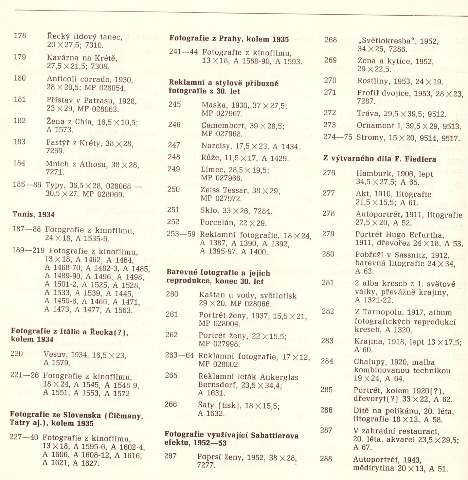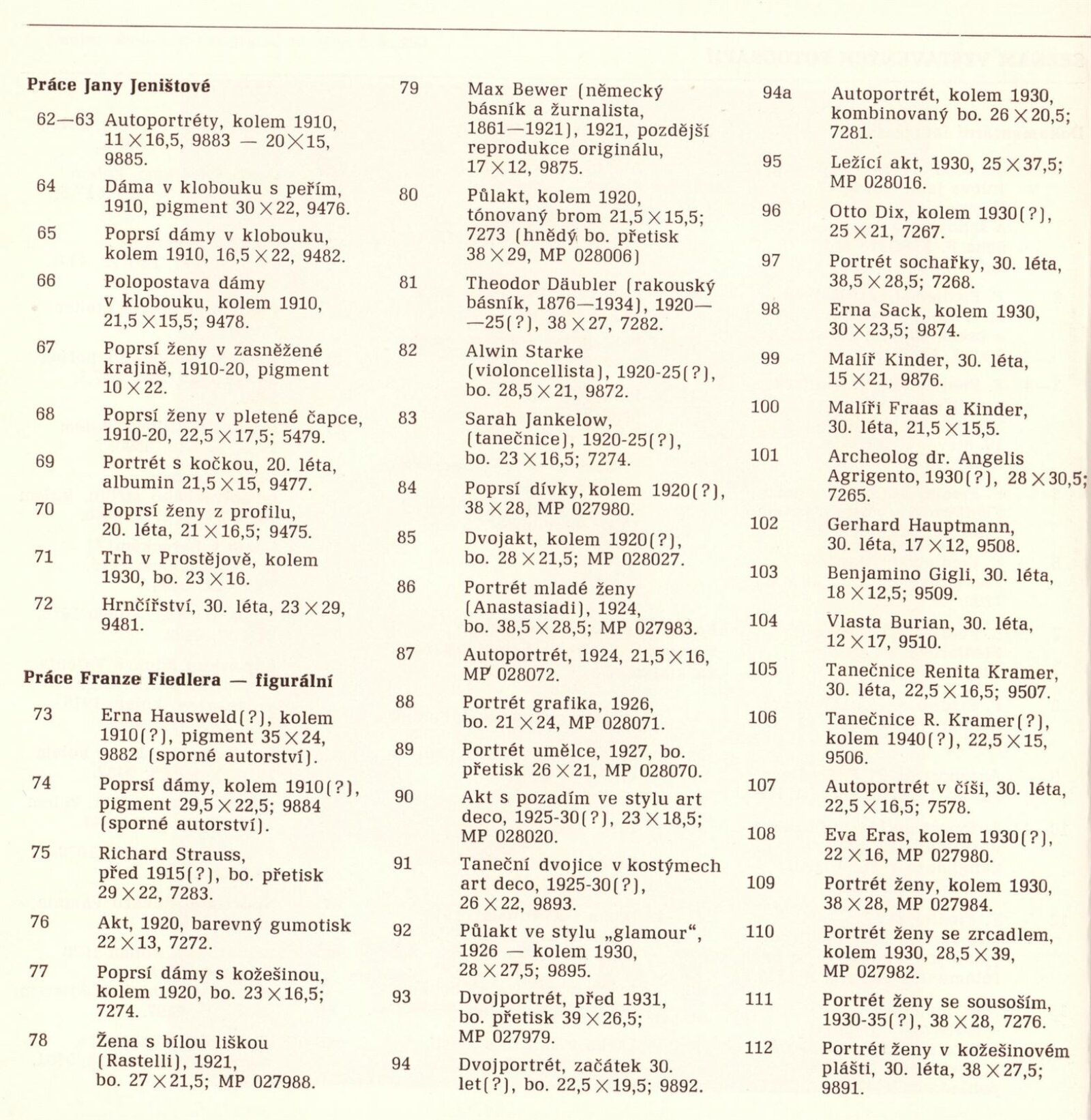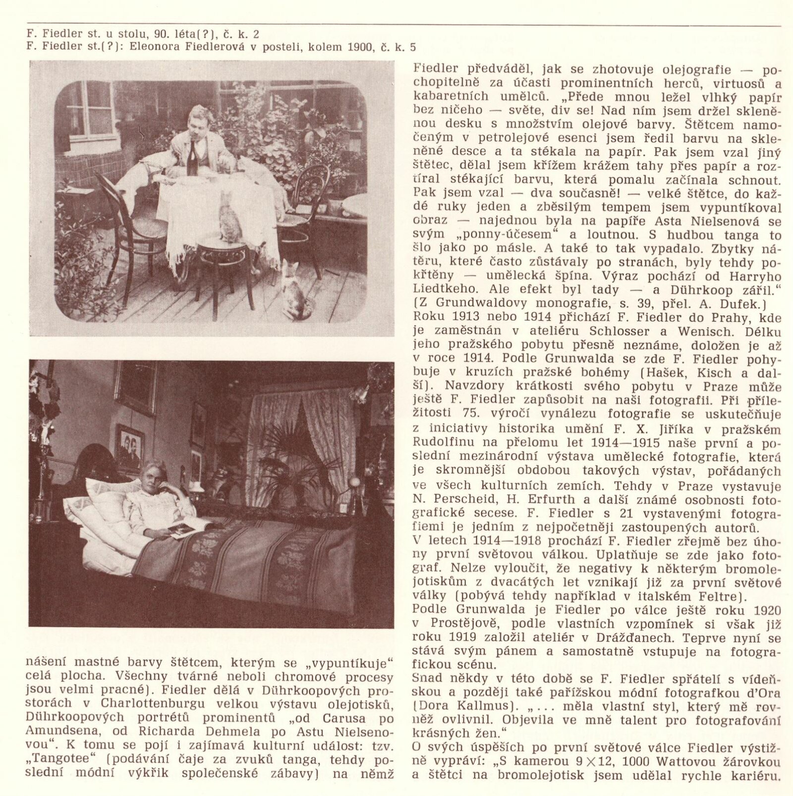 Ateliér Fiedler. Fotografie: Dům umění / Dům pánů z Kunštátu, Kabinet fotografie Jaromíra Funka, 20. 11. 1981 – 3. 1. 1982 / Text: Antonín Dufek, Franz Fiedler. – Brno DUmB, 1981. – 48 s., obr., portréty, bibliografie, DPK 768. – MG