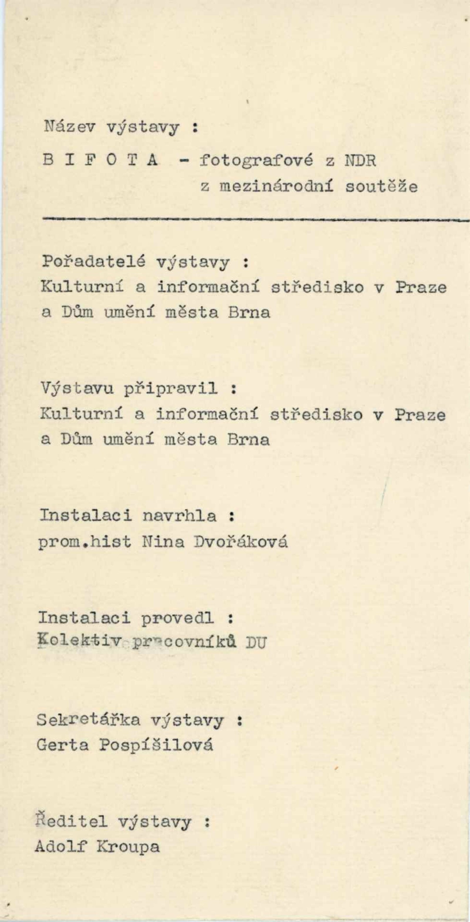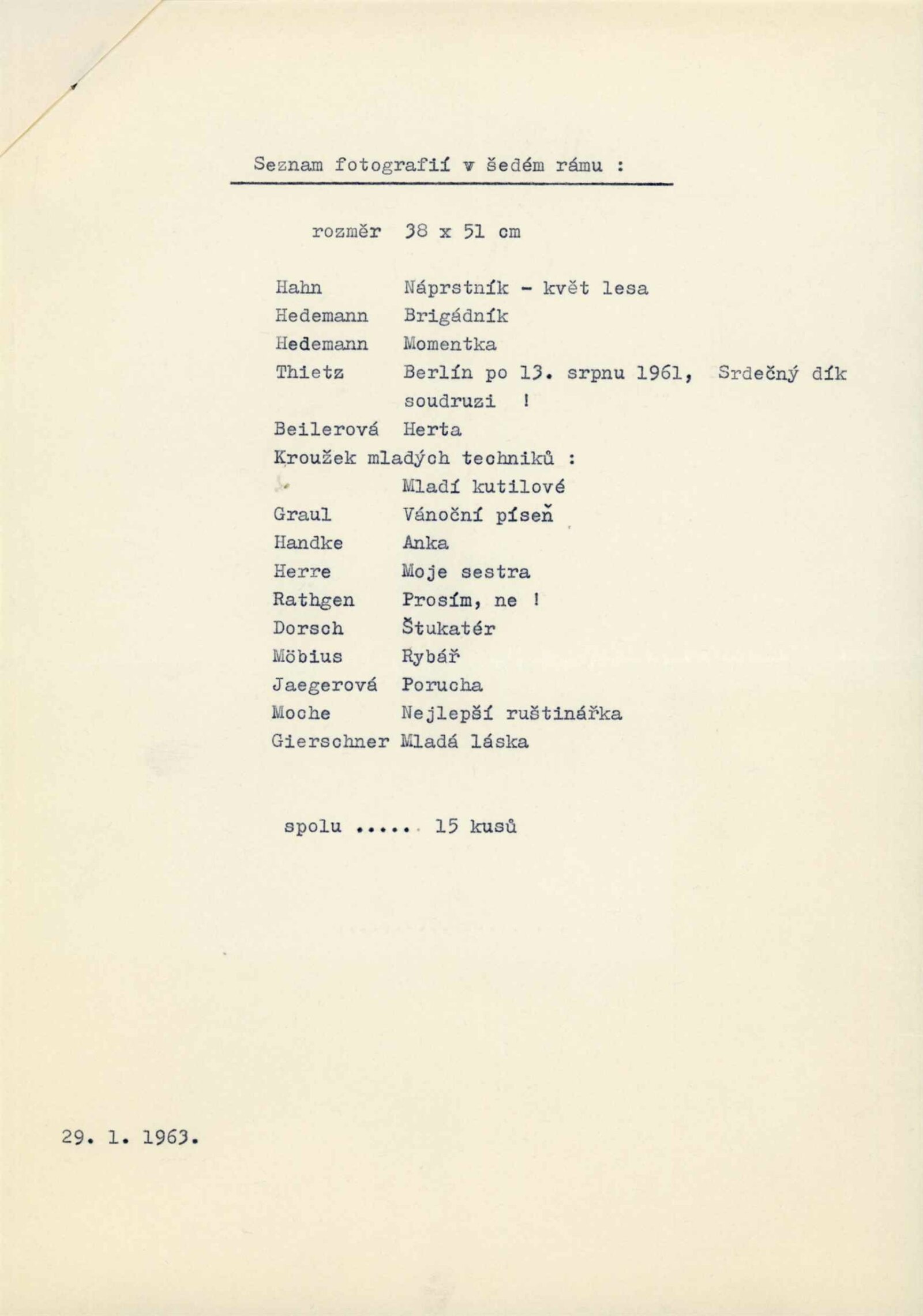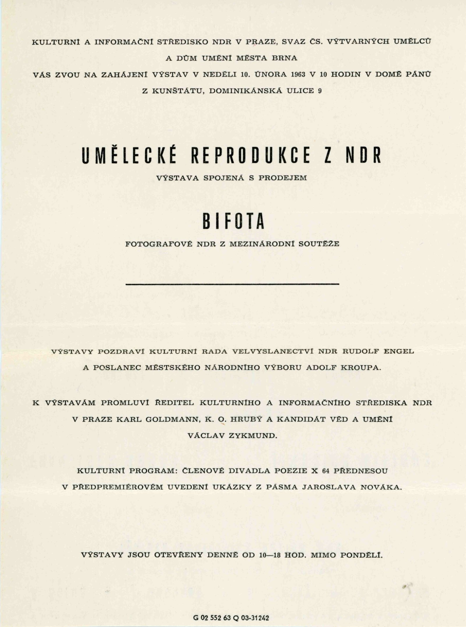 pozvánka, seznam děl, fotografie ze zahájení výstavy, provozní korespondence