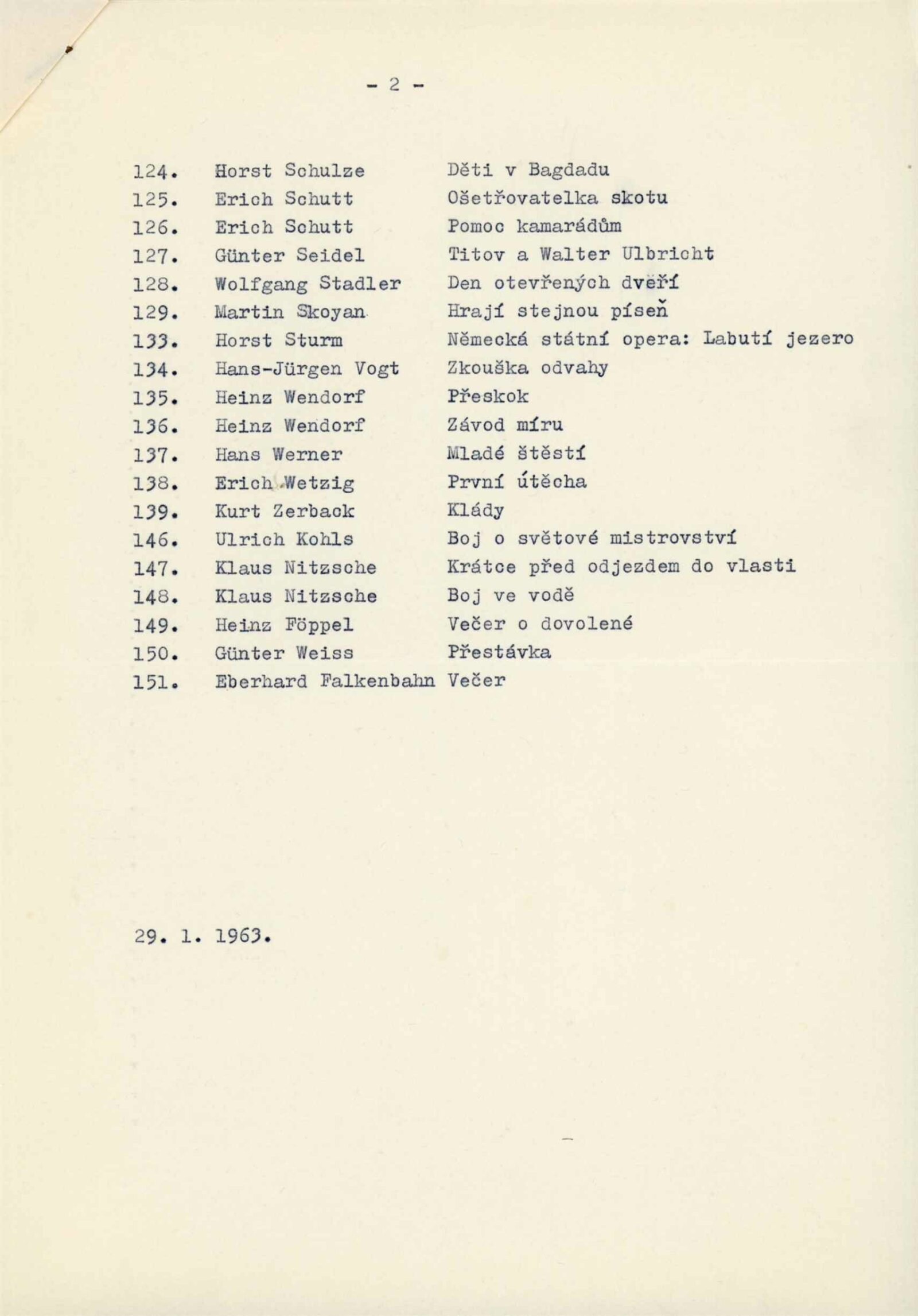 Beilerová, Berger, Klaus Beyer, Demnitz, Dorsch, Dubian, Irena Ecklebenová, Eberhard Falkenbahn, Finke, Klaus Fischer, Heinz Föppel, Fritz Franke, Paul Friedmann, Eva Gathenová, D. Gerhard, Gierschner, Görzig, Graul, Hahn, Handke, Hedemann, Held, Herre, Rudolf Hof, Jaegerová, Ulrich Kohls, Karl-Heinz Kraemer, Günter Krause, Carla Kriegová, Heinz Krüger, Klaus Liebig, Heinz Ludwig, Meissner, Möbius, Moche, Klaus Morgenstern, Gerhard Murza, Theodor Müller, Werner Müller, Klaus Nietzche, Günter Otto, Helmut Pietzke, Rathgen, Helmut Reuel, Werner Richter, Edith Rimkusová, Rohde, Helmut Schaar, Scharr, Brigitte Schenková, Horst Schulze, Erich Schutt, Günter Seidel, Siegert, Wolfgang Stadler, Steglich, Martin Skoyan, Horst Sturm, Thietz, Hans-Jürgen Vogt, Günter Weiss, Heinz Wendorf, Hans Werner, Erich Wetzig, Zakowski, Kurt Zerback
