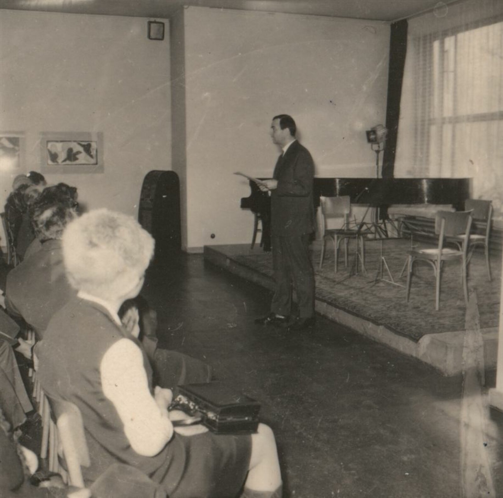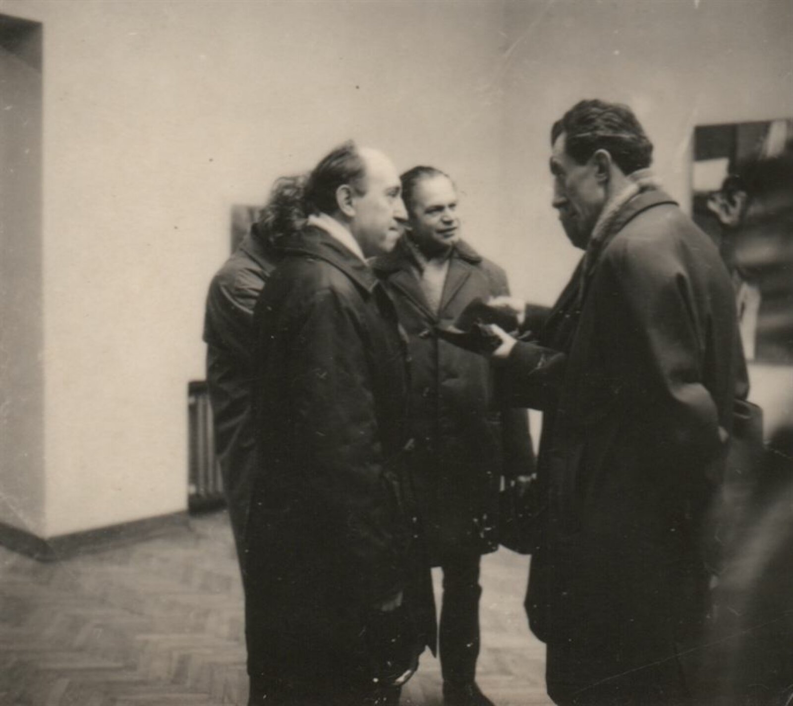 pozvánka na výstavu a na matiné „Mezi obrazy“, katalog, fotografie vernisáže od Karla Kulatého (archiv Igora Zhoře), žádost o pořádání výstavy (od Igora Zhoře), prezenční listina tiskové konference (31. 1. 1969), provozní korespondence, recenze v tisku