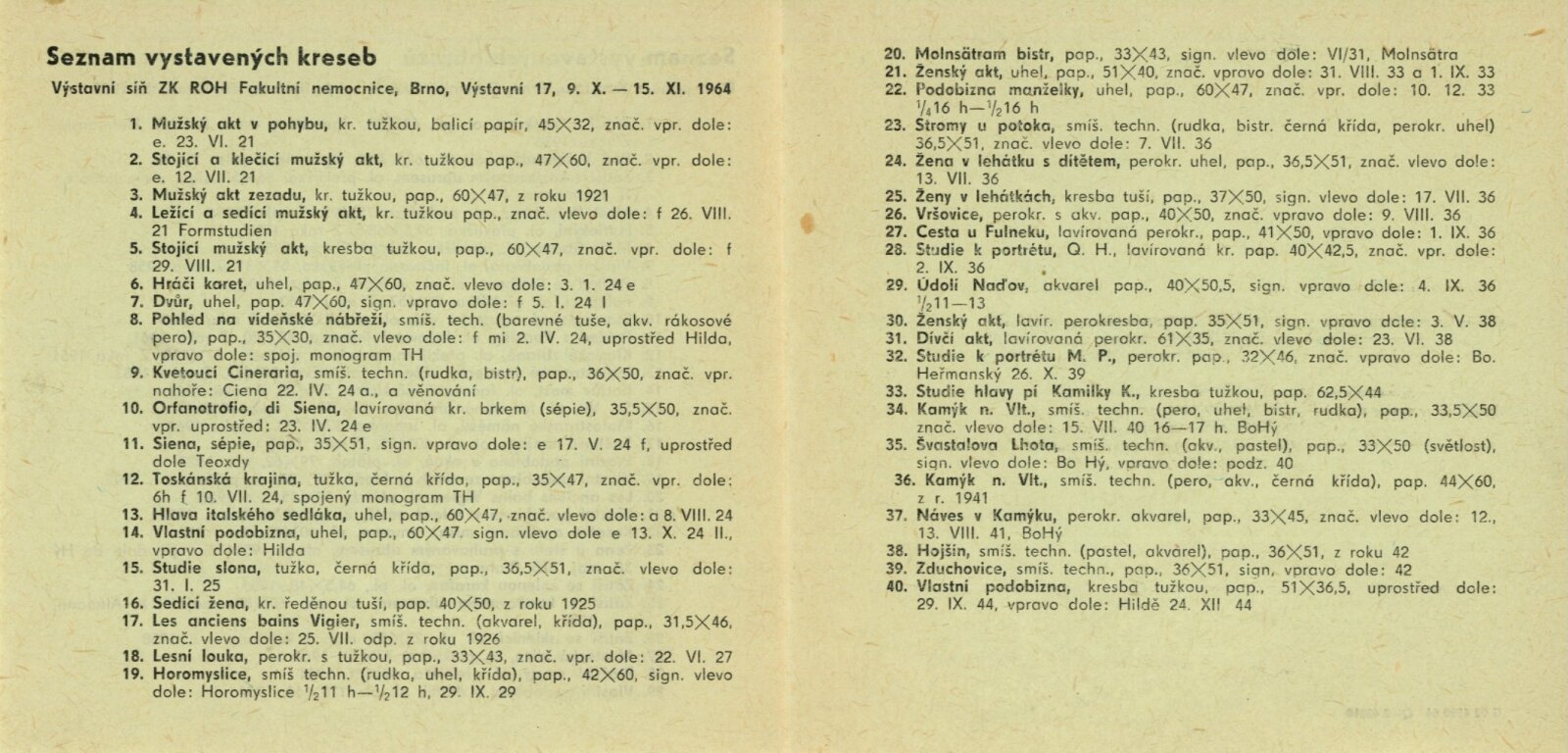 Bohdan Heřmanský: Dům umění města Brna / Dům pánů z Kunštátu, 9. 10. – 15. 11. 1964 / Převzatý katalog. Bohdan Heřmanský. Obrazy a kresby: Výstavní síň Sbírky moderního umění Národní galerie, Praha, březen–duben 1964 / Text: Jiří Šetlík. – Praha: Národní galerie, 1964. – 20 s., obr., portrét, životopis, DPK 241. – MZK; MG