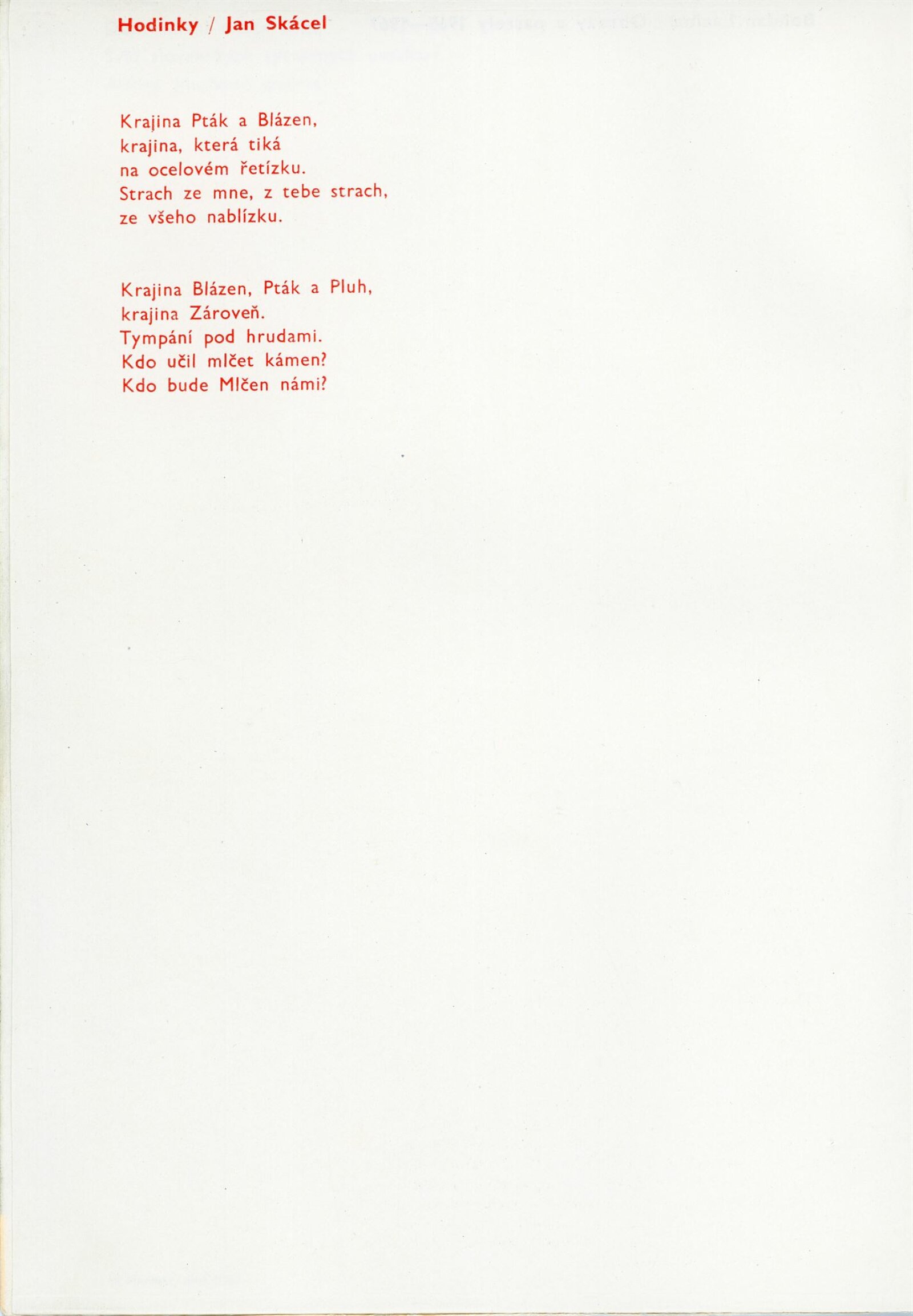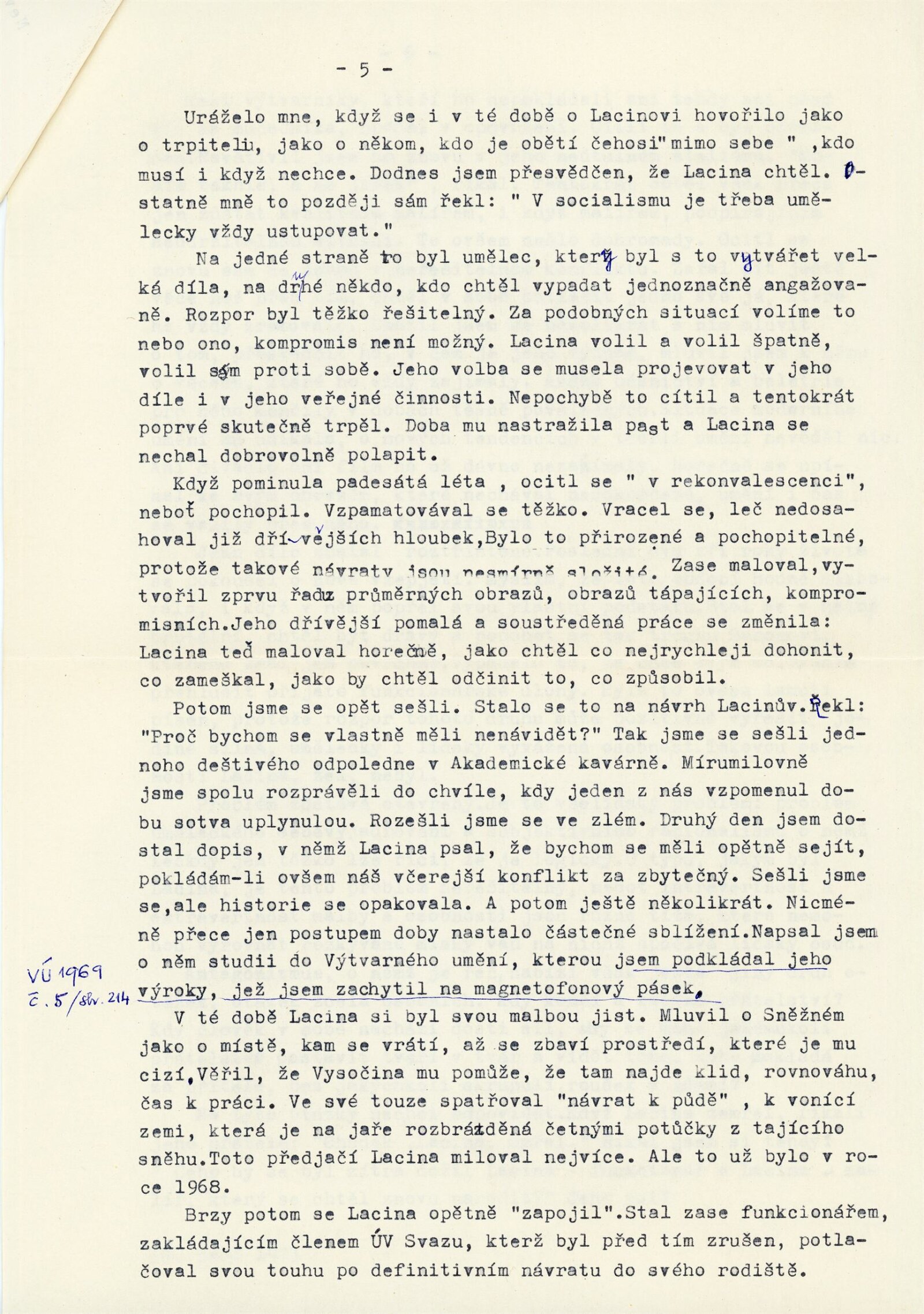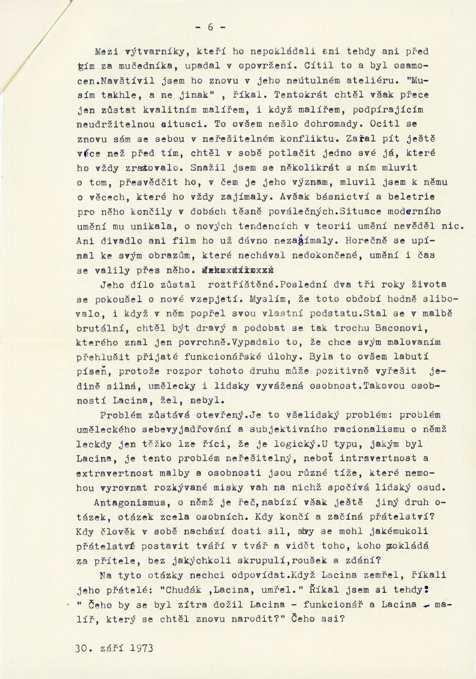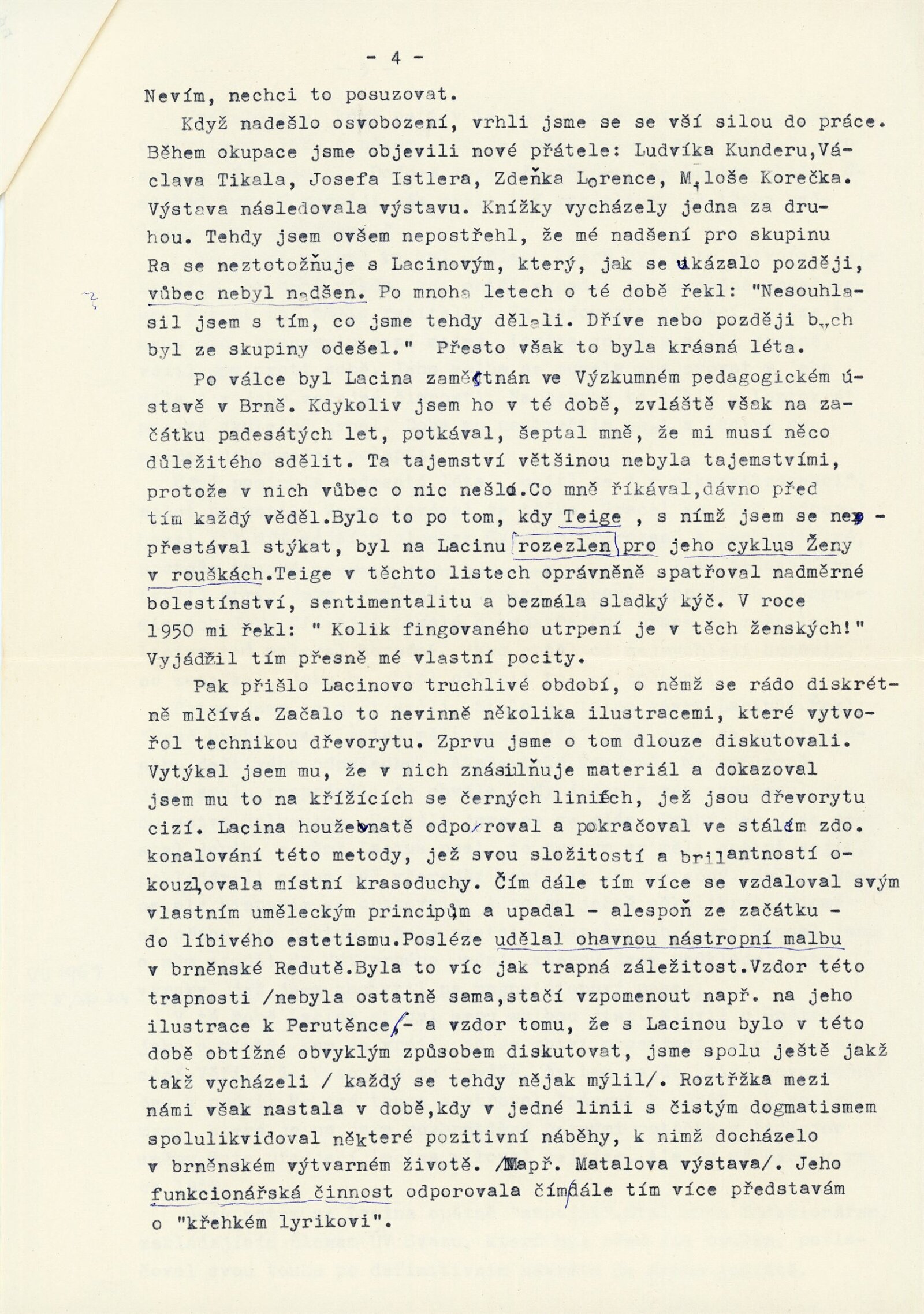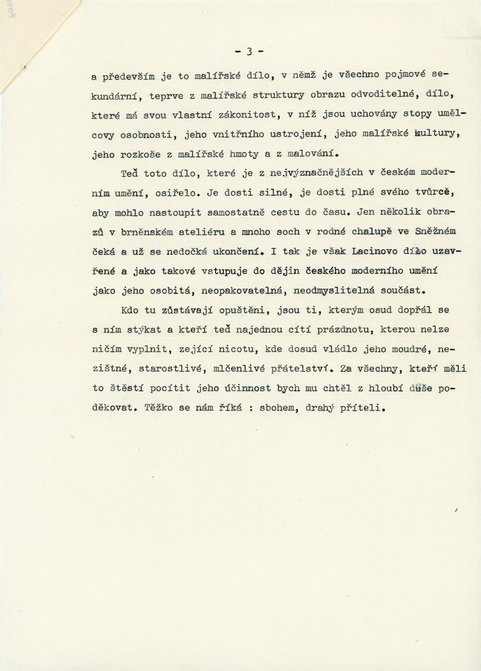 Bohdan Lacina. Obrazy a pastely 1965–1967: Dům umění města Brna, 1. patro, 4. 2. – 3. 3. 1968/ Text: Ludvik Kundera. – Brno: DUmB, 1968. – 32 s., obr, seznam obrazů 4 s., báseň Jan Skácel, DU 496. – MZK; MG; MMB