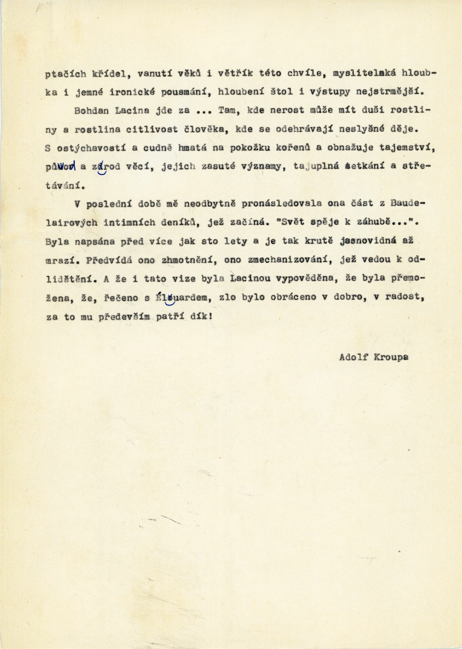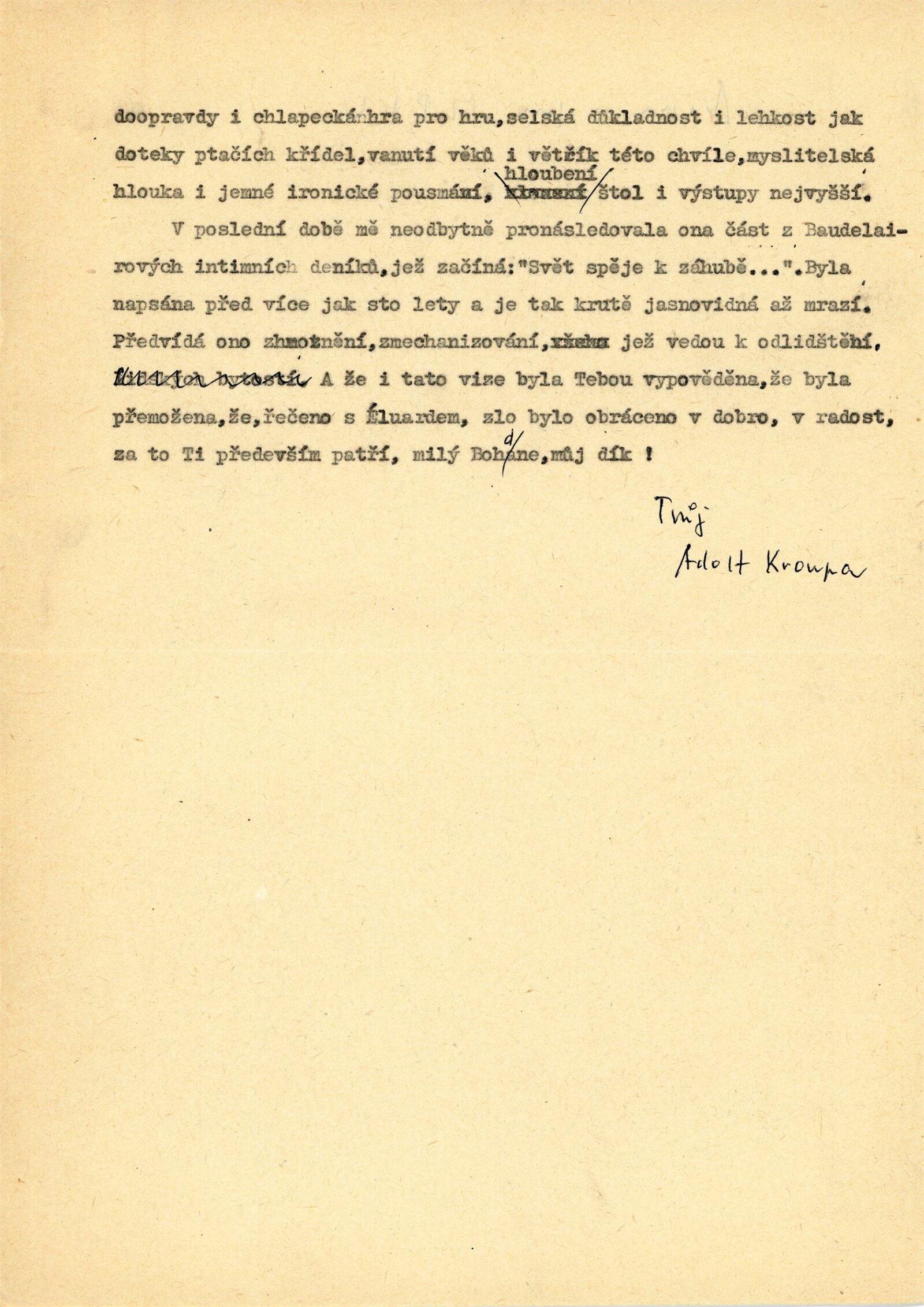 Ludvík Kundera, Adolf Kroupa