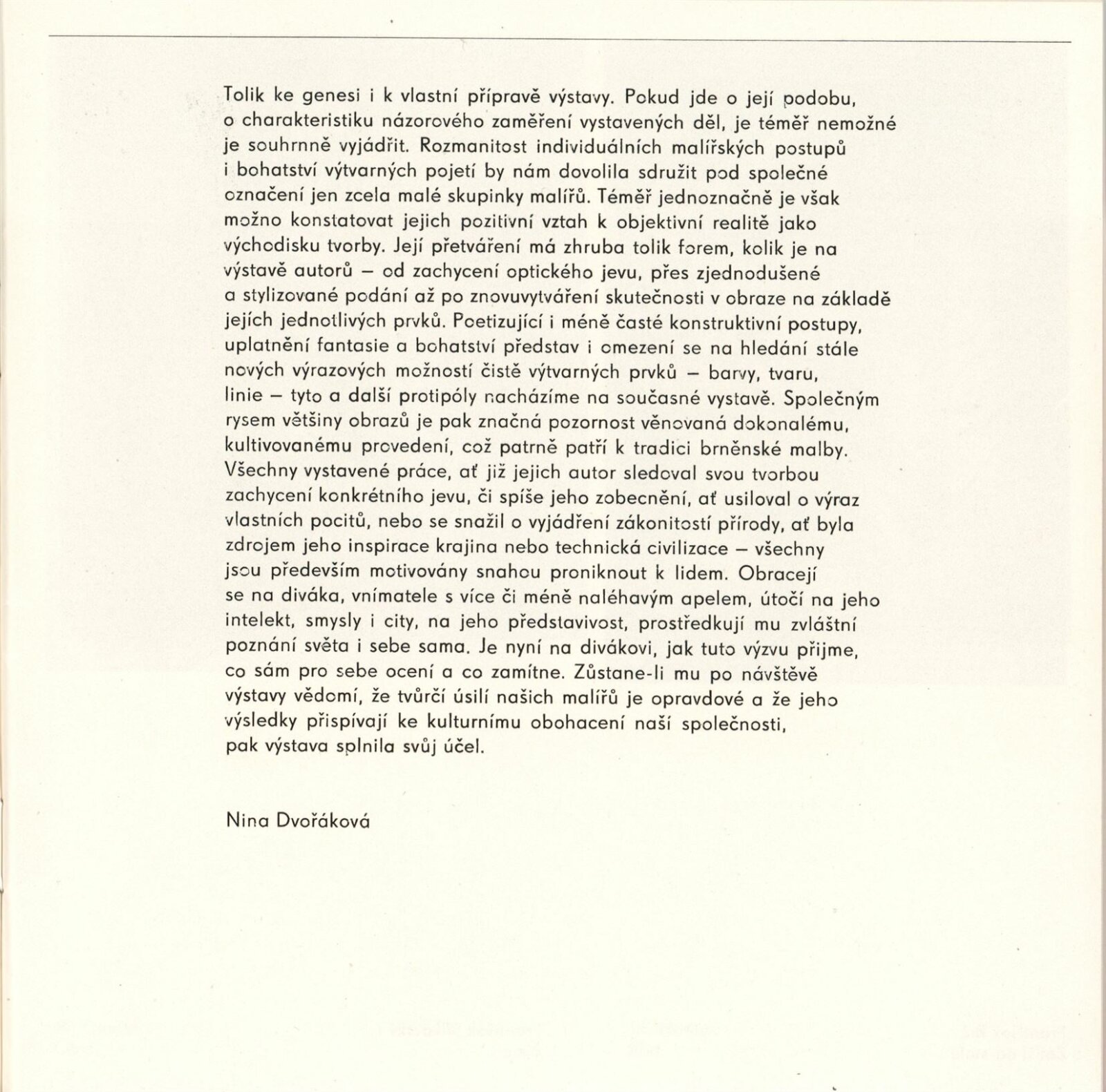 Brněnská malba 1981: Dům umění města Brna, 1. patro, 27. 11. 1981 – 17. 1. 1982 / Text: Nina Dvořáková. – Brno: DUmB, 1981. – 44 s., obr., DU 737. – MZK; MG