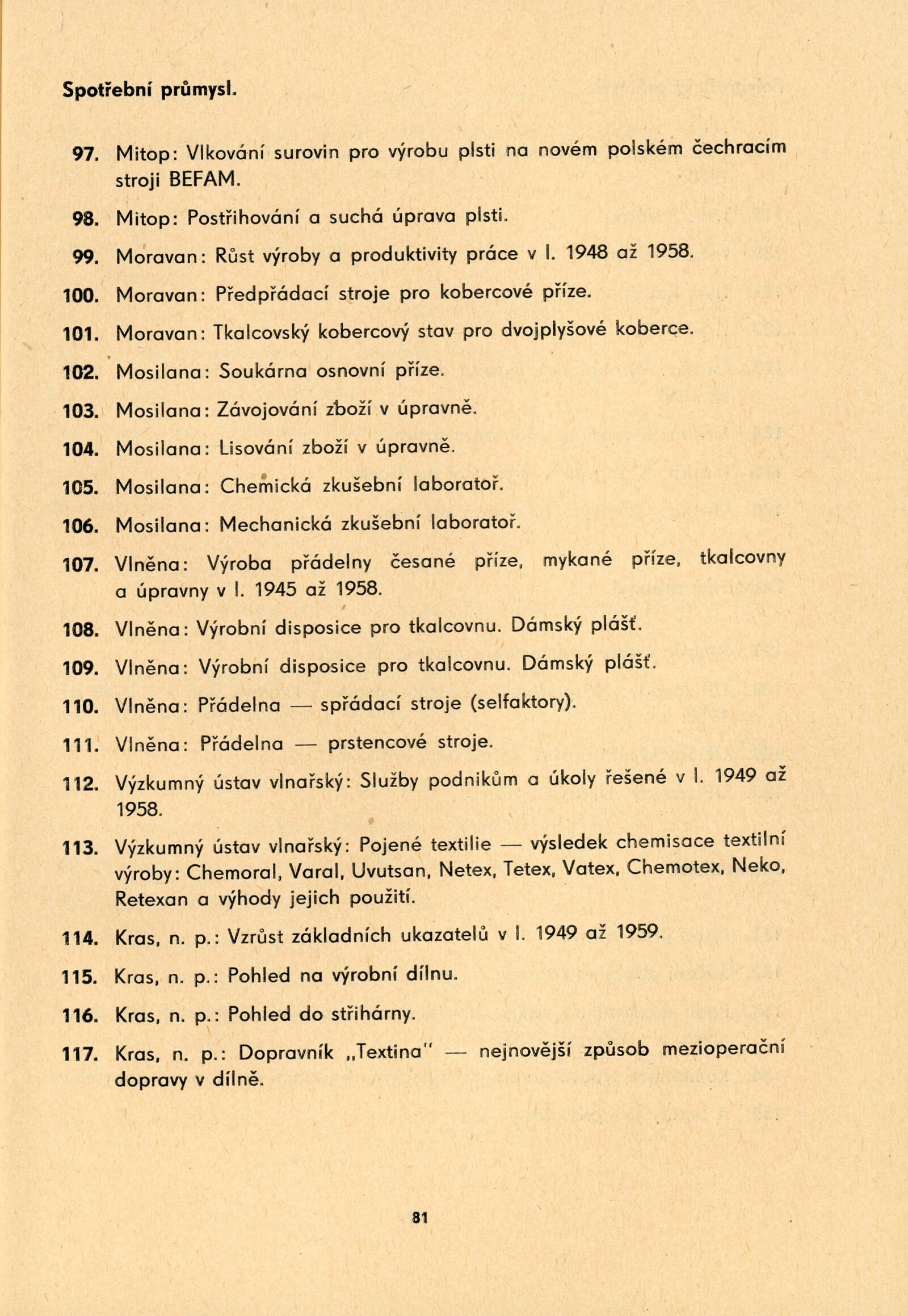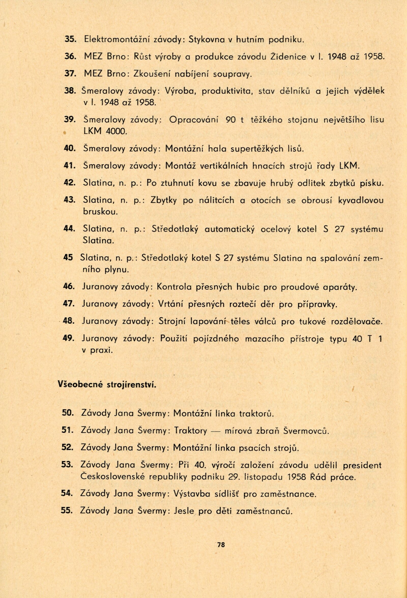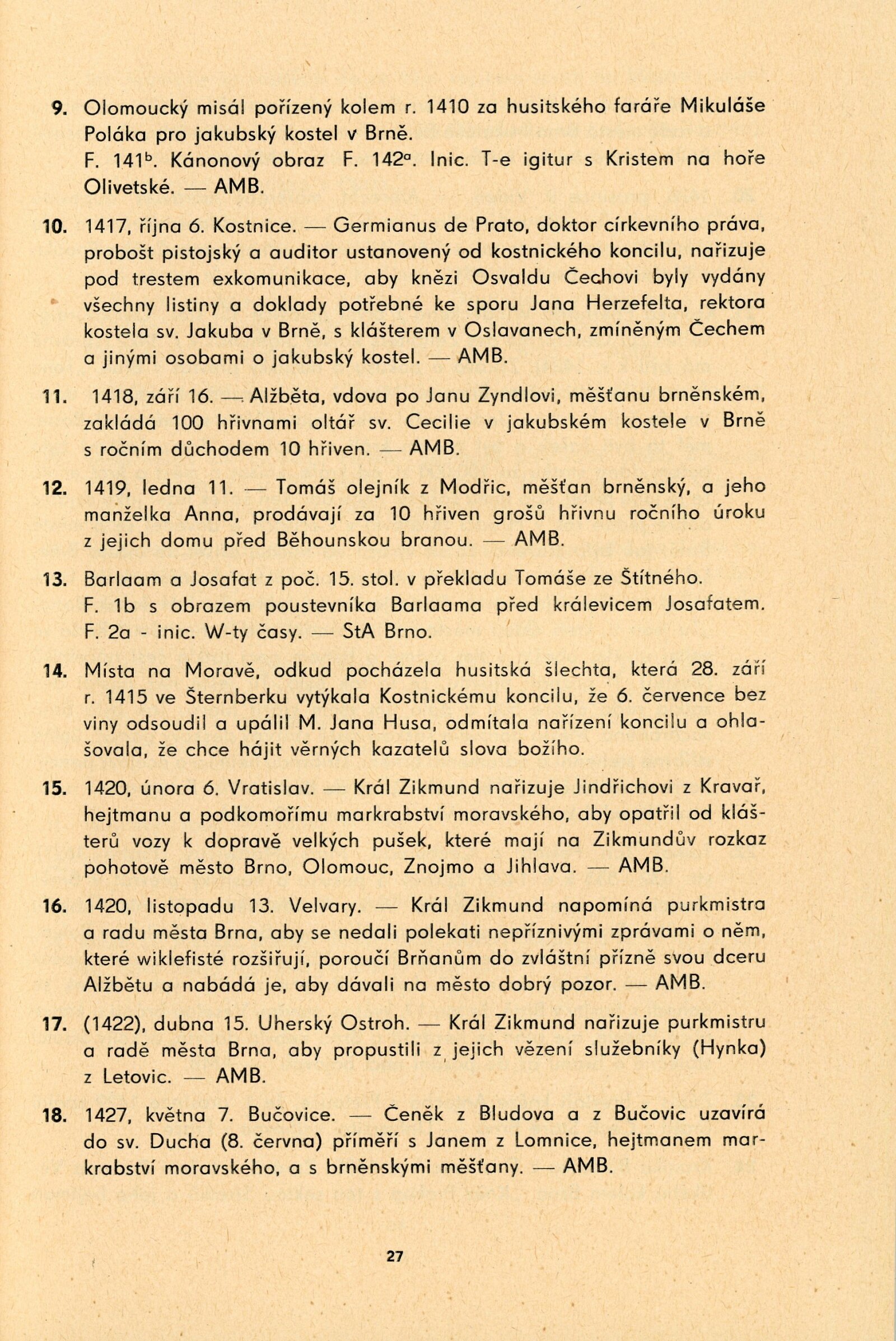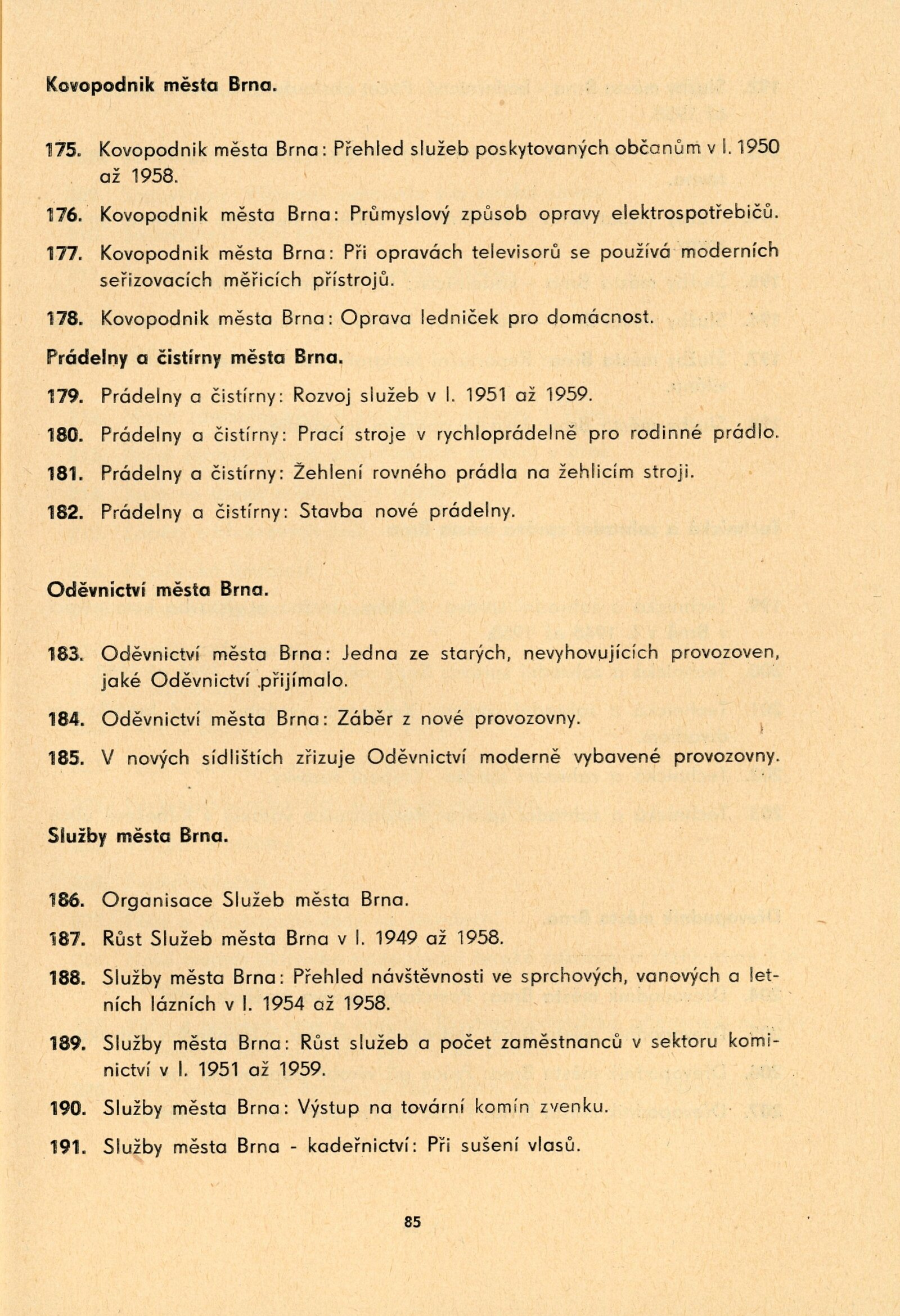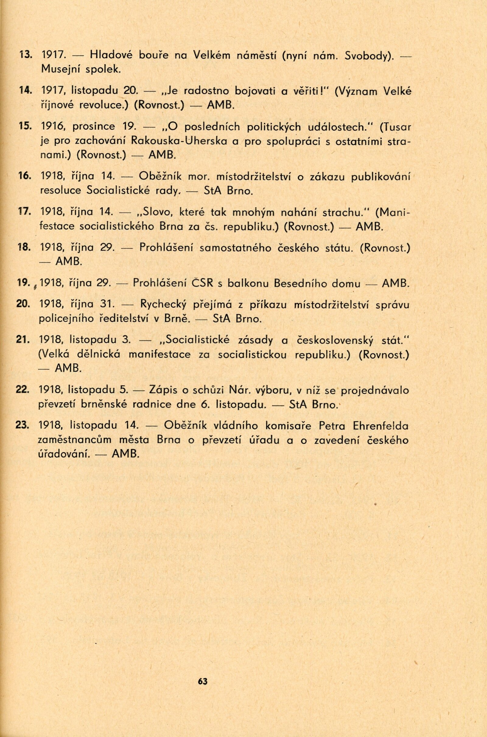 Brno od pravěku k dnešku: Dům umění města Brna / Dům pánů z Kunštátu, 6. 9. – 26. 11. 1959 / 1. Historický výklad ke katalogu výstavy pořádané v Domě pánů z Poděbrad v září až v říjnu 1959. – Brno: Krajské nakladatelství pro Archiv města Brna, 1959. – 133 s., 8 s. obr. příl. / Brno od pravěku k dnešku. 2. Seznam exponátů výstavy pořádané v Domě pánů z Poděbrad v září a v říjnu 1959. – Brno: Krajské nakladatelství pro Archiv města Brna, 1959. – 102 s., DPK 45. – MZK