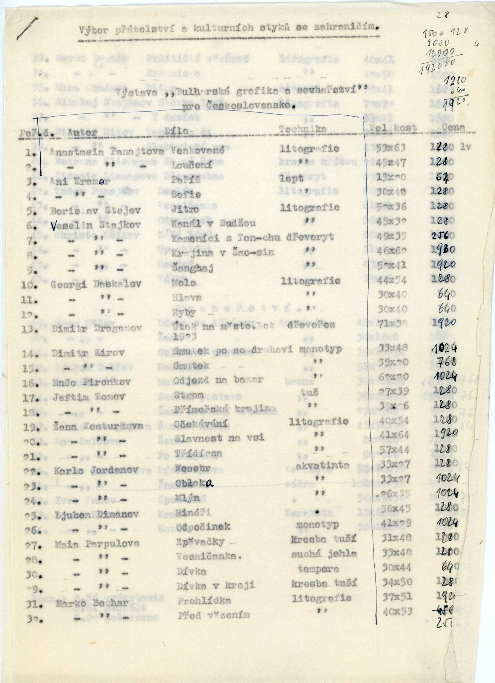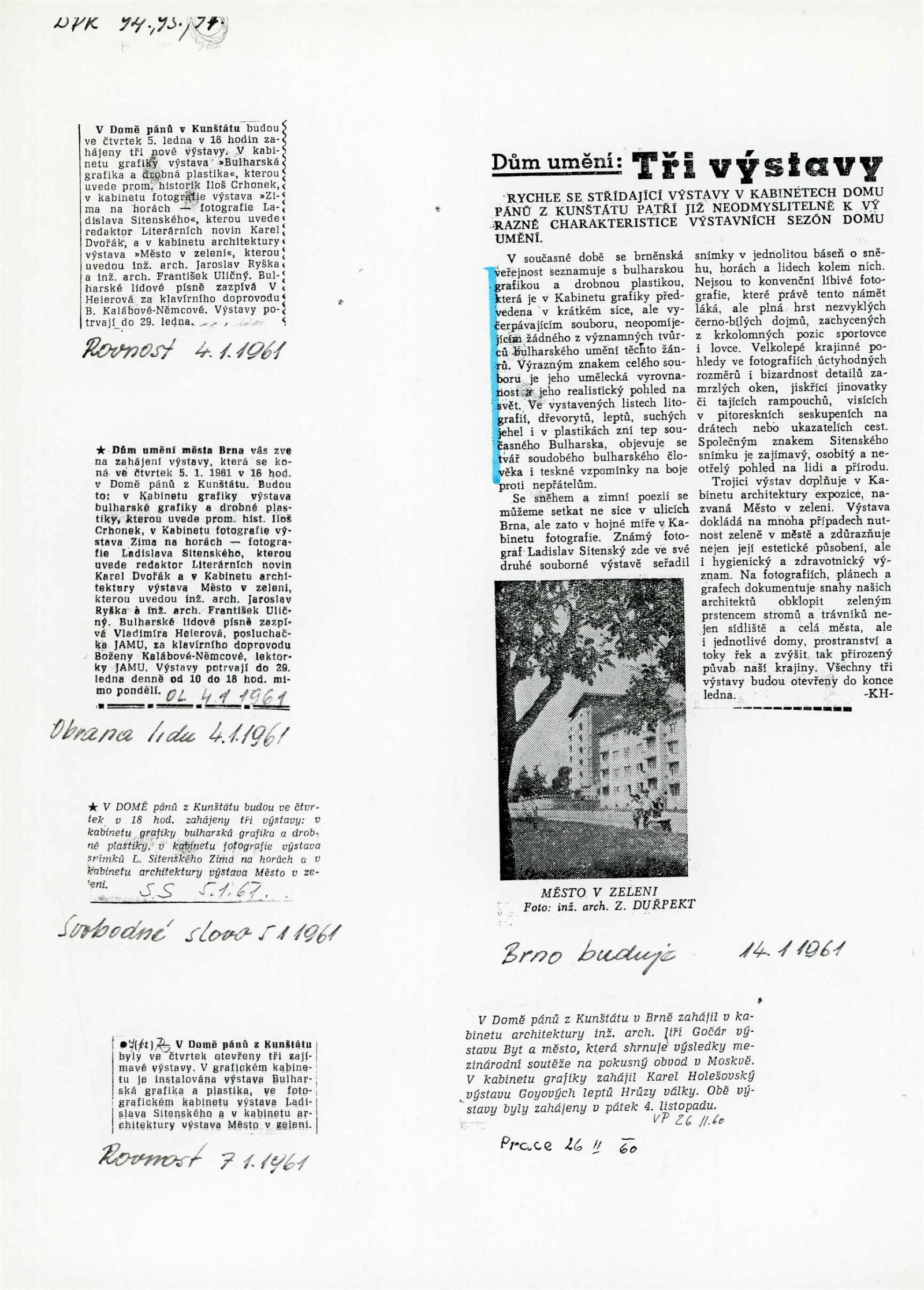 společná pozvánka DPK 94–96, seznam vystavených děl, provozní korespondence, recenze v tisku