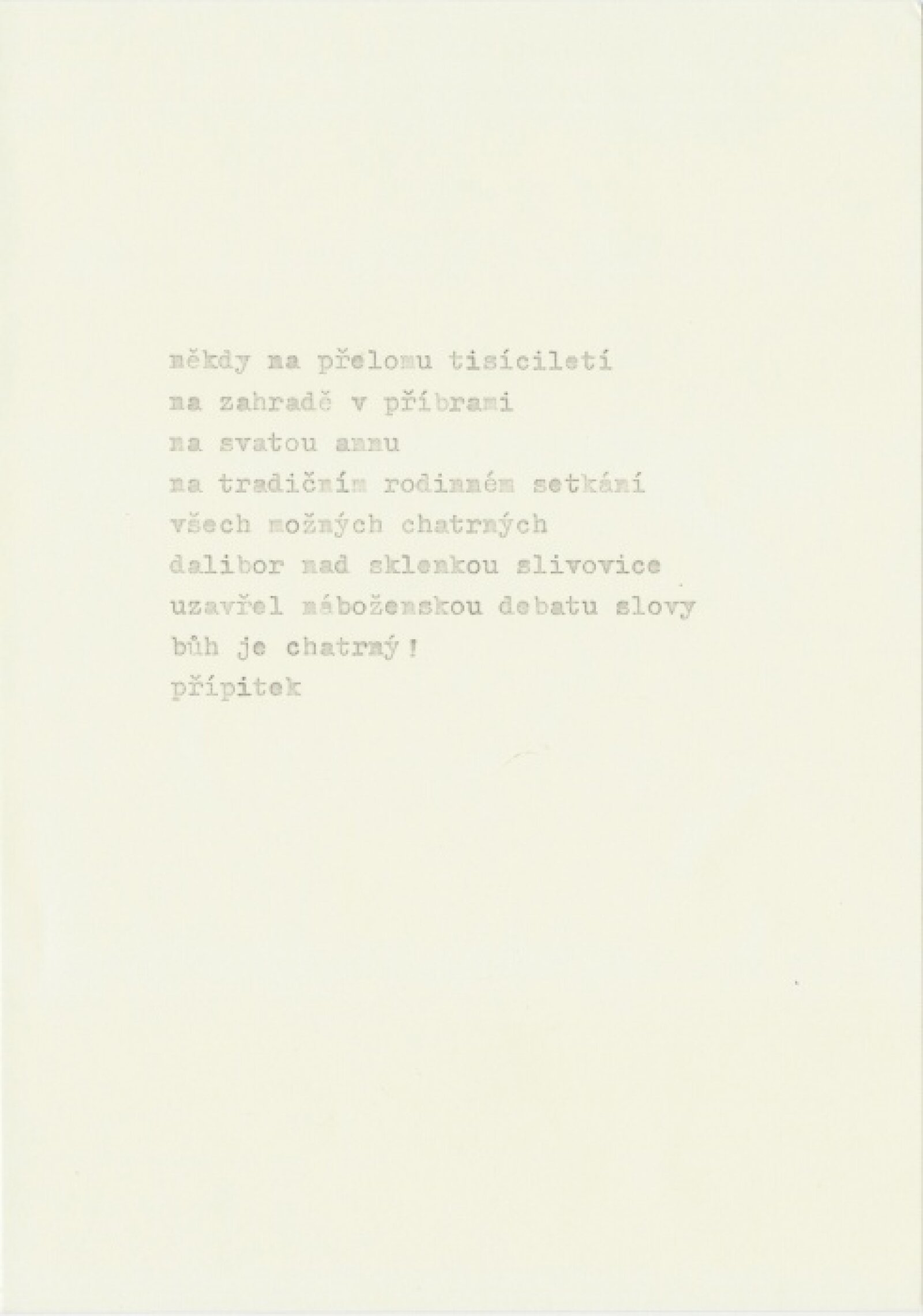 By virtue of exhibition maps the activities and influence of the renowned Brno artist Dalibor Chatrný, through works and personalities encountered by the artist in his lifetime. We believe that the artist’s importance lies not only in the originality and authenticity of his artworks and projects but also in his influence on several generations of artists and other leading figures in the Czech art milieu, notably in Brno. The curators view his art in broader connections, as the creation of situations and open interactions in the context of art, art education and everyday life.