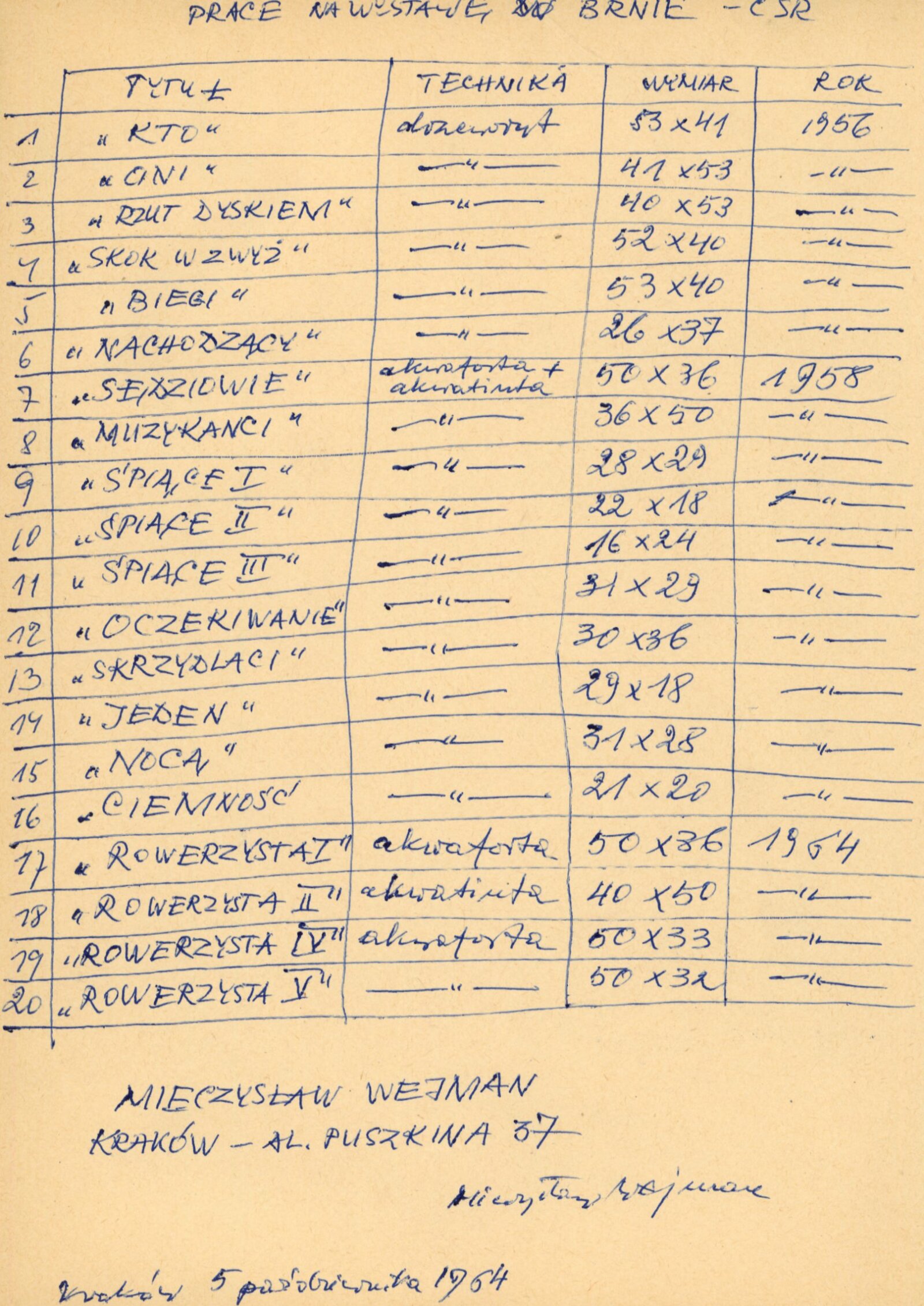 Carlotta Bologna, Czeslaw Rzepinski. Mieczyslaw Wejman /PL/: Dům umění města Brna / Dům pánů z Kunštátu, 18. 10. – 15. 11. 1964 / Text: Jan Rajlich. – Brno: DUmB, 1964. – 12 s., obr., životopisy, DPK 242. – MZK; MG
